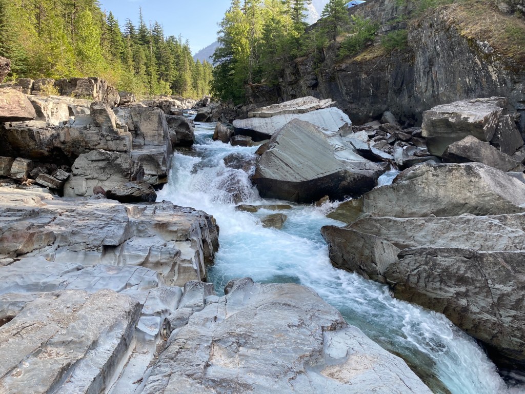 The trail traveled alongside the creek with roaring water as peaceful choir. It was chilly and beautiful. Relatively flat, we meandered through the forest, admiring the ancient trees stretching straight up above us towards the sun. This forest is the easternmost most range of the western hemlocks. Some of the hemlocks and cedars are 500 years old and reach 100 feet into the air. It was quite amazing to think about how time passes and how our life is so short in comparison to certain things in nature.