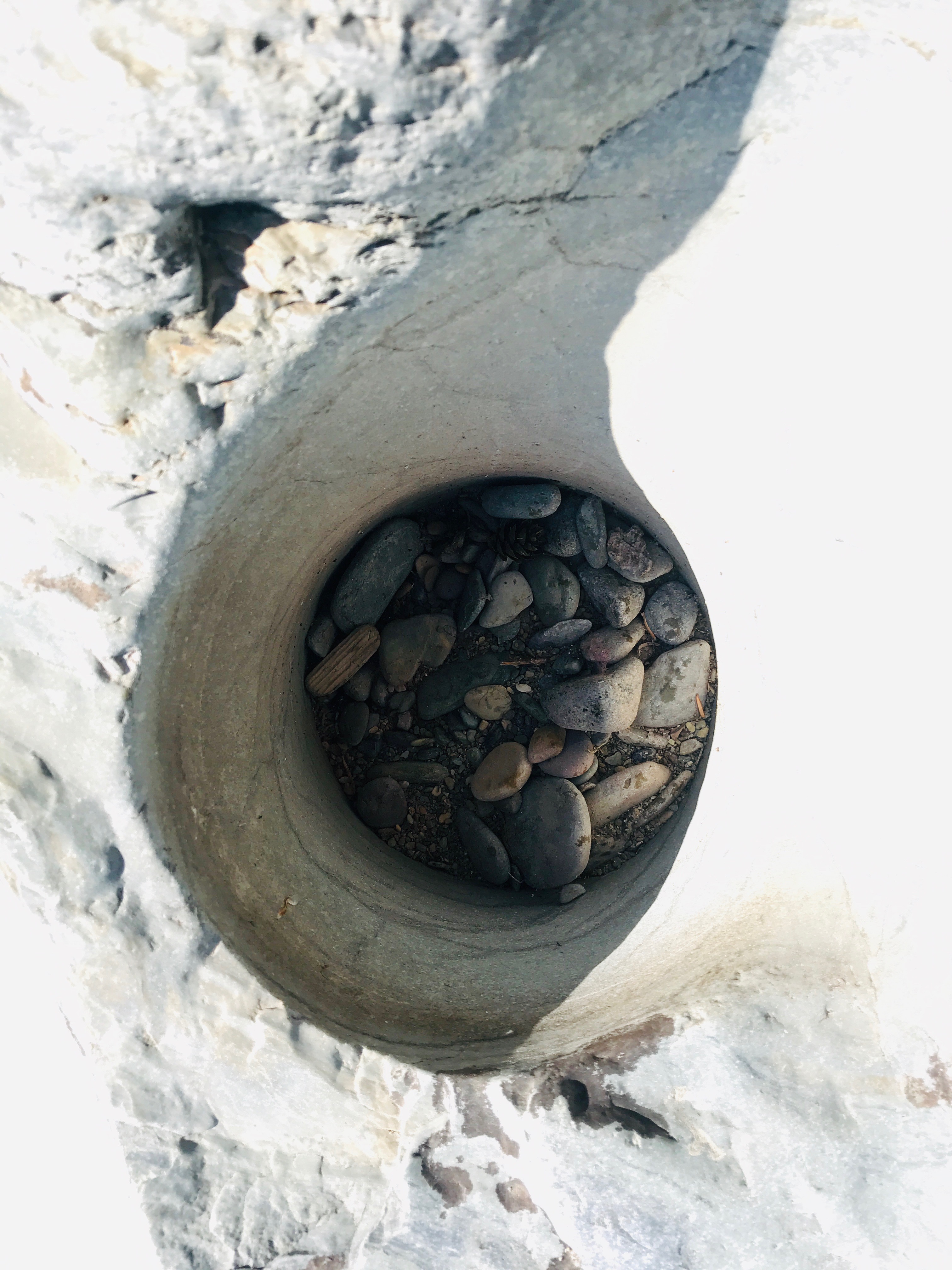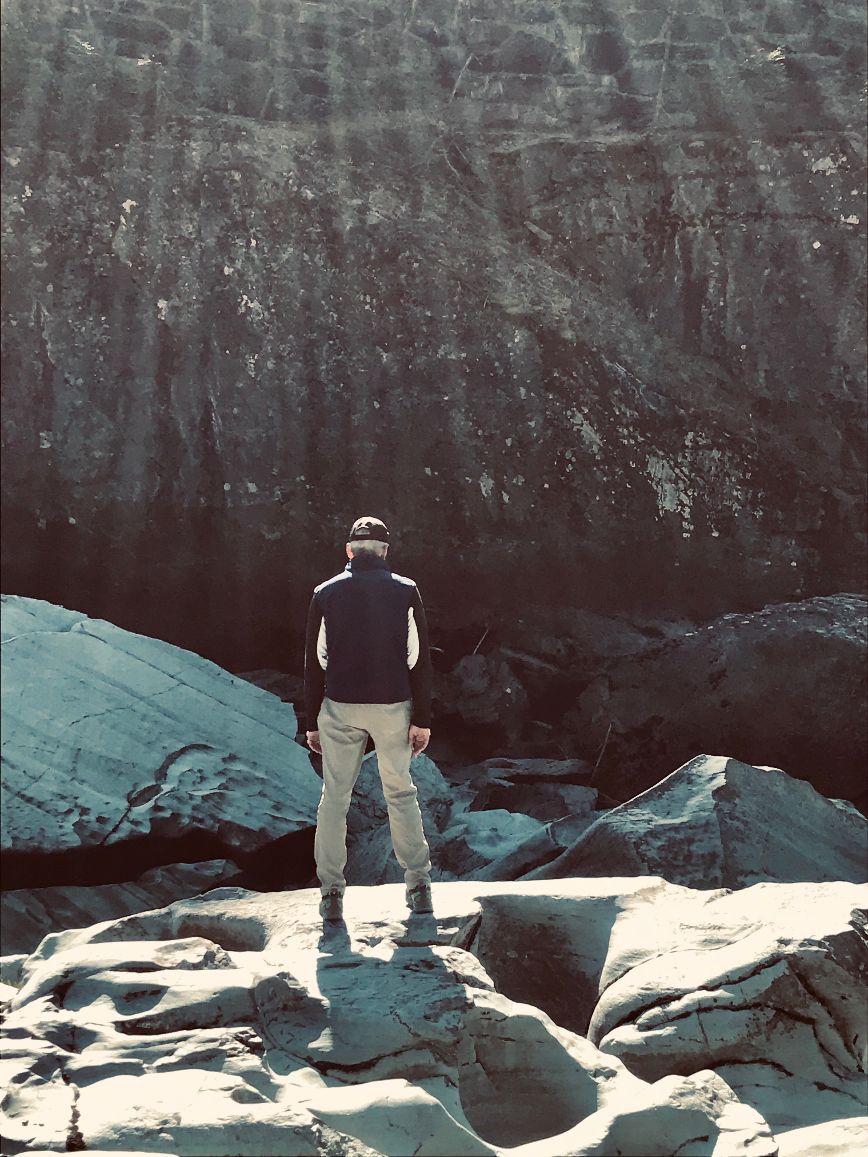 Eventually we reached the end of the trail and wandered down to the water. A series of rock outcroppings lined the shore and we found a good spot to rest and warm ourselves in the sun. I laid down, with hat, gloves, and coat still on, to bath in the warmth of the rays. We enjoyed the small waterfall and glacial potholes carved out from many seasons of rushing water after the winter melt. We hung out here for a while, and my dad even dozed off while sitting next to the waterfall. Only Paul Tonelli would manage that!