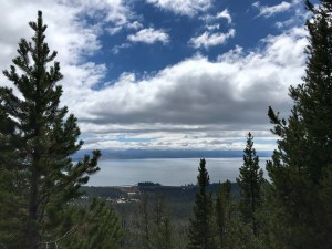 The quiet trail started on the side of the road and led us through thick forest. A mile or two in the lollipop trail, we veered to the right to start our climb. Switchback after switchback zigzagged us higher and higher up the mountain. We went slow, and stopped a few times as the altitude was bothering my dad. As they say though, slow and steady wins the race. It gave us time to soak up the peace and quiet and relish in views of the lake below as it peeked through the trees.