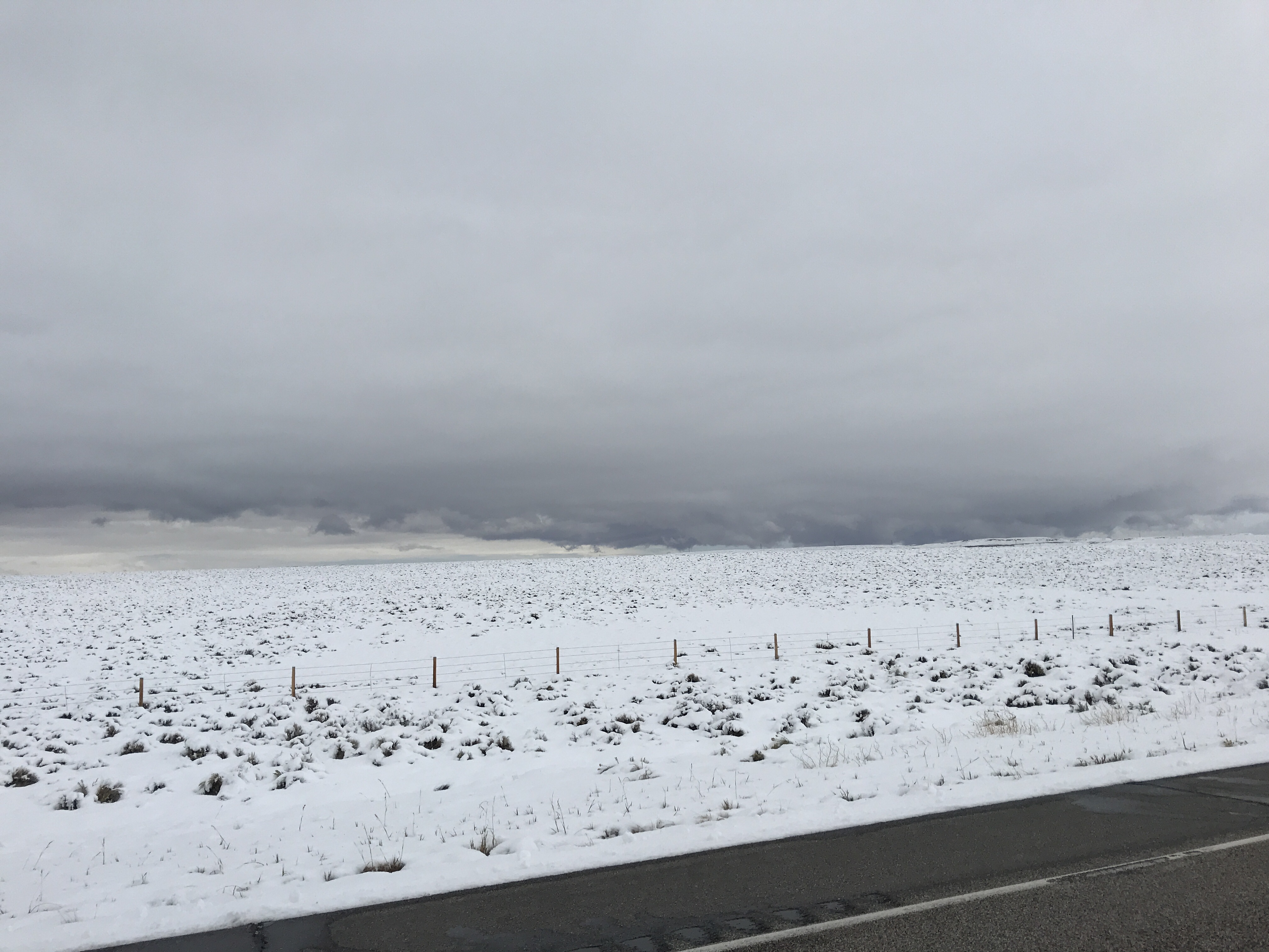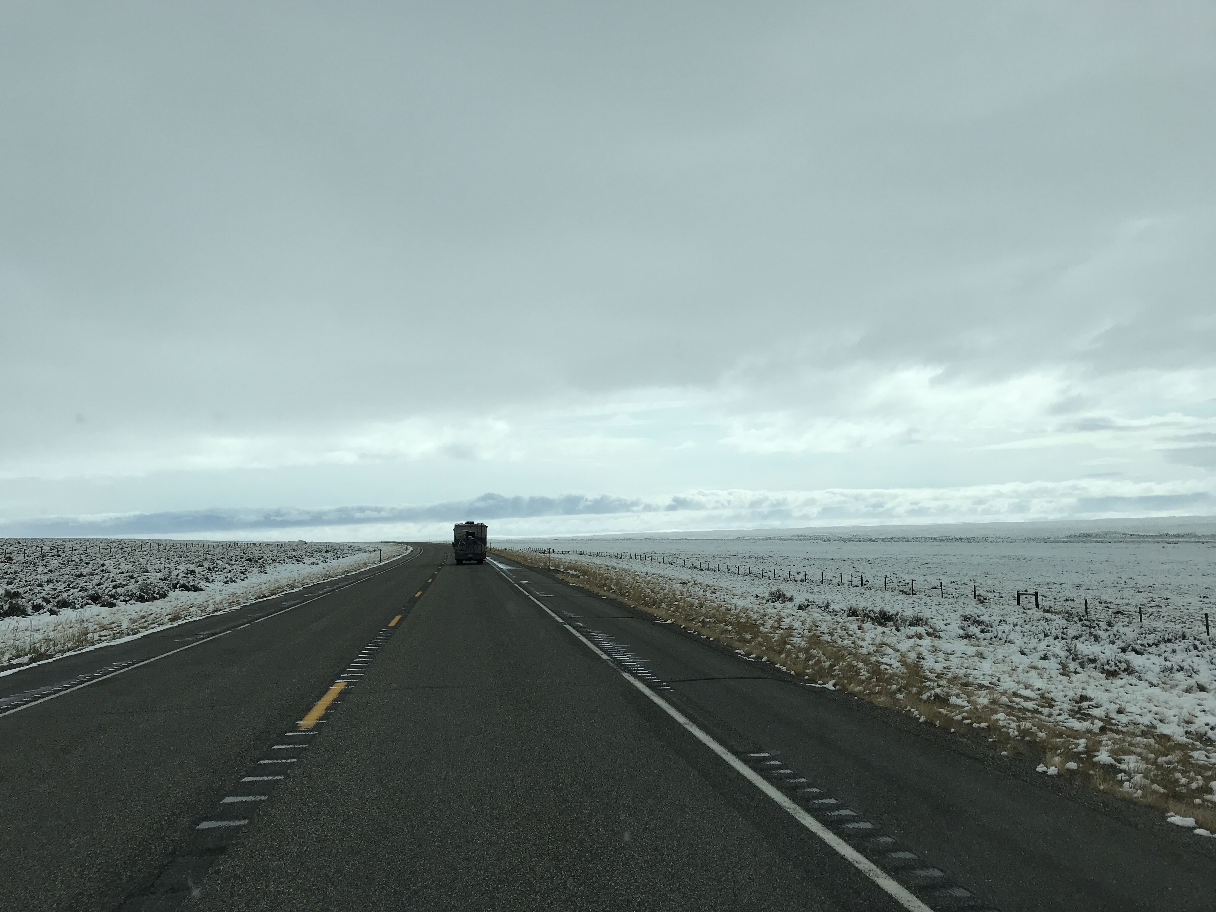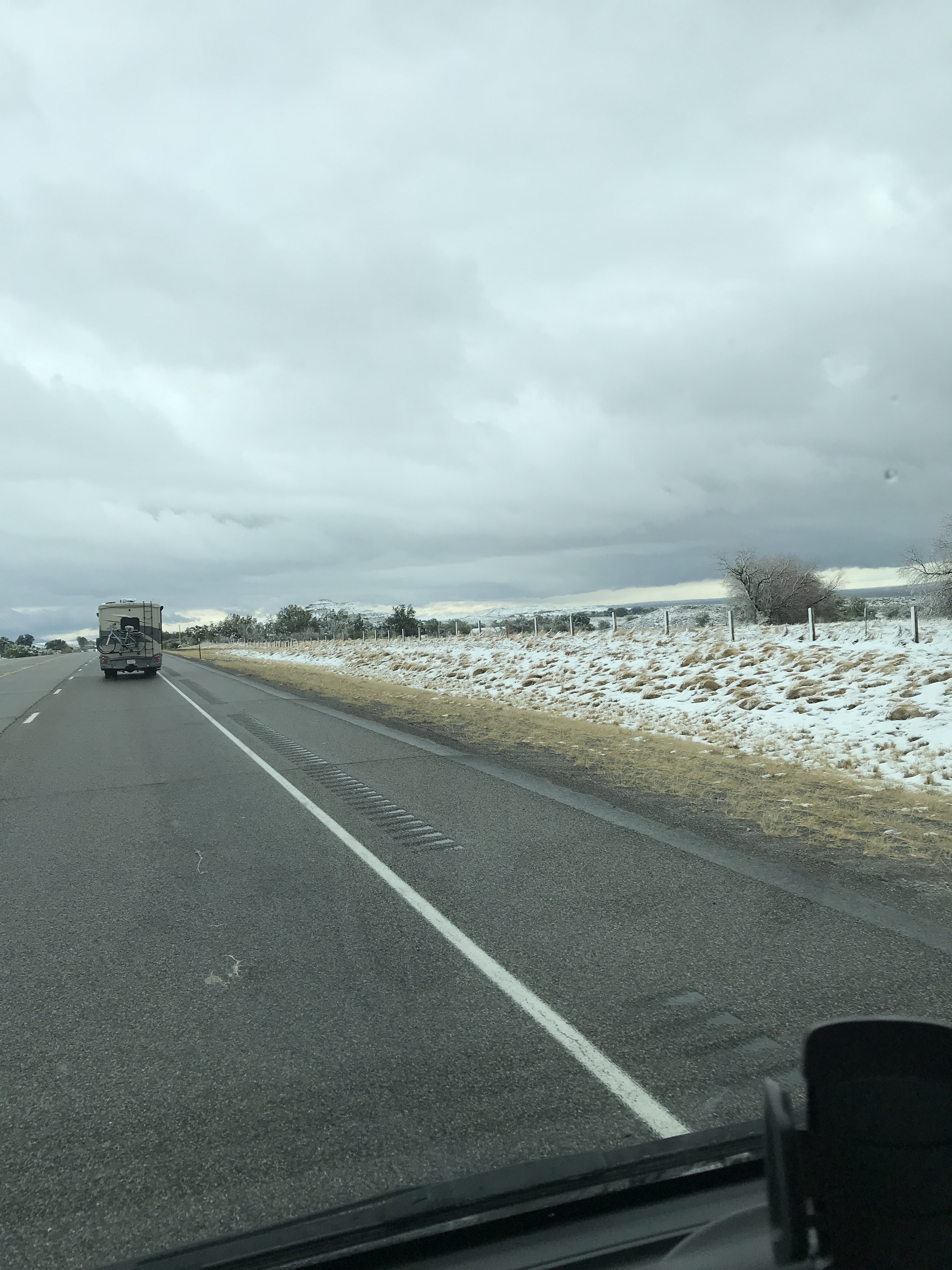 That morning we waited for temperatures to rise before driving, but the high of the day was somewhere around 38. So eventually we set off on another driving adventure through partially plowed roads where the speed limit is 80 miles per hour. We did not do that – more like 50 mph for us. The scenery was beautiful – a blanket of snow covering the land. In one direction the snow covered mountains glowed in the sunlight, in the other they were topped by ominous dark clouds. It would have been enjoyable to admire, if the roads were in better condition. After seeing a few cars skidded off the road (everyone was outside their vehicles and ok), getting splashed by tractor trailers, and having ice chunks thrown at us by plows, we opted drive to the interstate and rerouted. Another driving “adventure”. So far, the Solis has now withstood curving, narrow roads, hail, high winds, and snow. It’s a beast. 😍