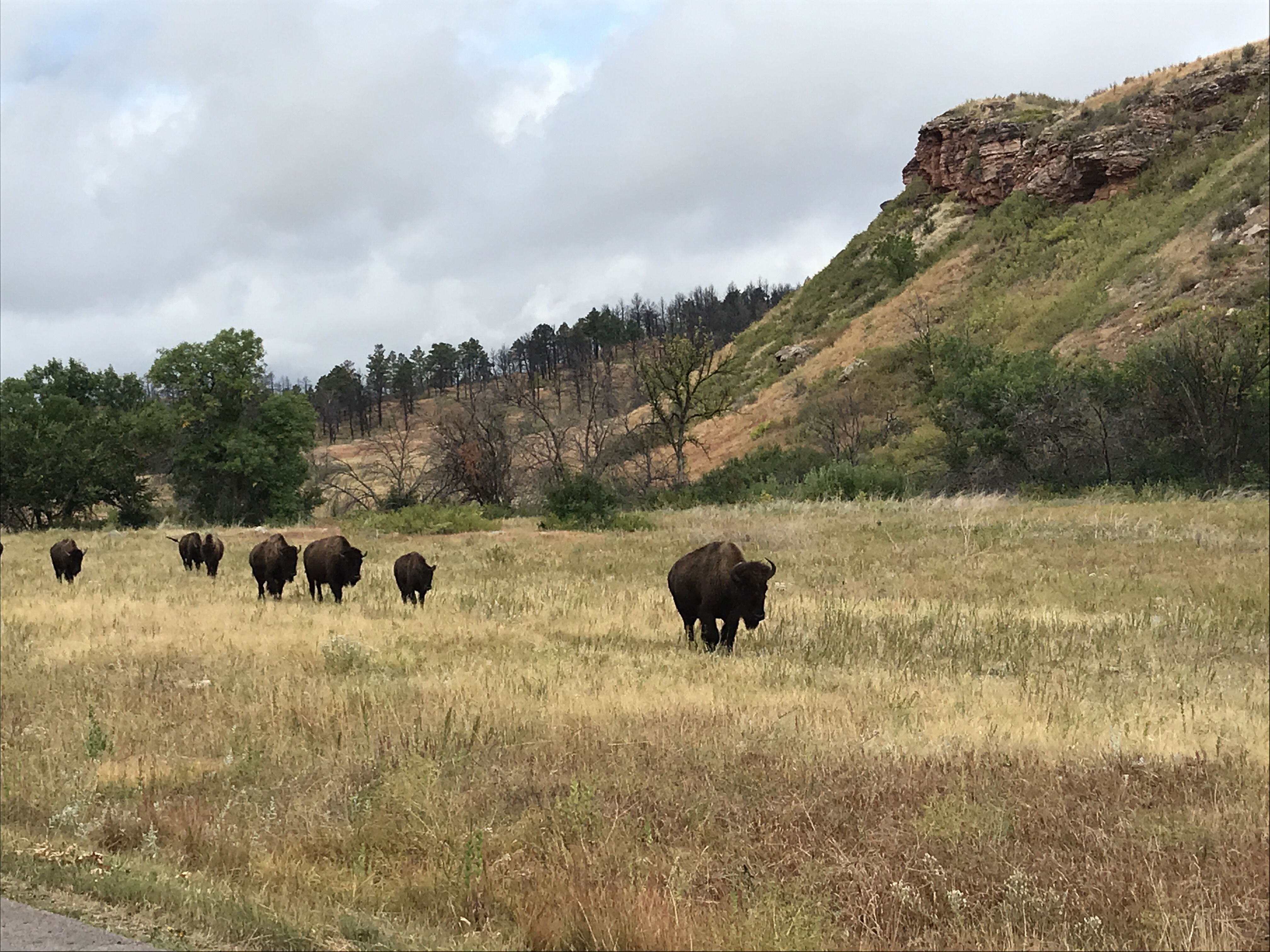 On our first day, we woke up early and set out to find the herd. It was chilly and gray, but the warmth and protection of the Solis kept us comfortable. We slowly drove down the wildlife loop in the park with eyes wide open. All around us were rolling hills with deep green pines, the trees that give the Black Hills their name. It was as if they cast a dark shadow over the hills, climbing up the sides.