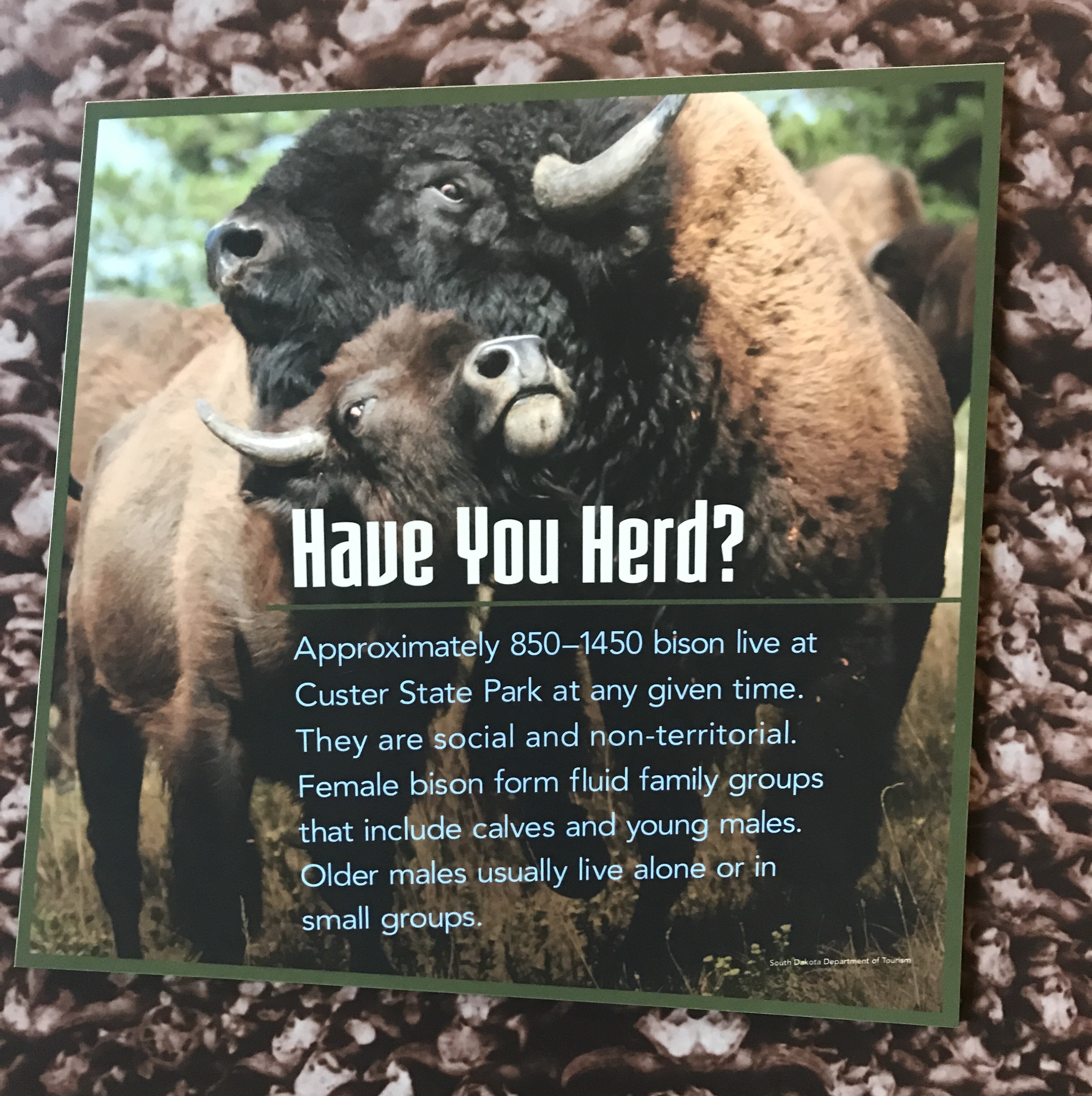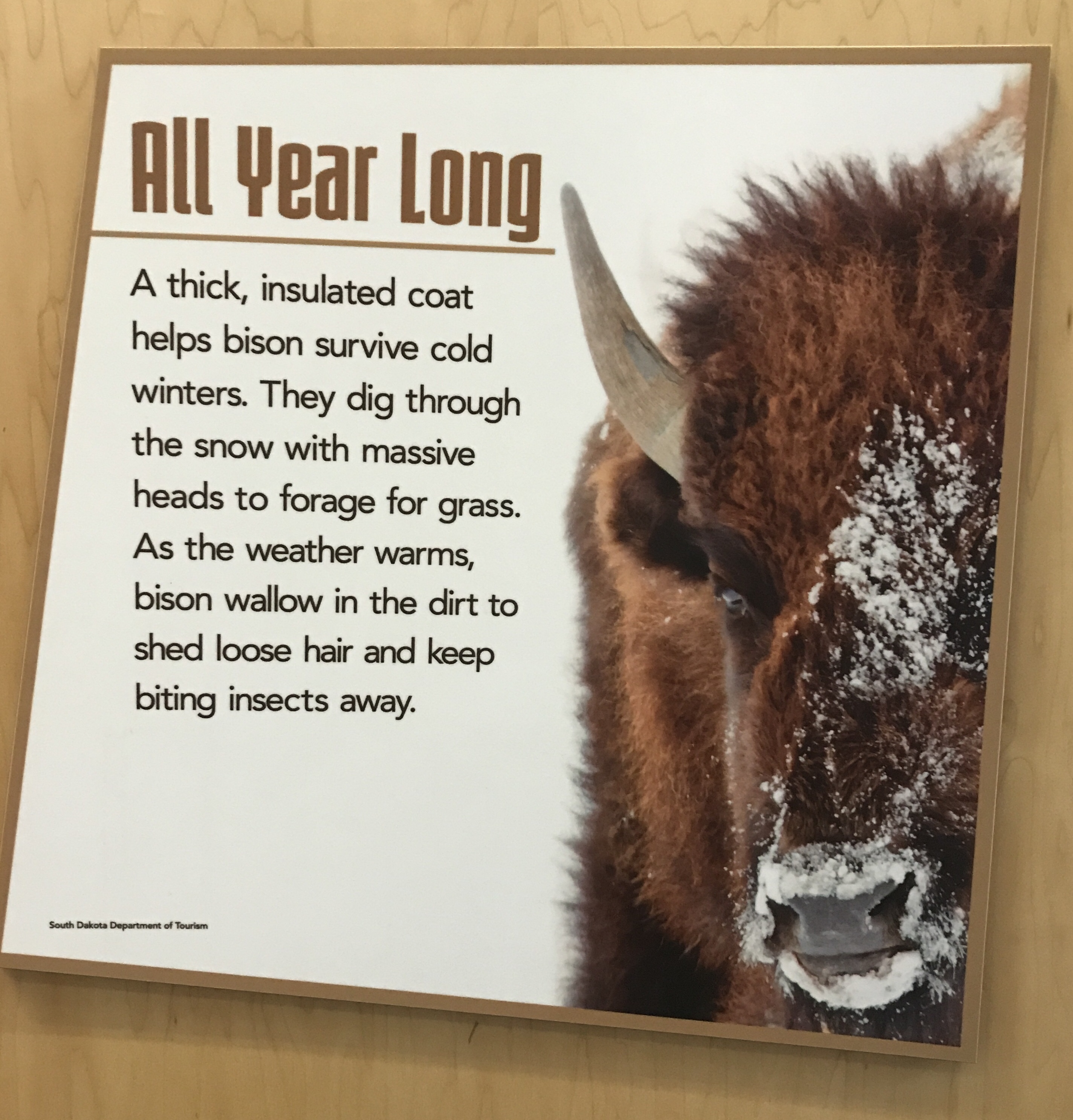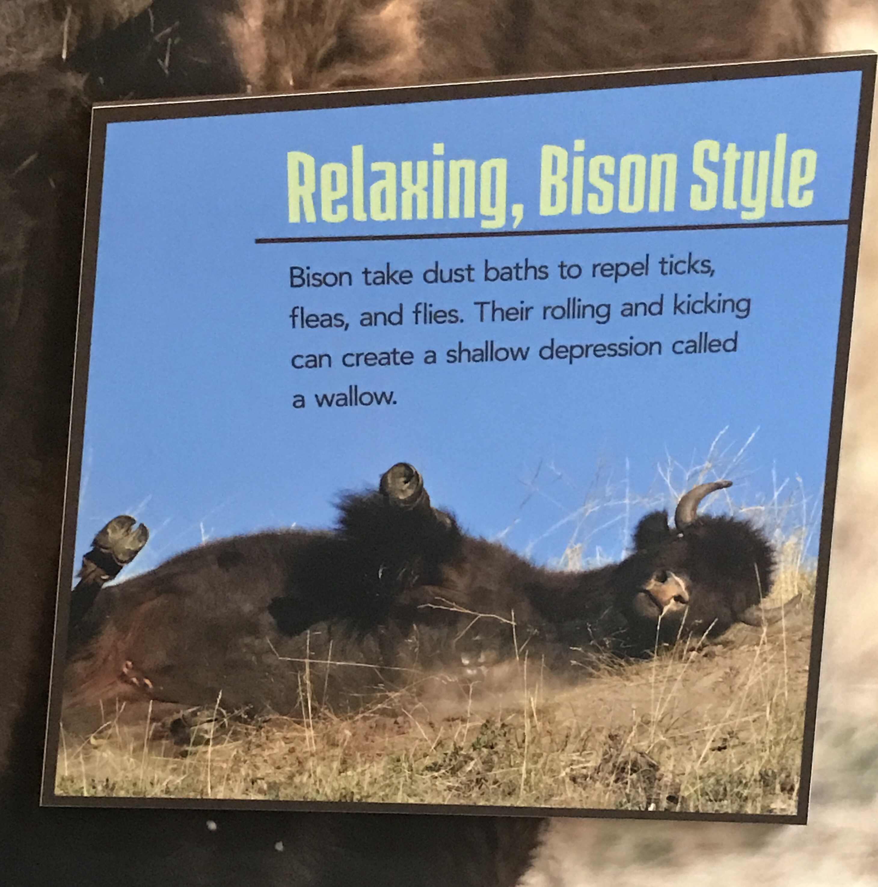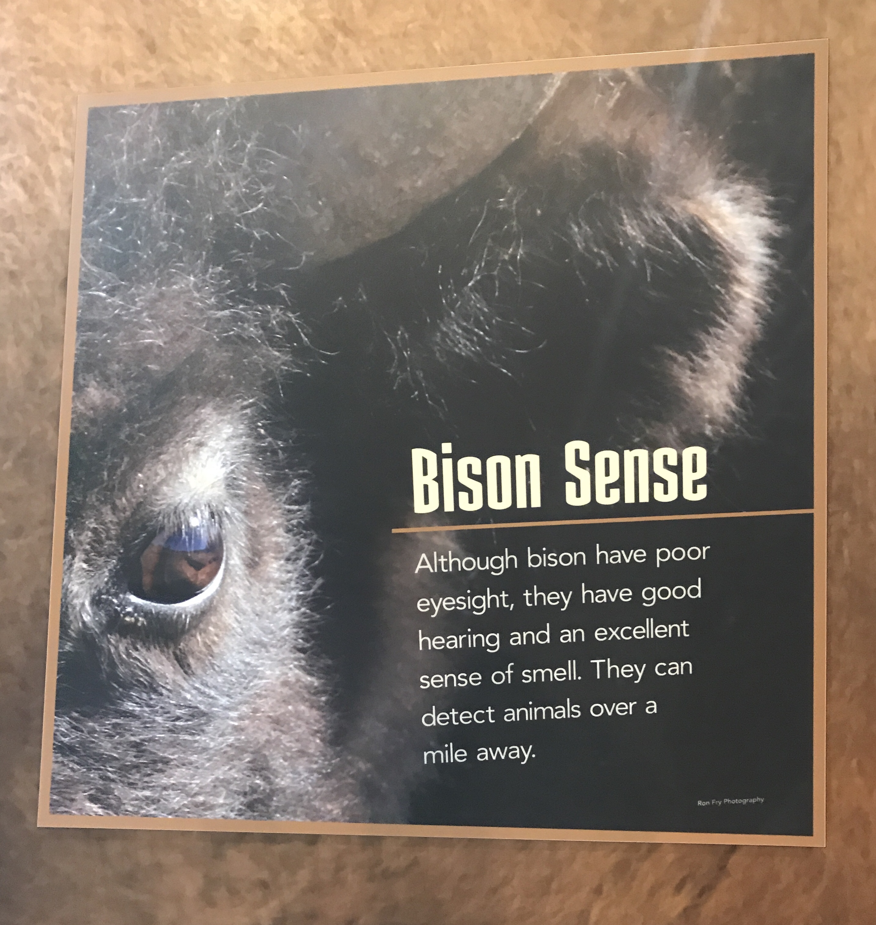 After soaking up our fill, we continued on to the the newly built Visitors Center to learn about the herd. Did you know that bison can run 3 times faster than the average human? Between 35 and 40 miles per hour! Bison tend to live for 12-20 years and can grow over six feet tall. I took some photos of the other stats and will share below. I’m continually amazed by these creatures.