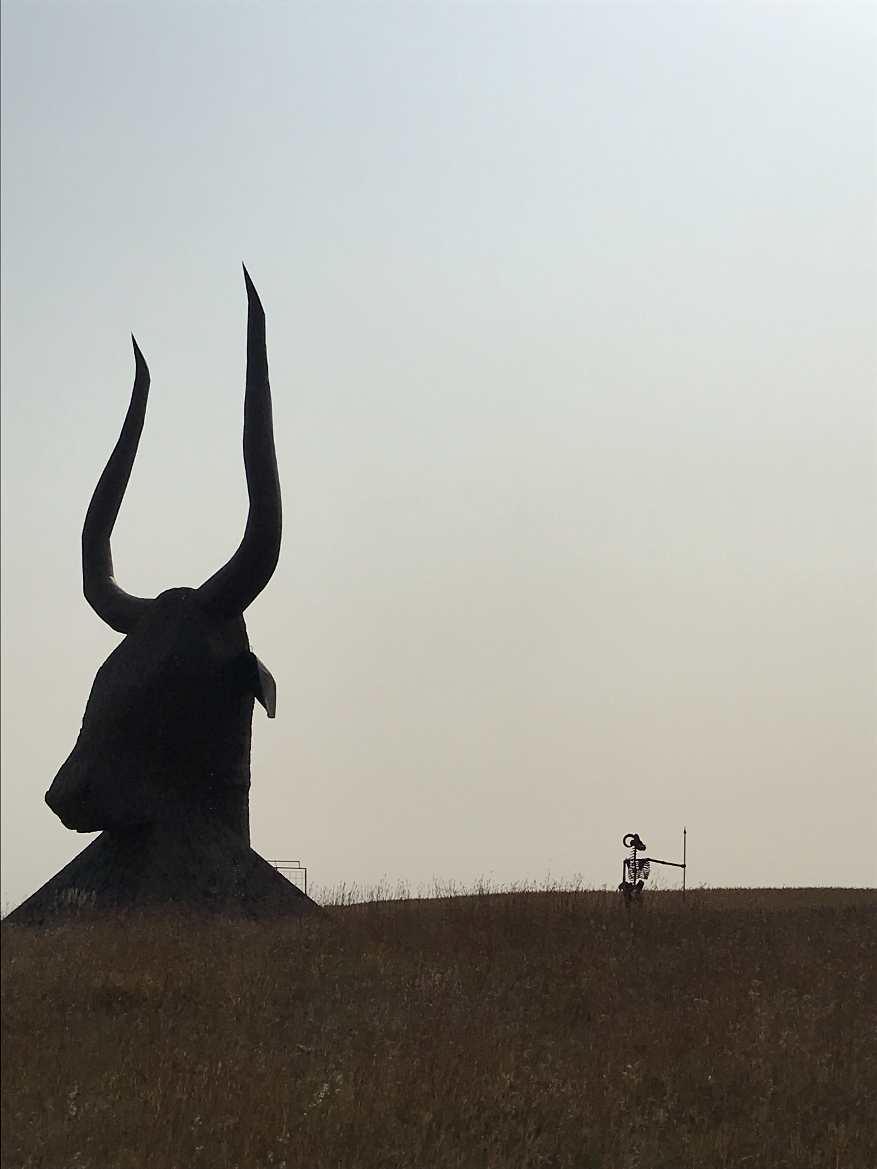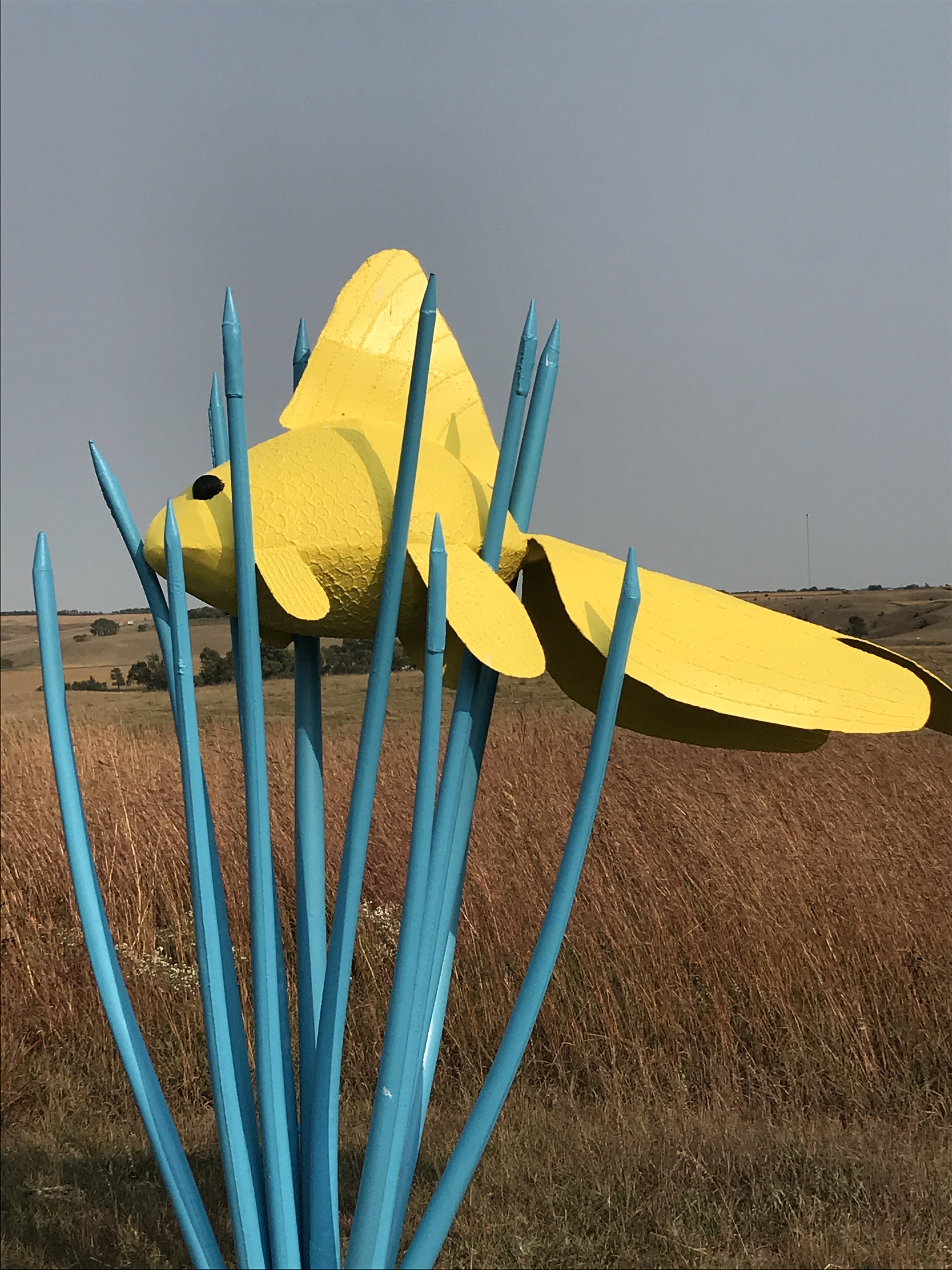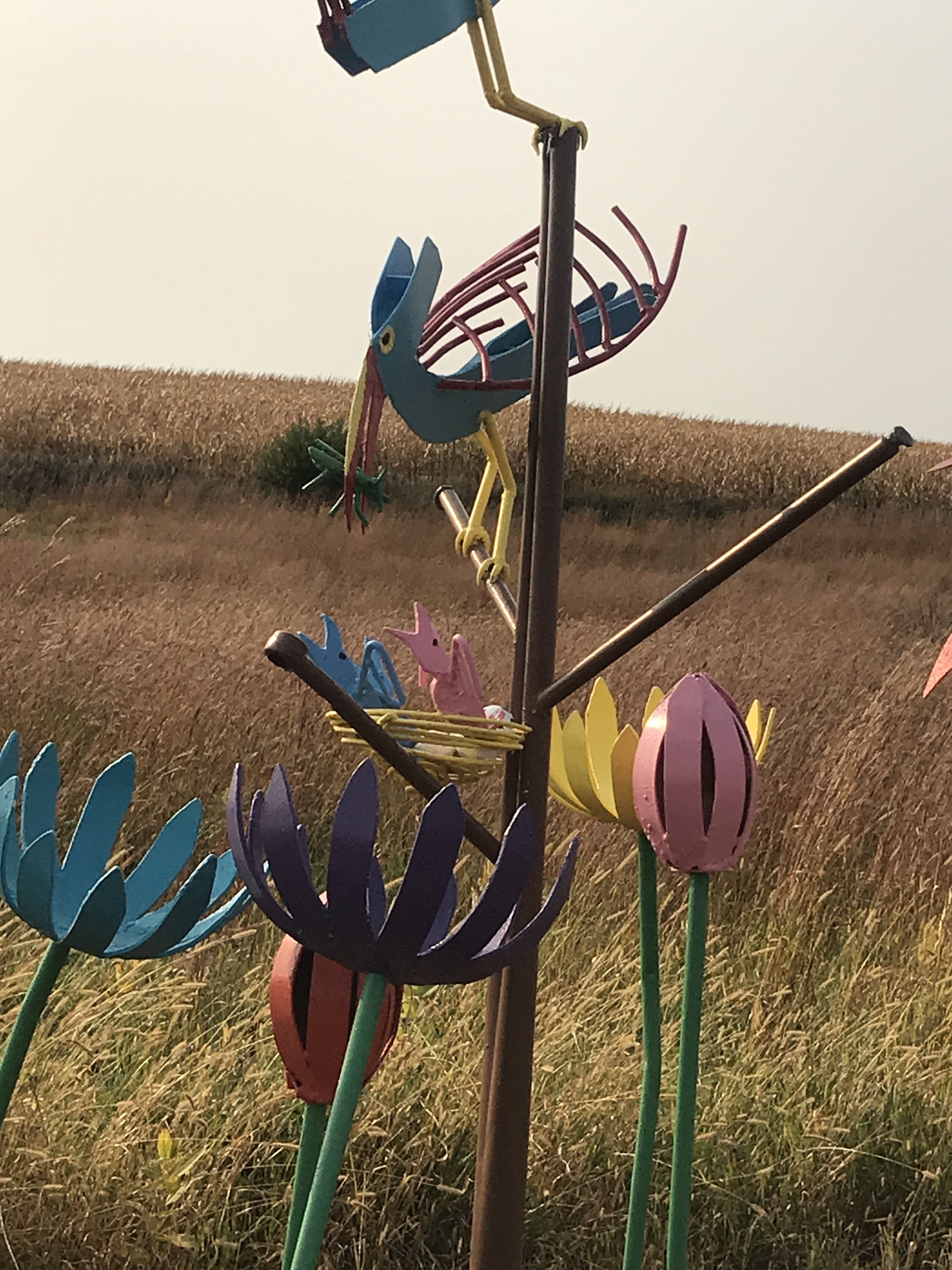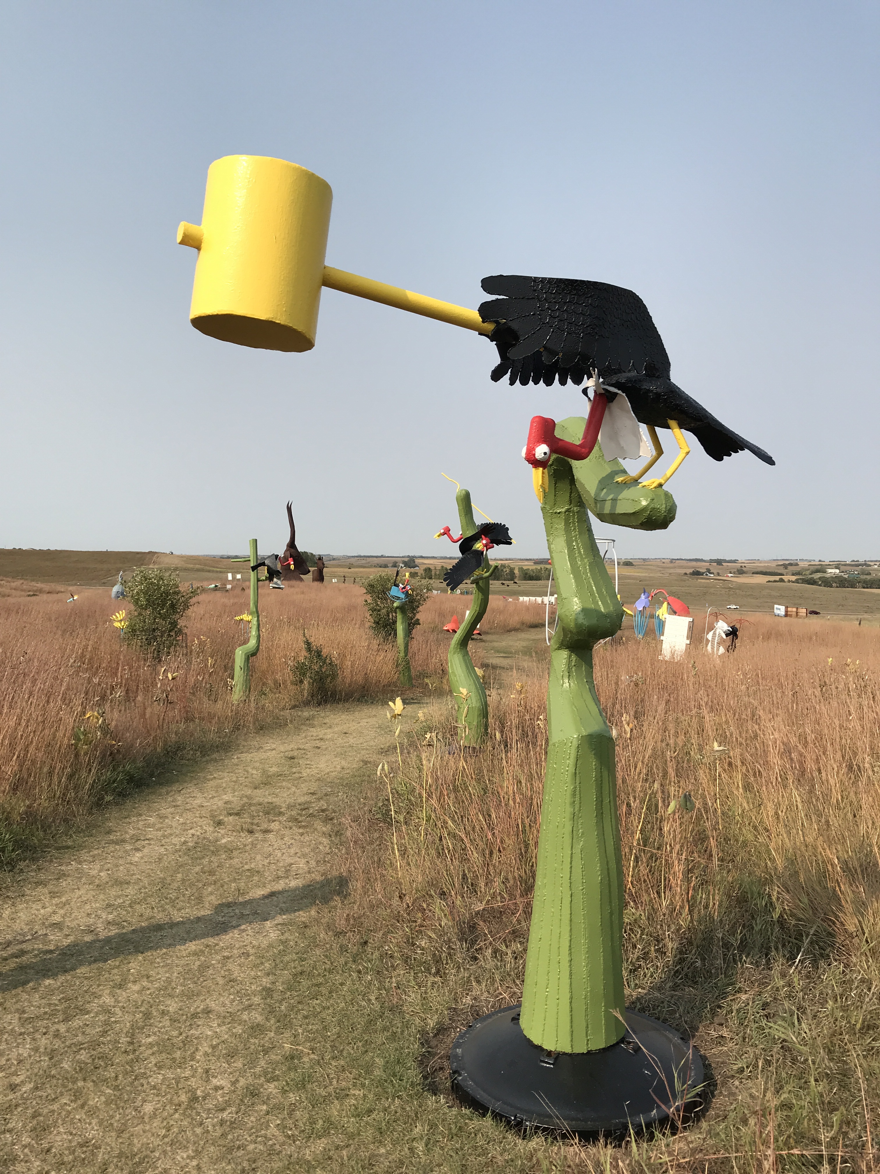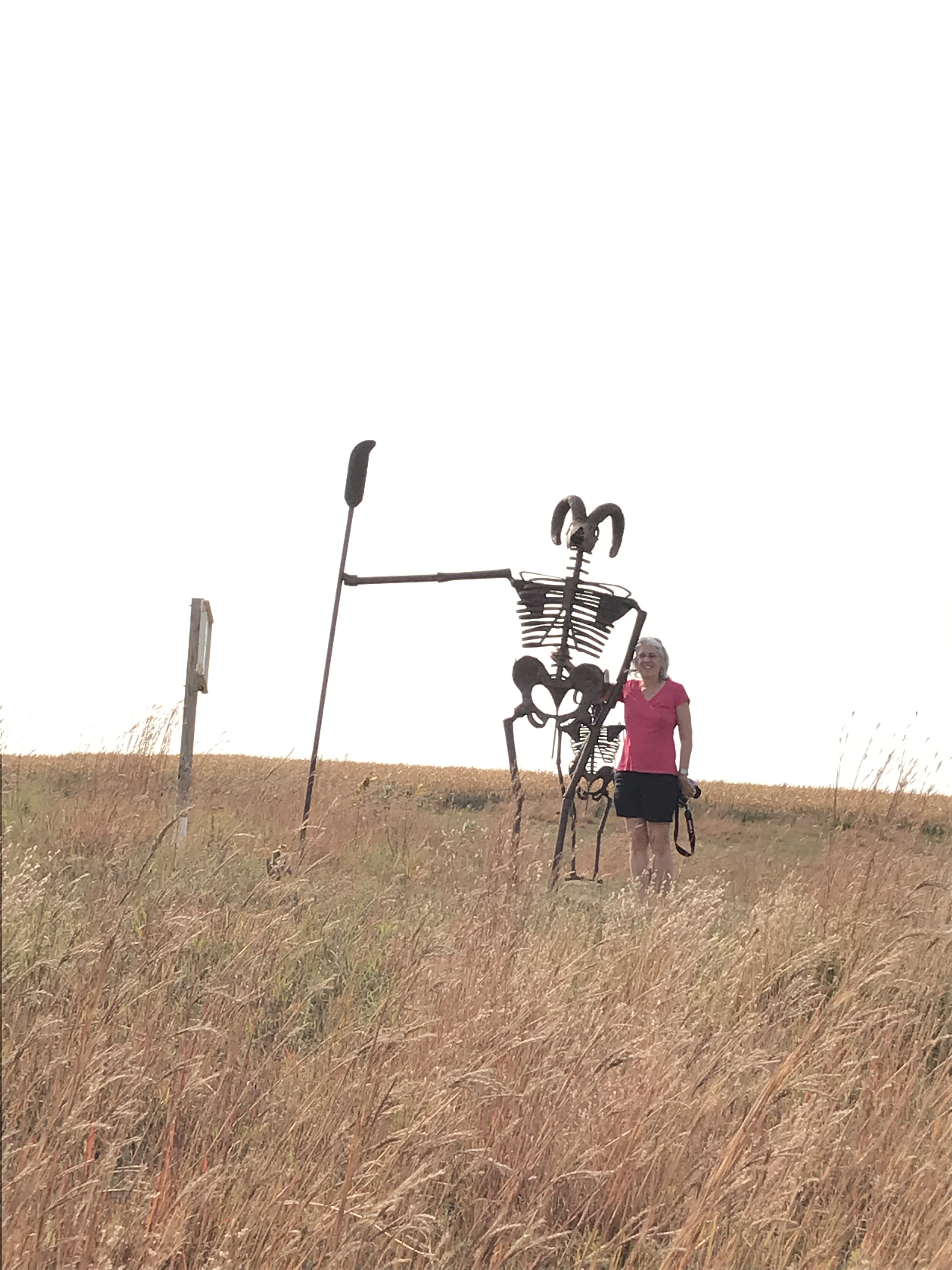 Soon we were rolling down the highway again to the South Dakota/Iowa border. The highways are wide and level, sometimes with a slowly inclining hill, and straight. A few hundred miles later and it was time for another break. Our second find of the day was Porter Sculpture Park, just a few miles from our state park campground.