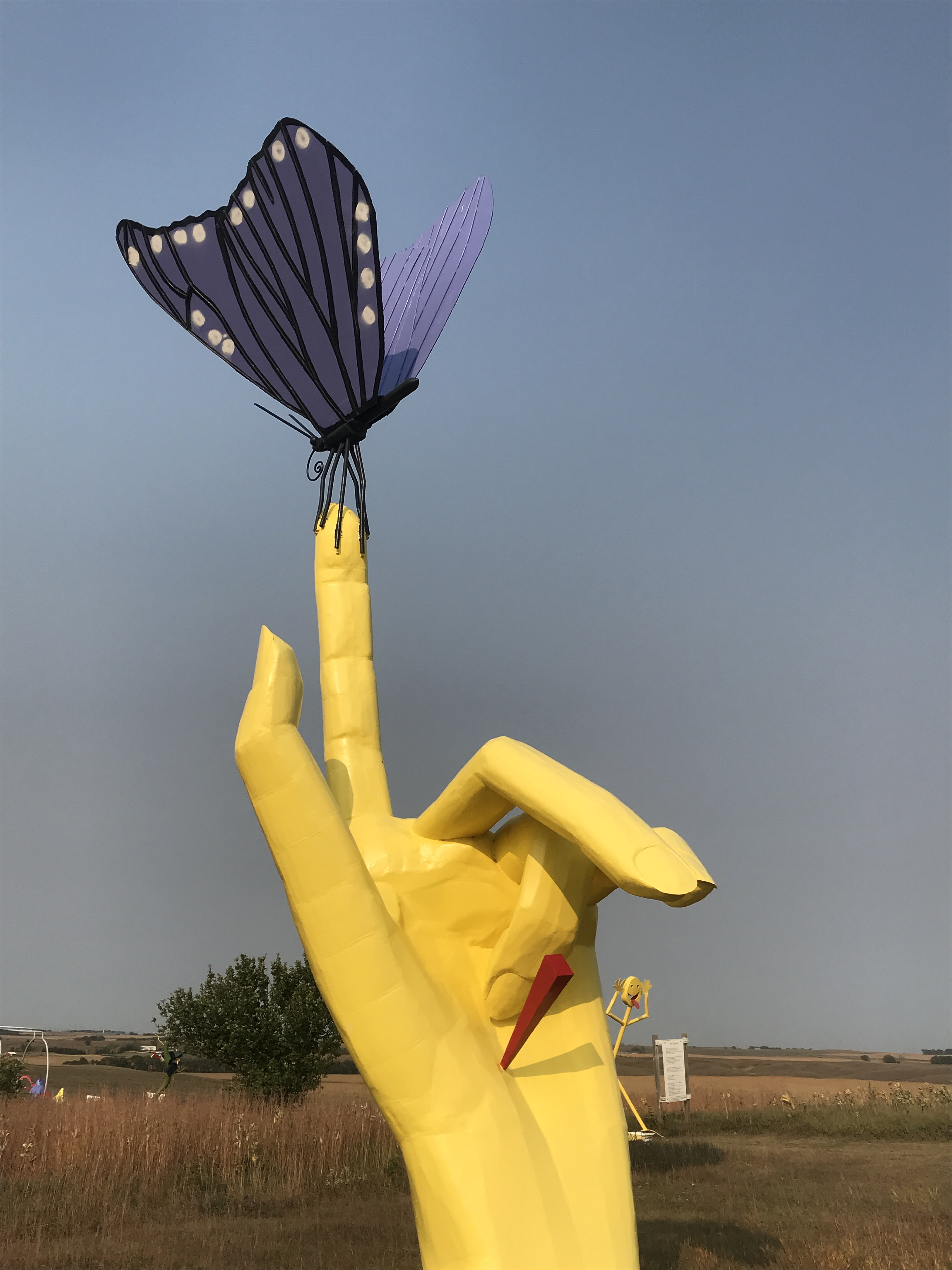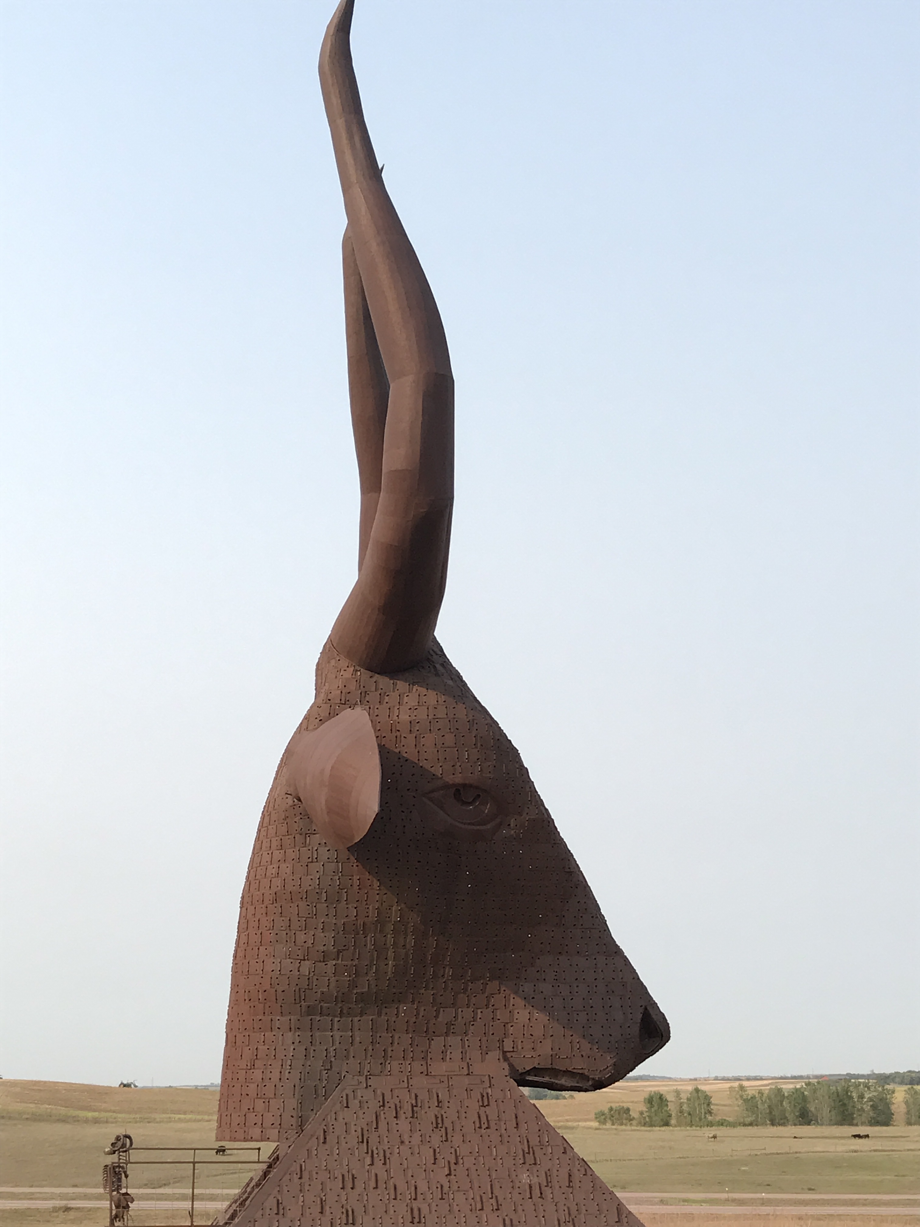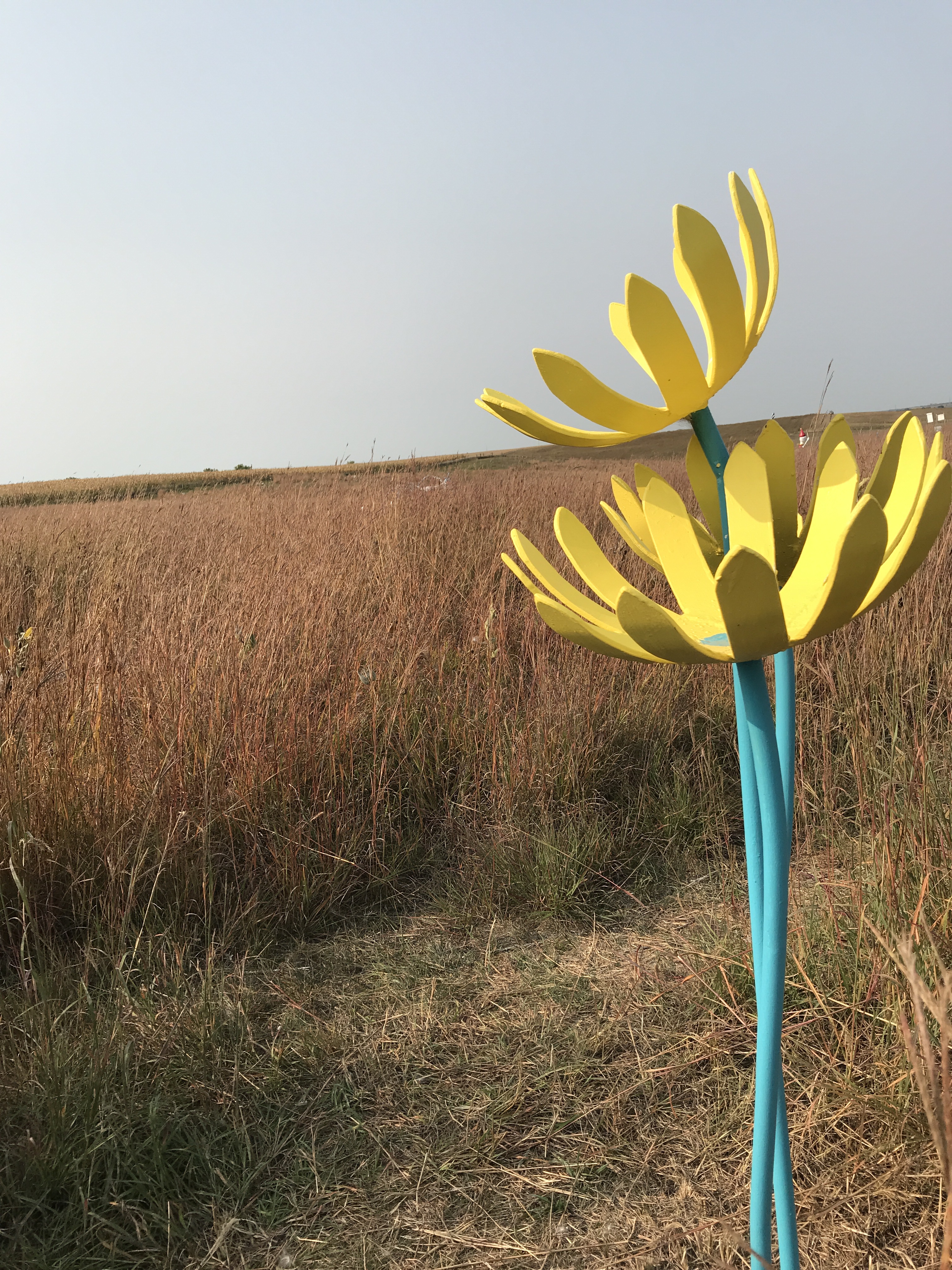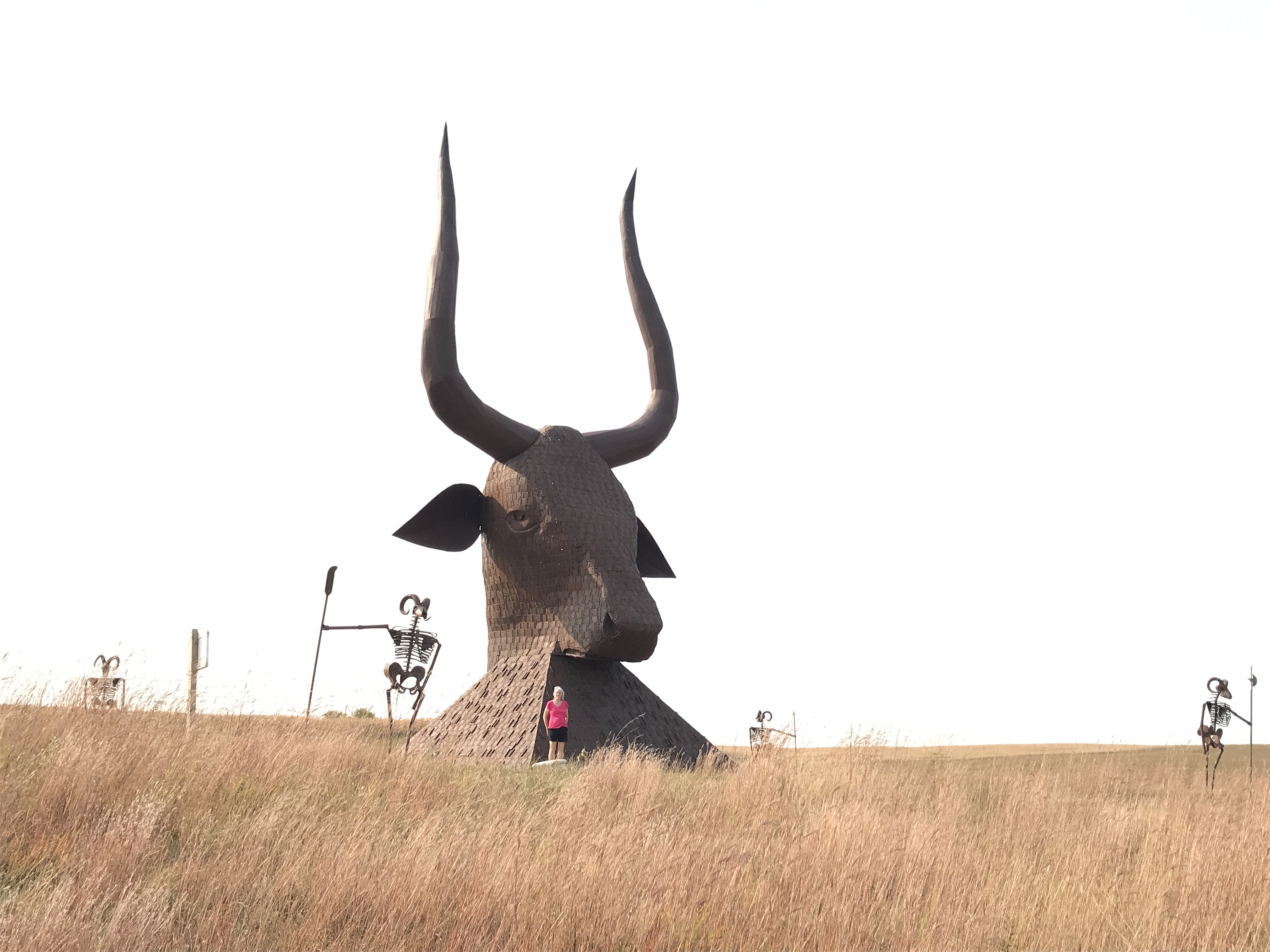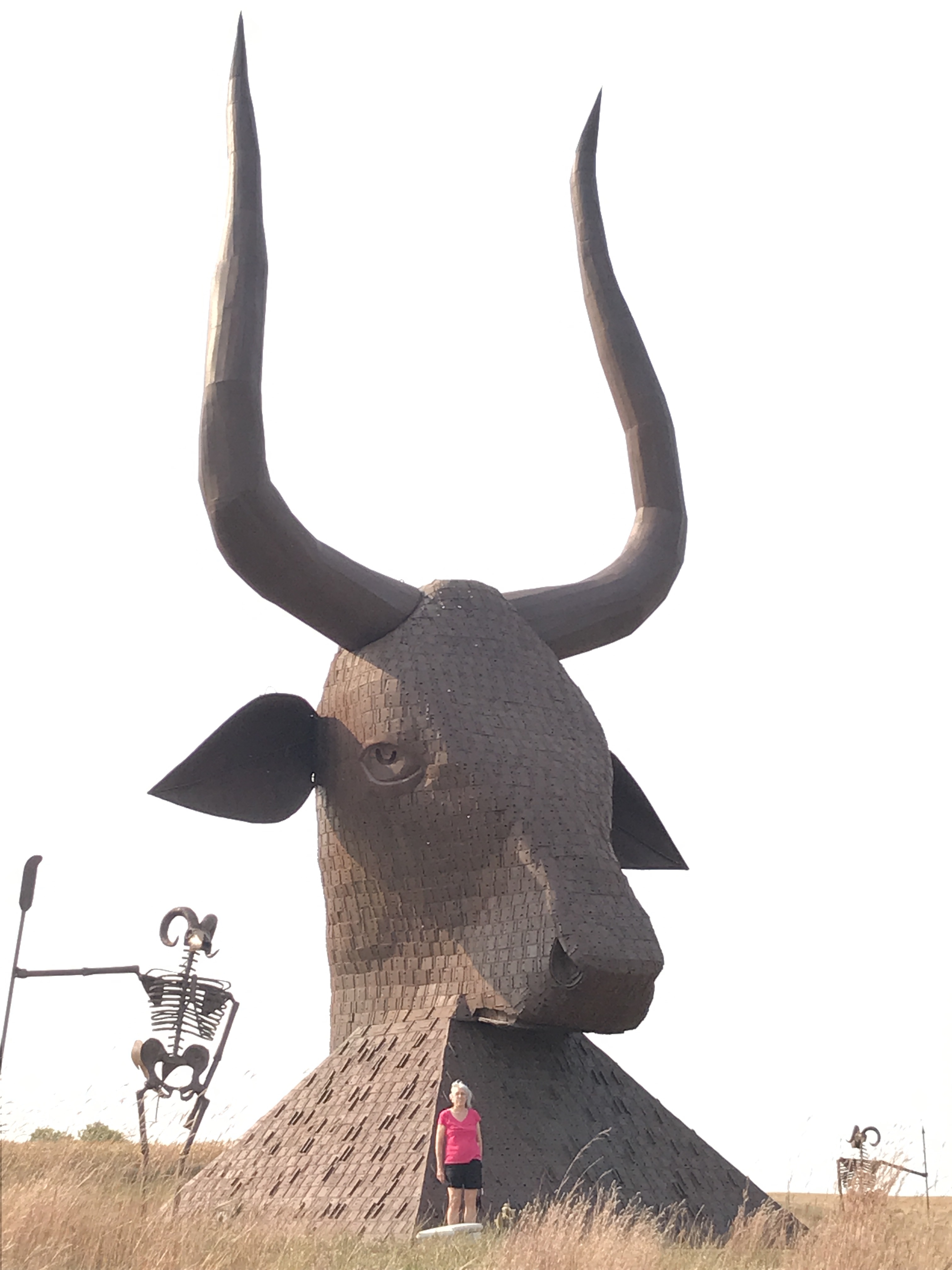 Soon we were rolling down the highway again to the South Dakota/Iowa border. The highways are wide and level, sometimes with a slowly inclining hill, and straight. A few hundred miles later and it was time for another break. Our second find of the day was Porter Sculpture Park, just a few miles from our state park campground.