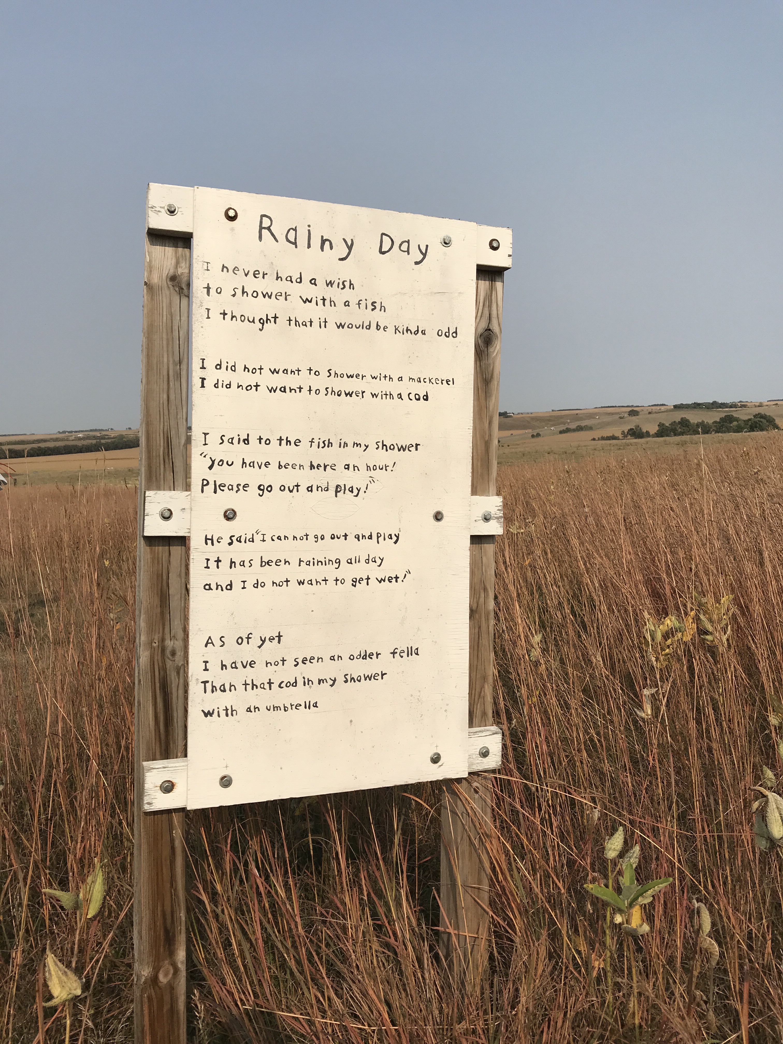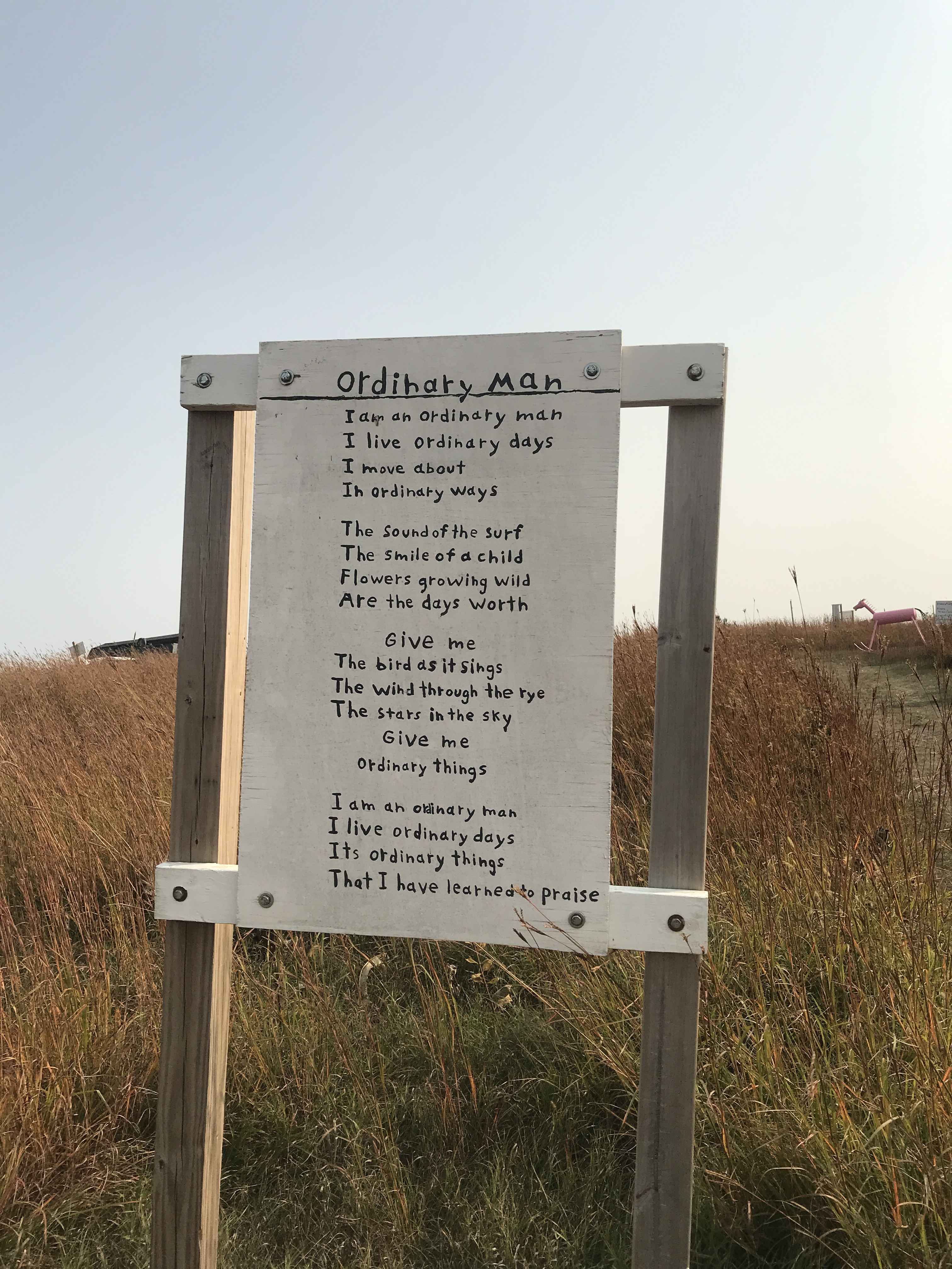 As you wander the park, you can read Wayne’s poetry, some political, some comical, others seemingly random. Many connect to the art displayed.