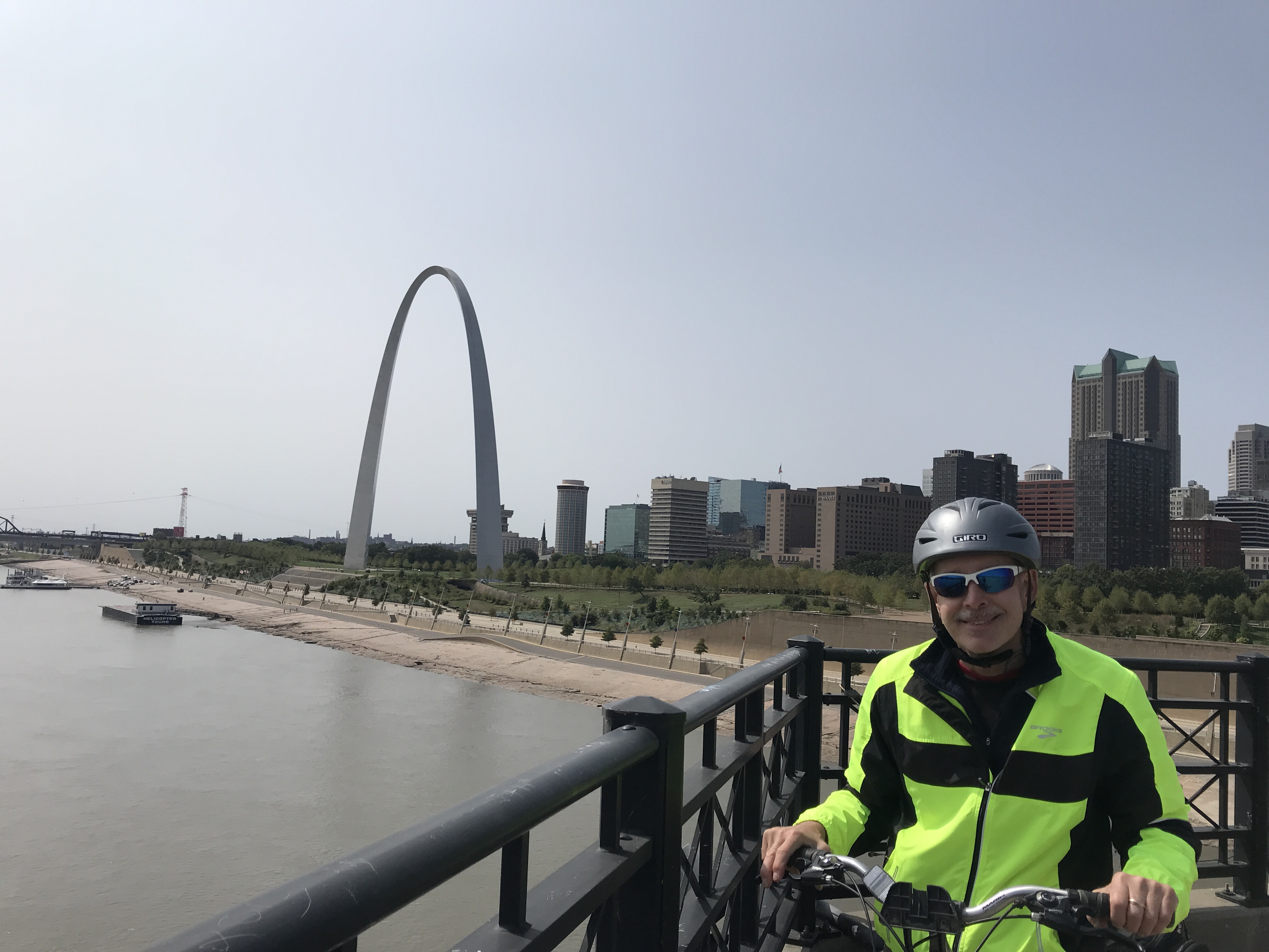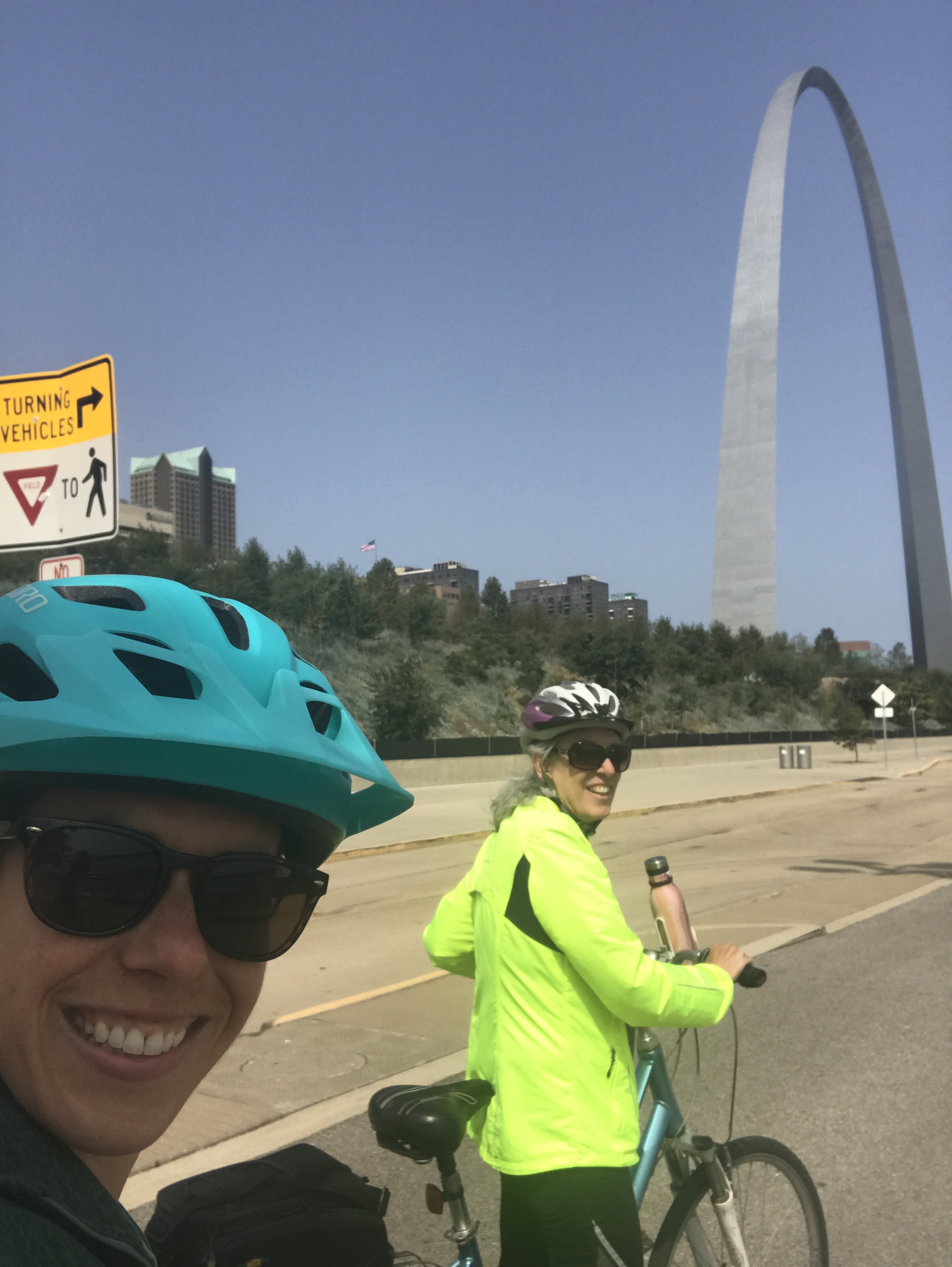 The next morning, we took our well rested bikes off the rack and rode over to the park. Across the Ead Bridge we went, high about the Mississippi River. The city of St. Louis is extremely bike friendly and a half wall barrier provided us safety and protection from the cars.