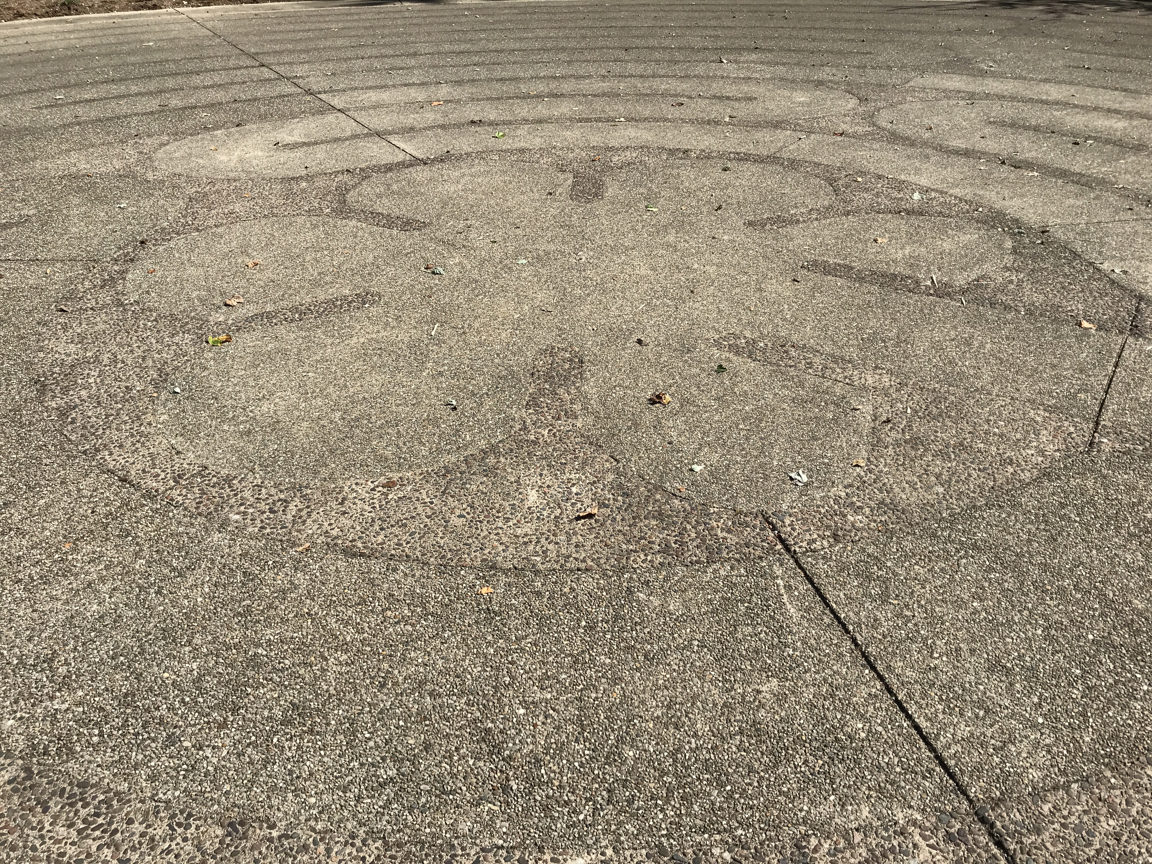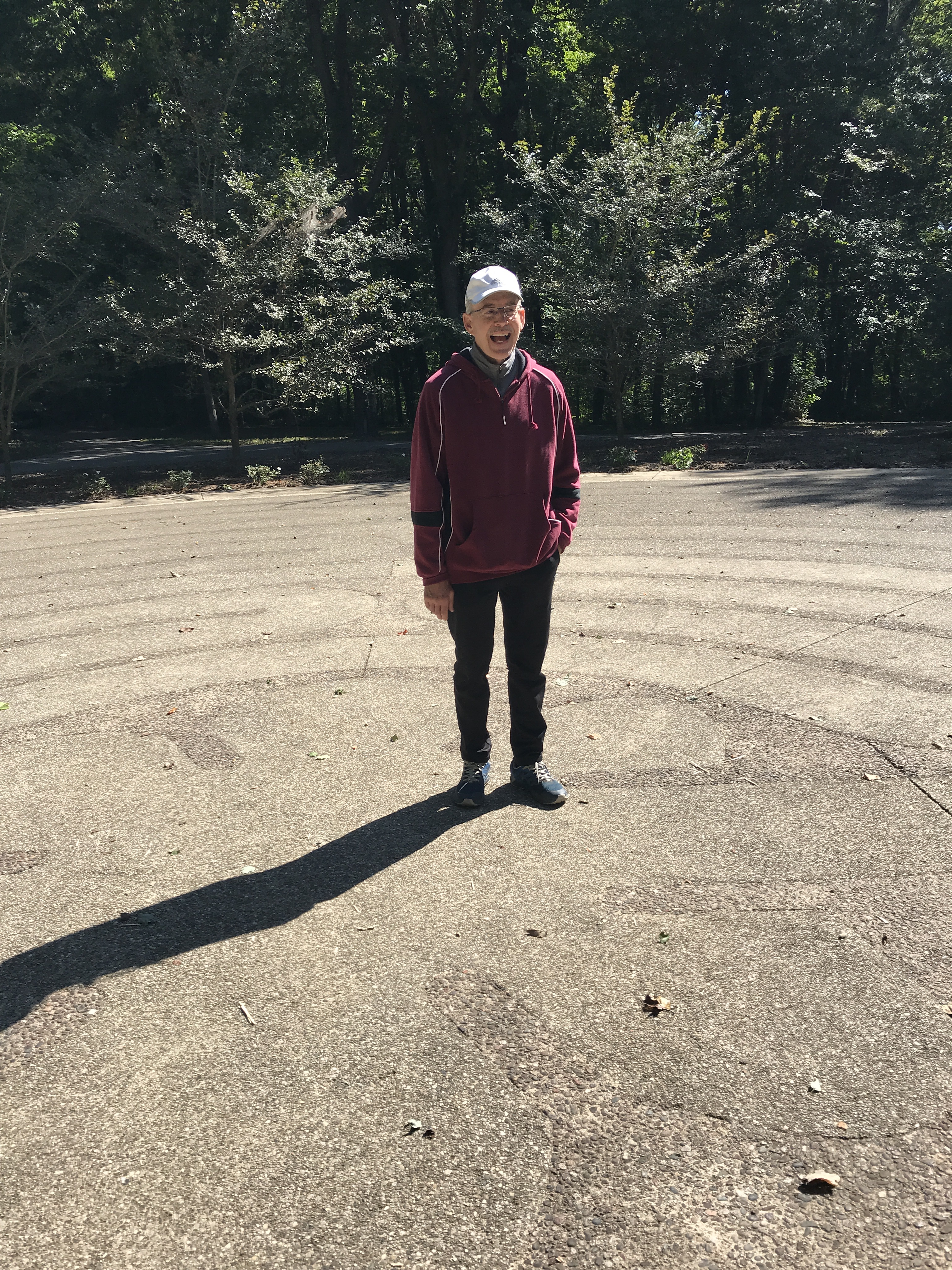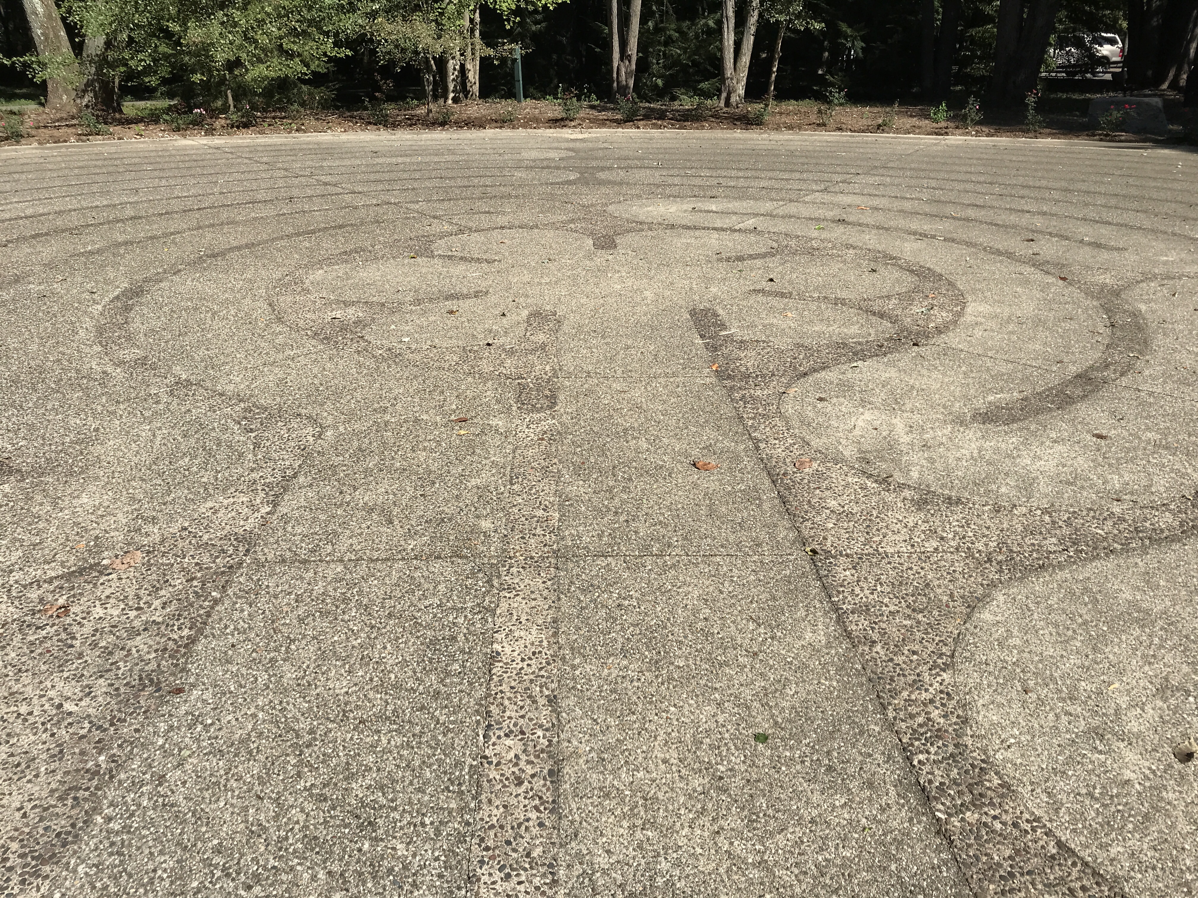The labyrinth isn’t exactly what we expected, as it has no walls, but it was still an interesting find. Created in honor of local man, Kenneth E. Smith and modeled after the floor of the Charles Cathedral in France, the stone maze depicted on the ground winds you back and forth for over have a mile until you reach the center. I enforced the “no crossing the ‘walls’” rule and coerced my dad to participate. My mom was already on board! We raced around, sometimes wondering if we’d ever reach the center, until success! It was a good test of patience and a fun way to stretch our legs. On our way out, I didn’t make my dad follow the path – we just walked out. 😉