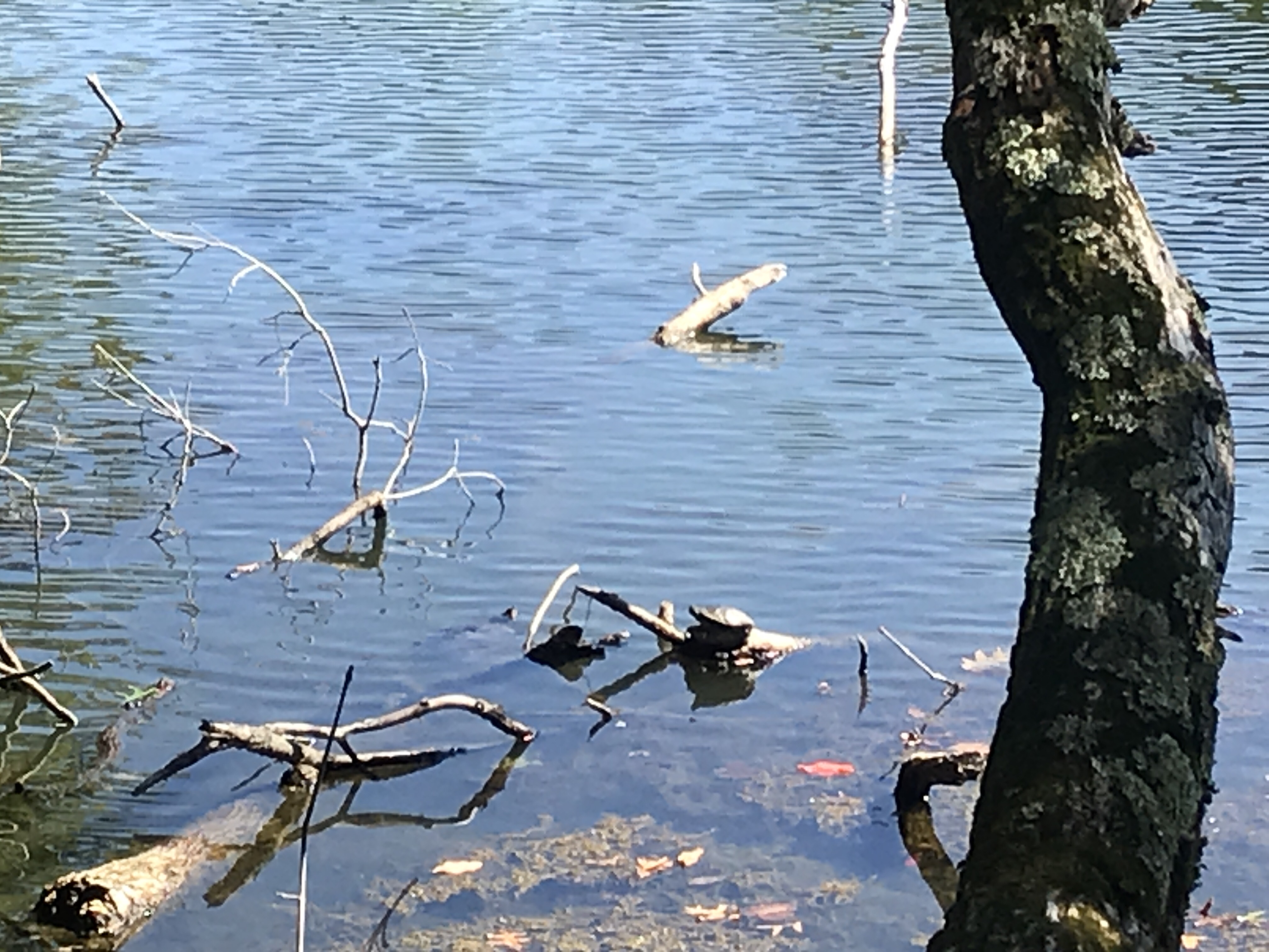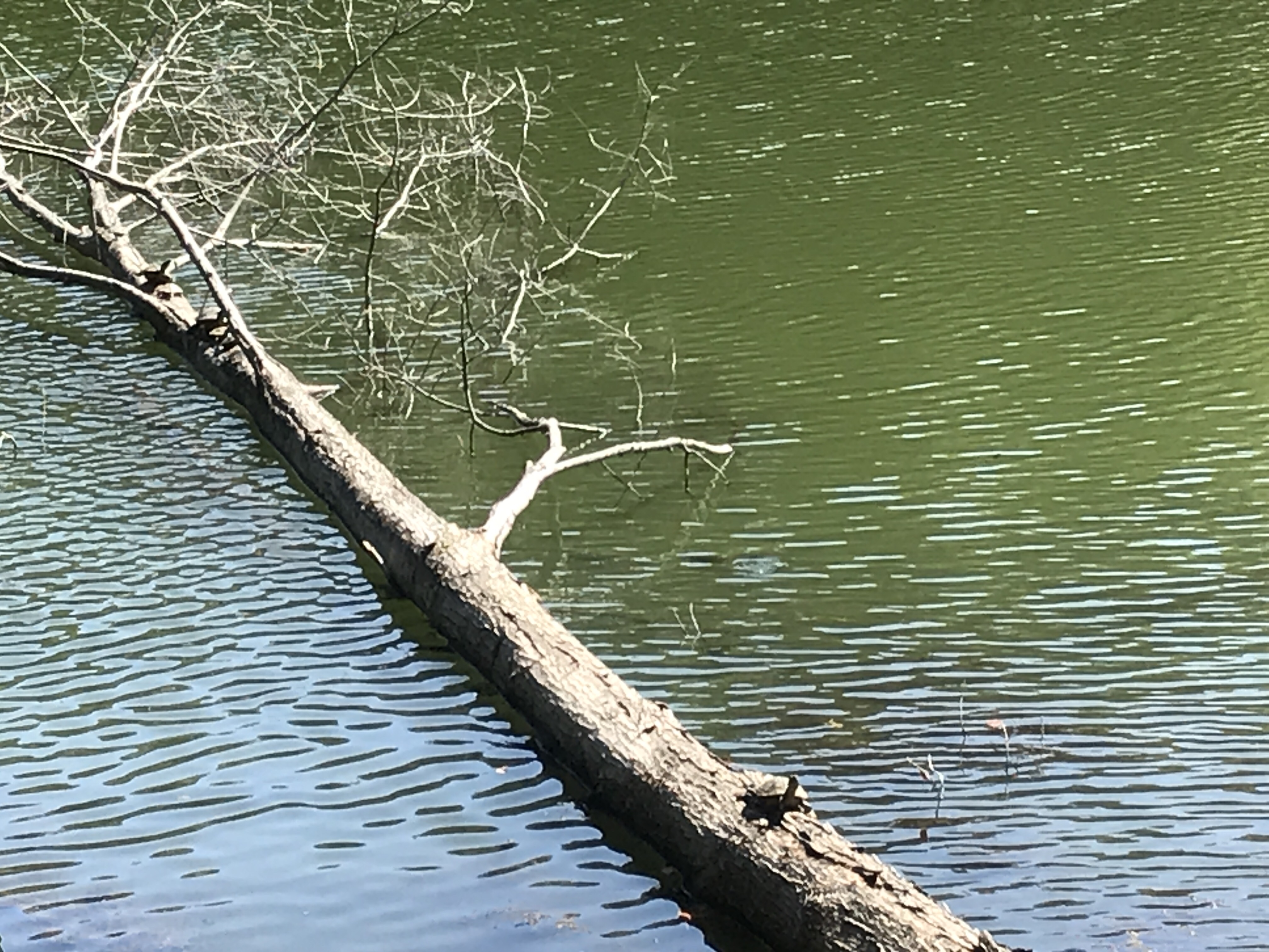 We then looped around the lake and were entertained by several turtles sunning themselves on logs sticking above the surface. Some stayed for a photo opt, but others quickly skittered back into the cool waters. We arrived back at the motorhomes and continued driving east.