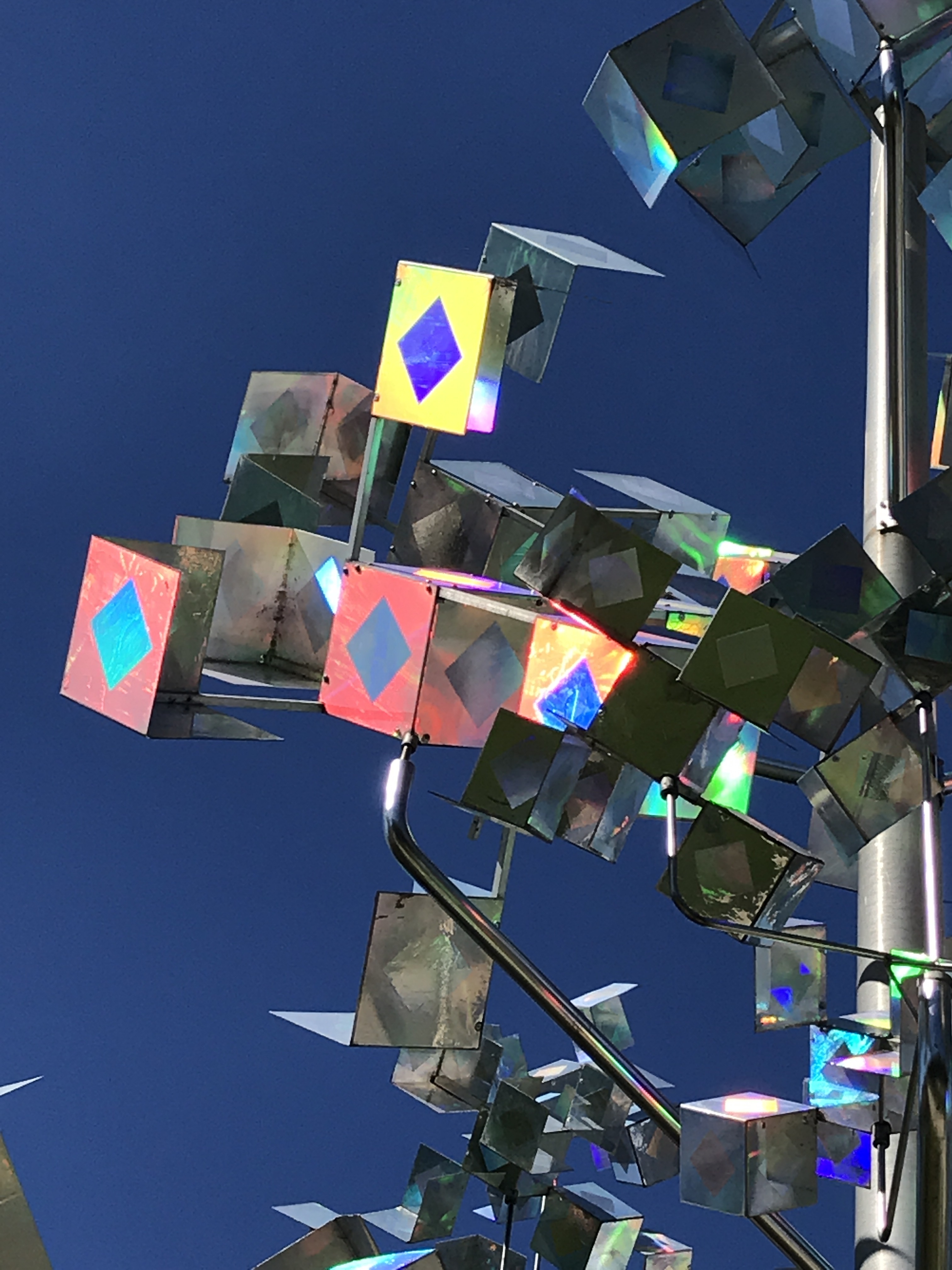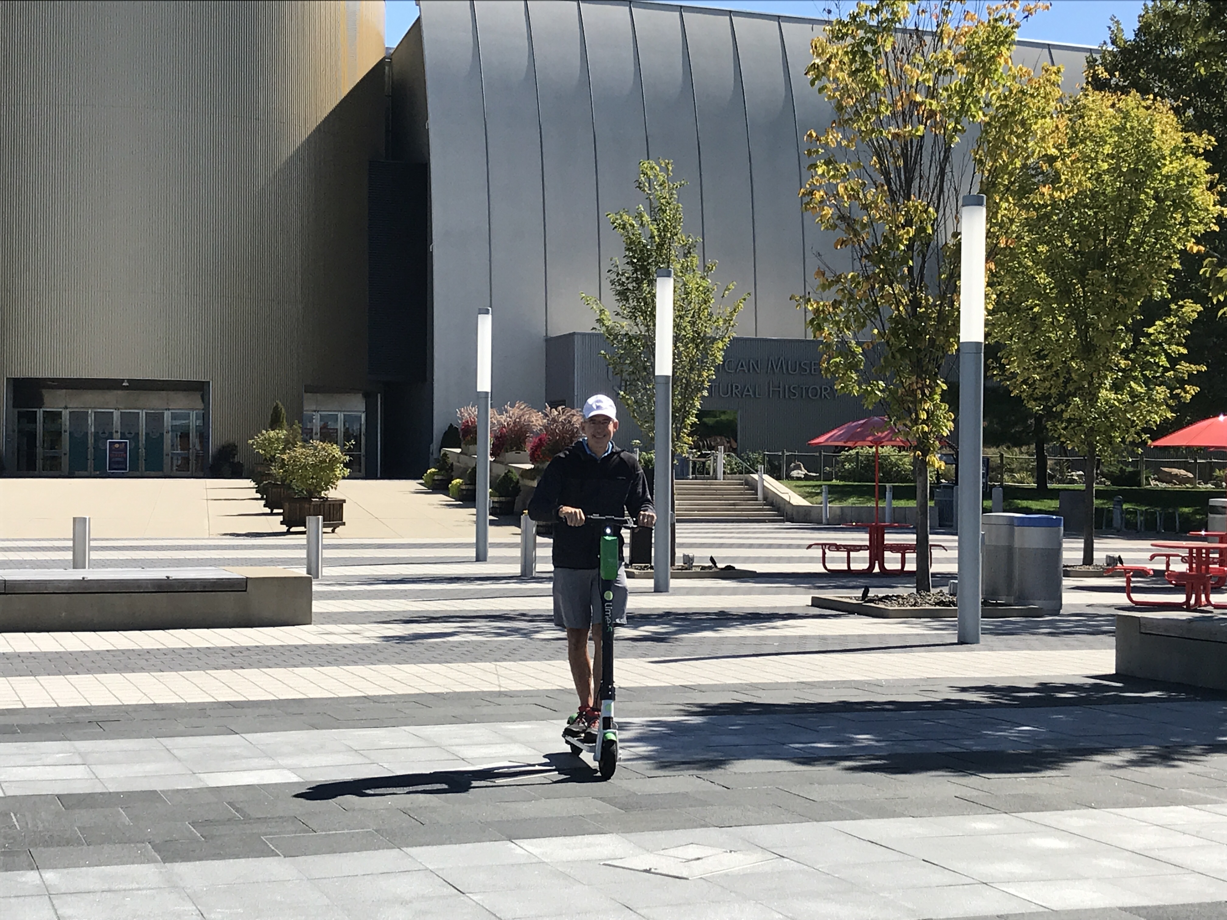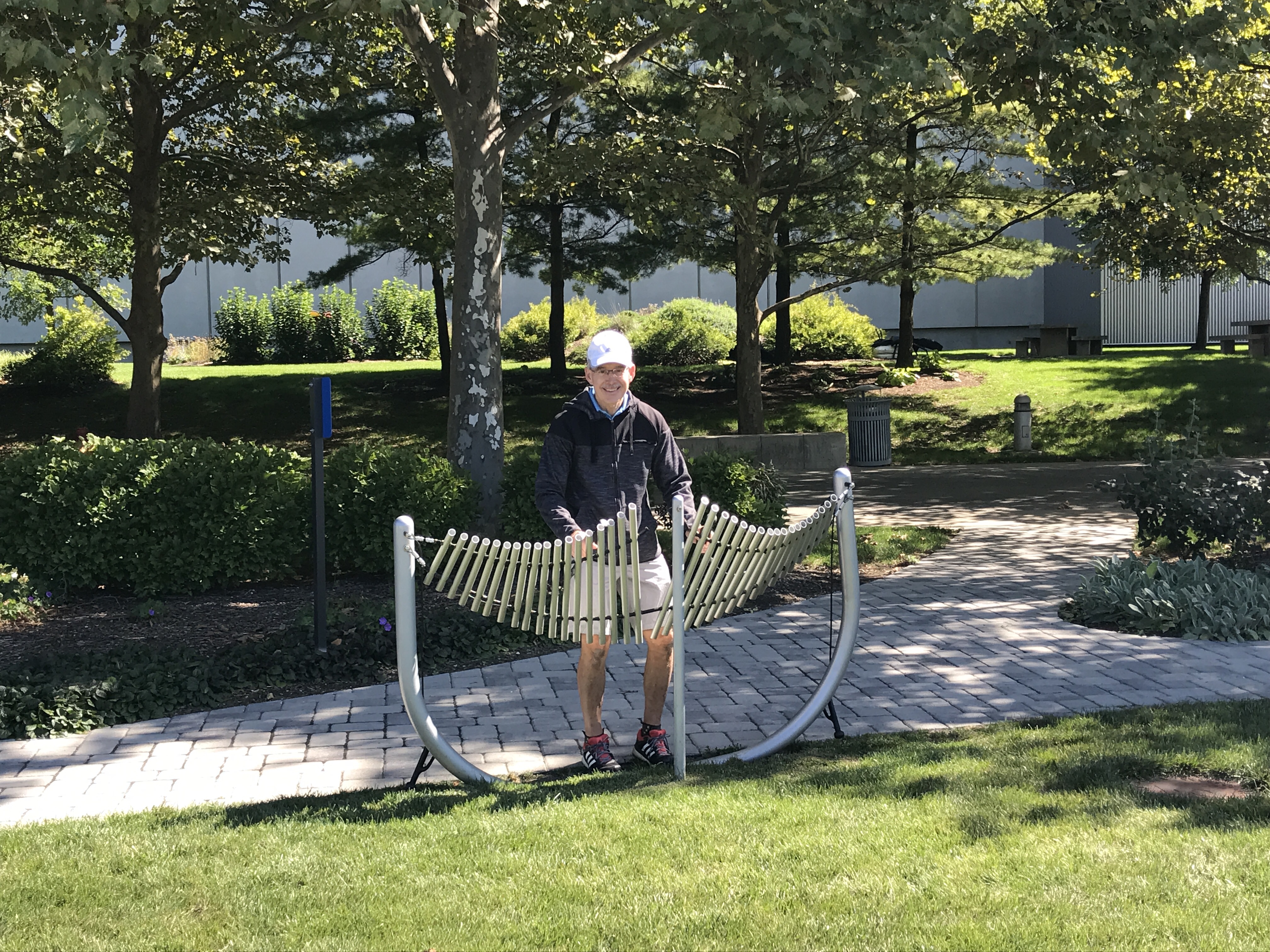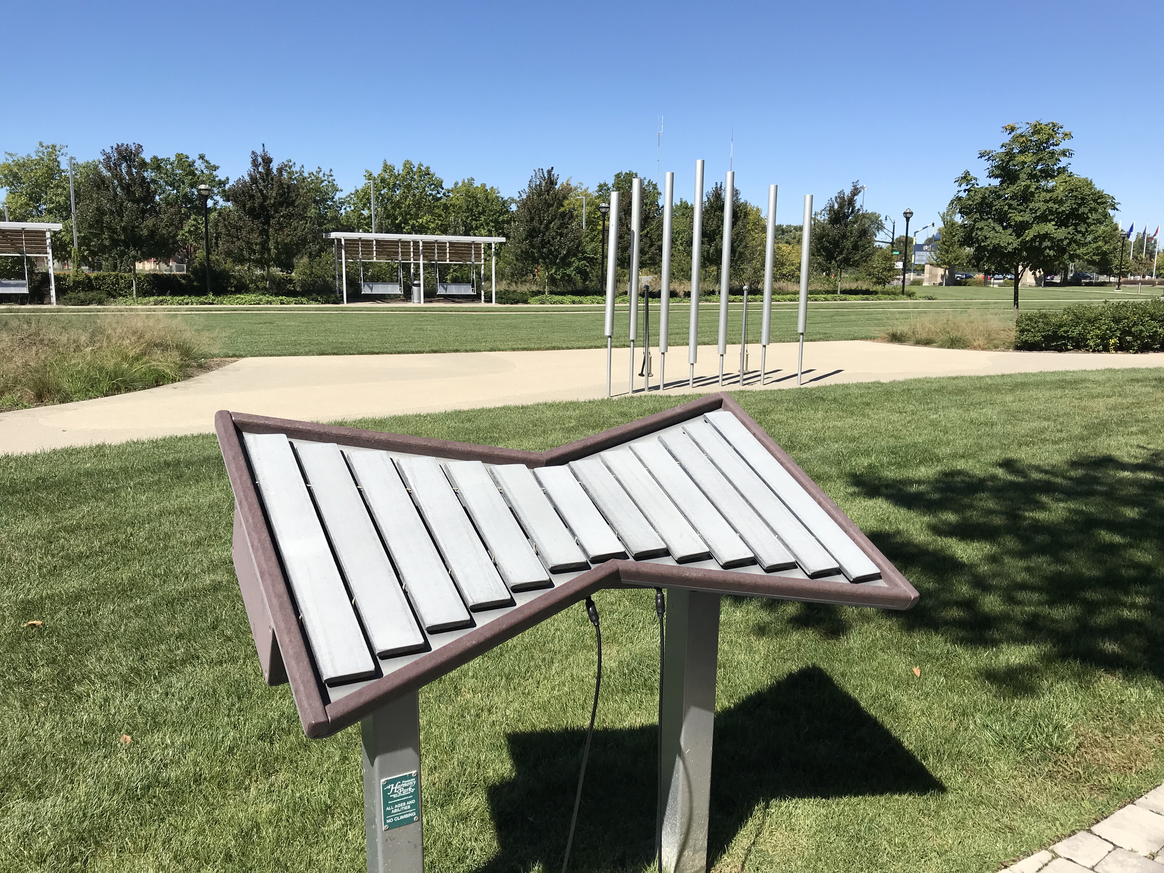 As we went along, there were Lime scooters scattered about, catching my dad’s attention. But of course, he had no interest in riding them and just thought they were strange, so we moved on. Eventually we came to the Science and Industry Center, which has a large children’s park in front. Large outdoor musical instruments lined the edge, which of course we had to play (using hand sanitizer before and after of course!). I like the big tubes you could hit with the gong the best.
