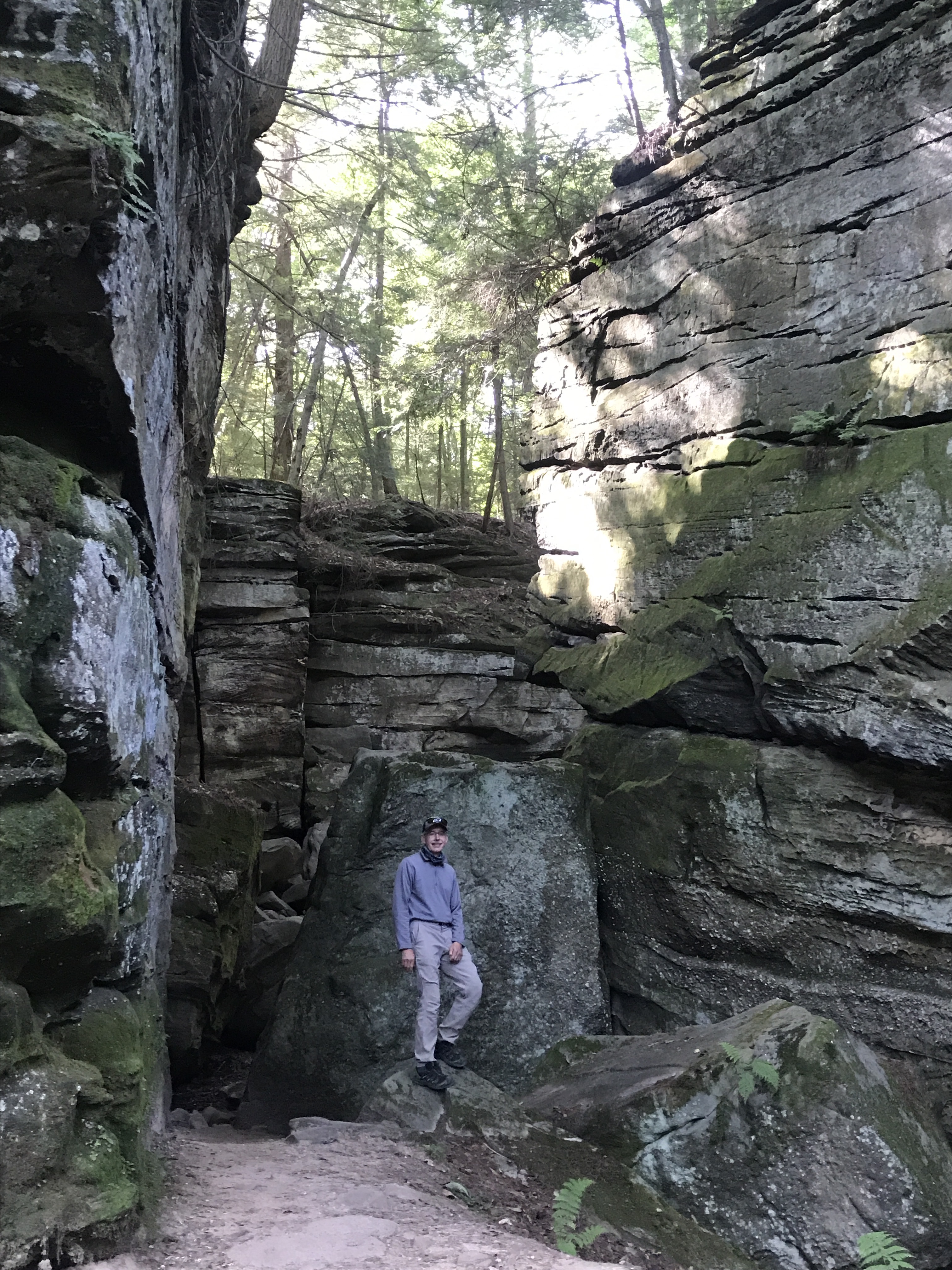 The Ledges was completely different from our morning adventure. Here we wandered above, below, and through tall rock walls. For those who live in Massachusetts, it similar to Purgatory Chasm, but on a much larger scale.