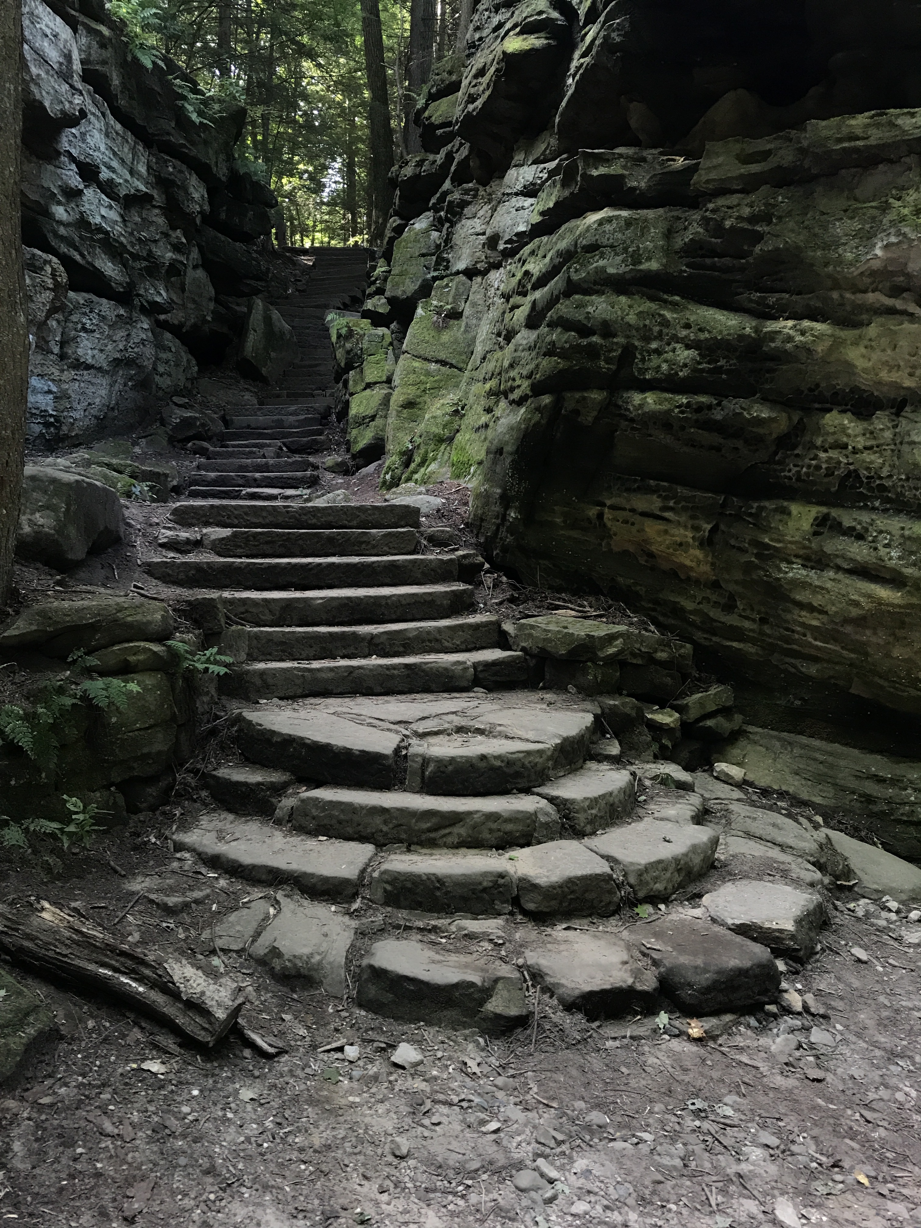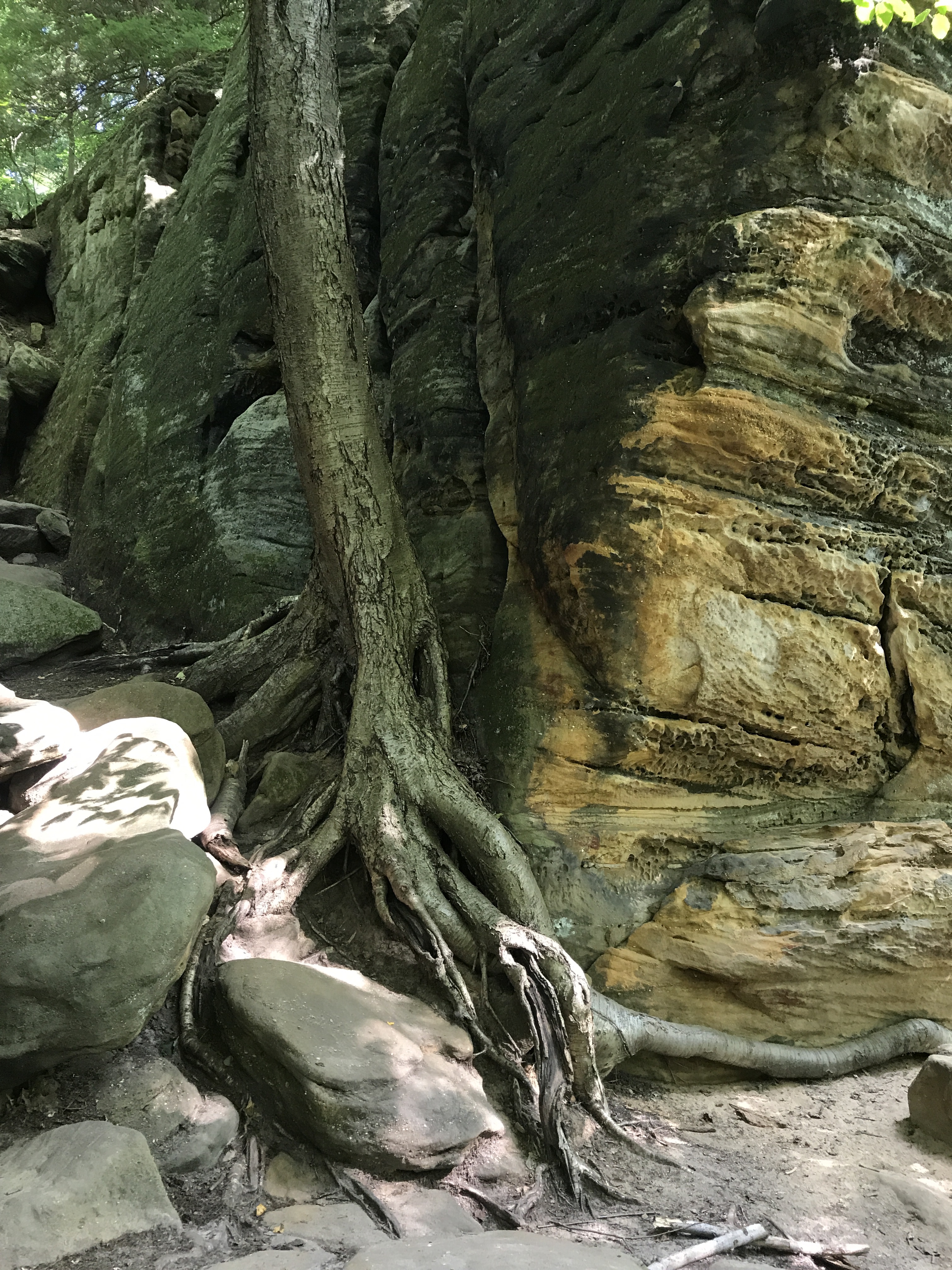 And all around the rocks are trees. Some anchored in the earth floor, sprouting straight up towards the sun, so high you have to crane your head back to see the top. Others are hanging on to the sides of the ledges, their roots trickling down the side to find any earth to hold on to. It’s a wonderland I definitely recommend exploring. CVNP doesn’t have the big sights like the mountains of Glacier or the geysers of Yellowstone, but it has its own magic to it.