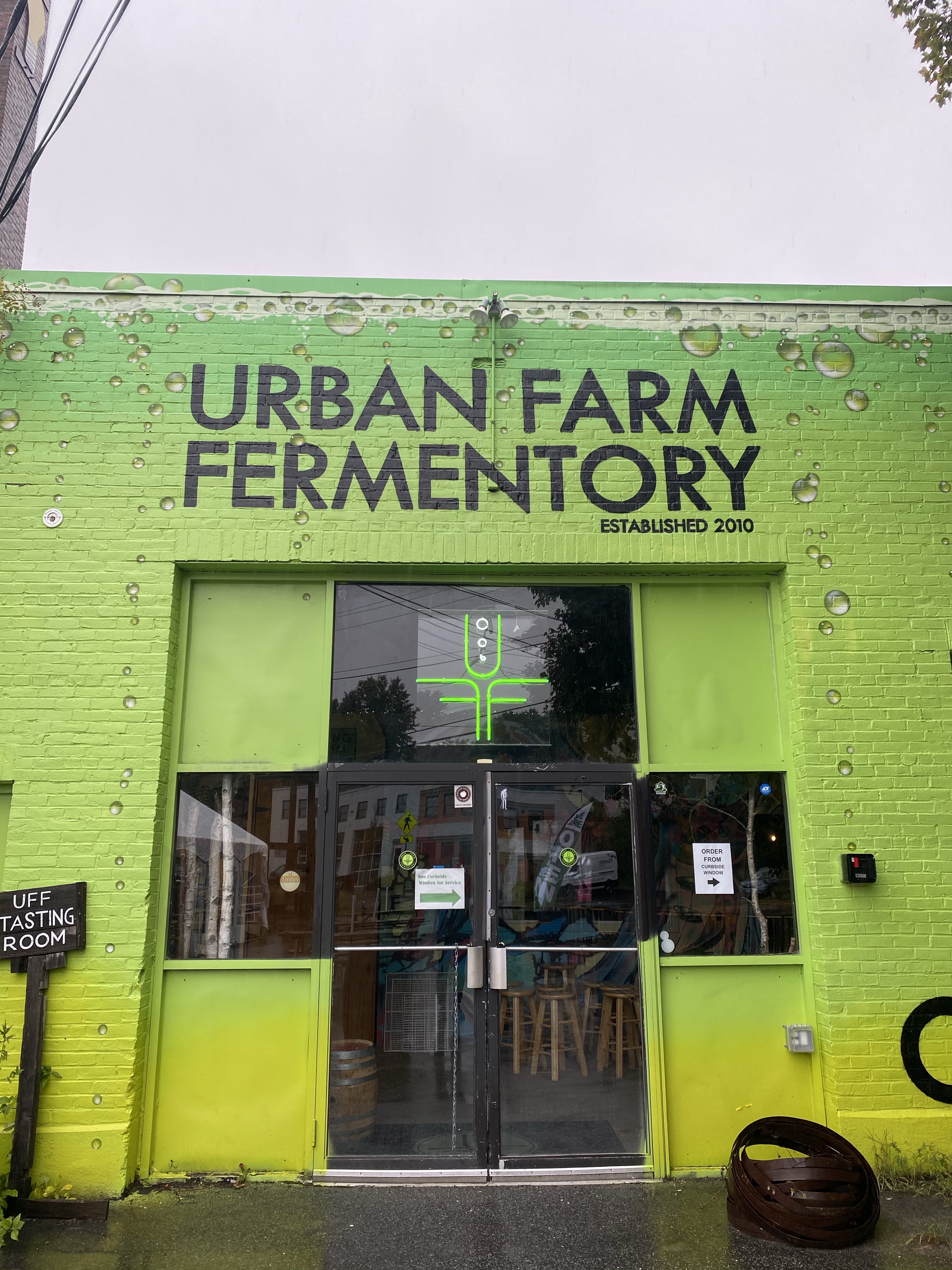 So we pressed on, in the gray, dreary weather, towards Portland for our resting place for the night. Urban Farm Fermentory is a Harvest Host location and one of my favorite cideries in Maine! They produce all kinds of beverages, including delicious kombucha and jun. Everything was sopping wet when we arrived, and bitterly cold, but we were not stuck at home, so we weren’t too sad about it! We enjoyed a drink under the tent, blueberry cider for me, and then rushed back to the van to dry off and warm up! Thank goodness for the van.