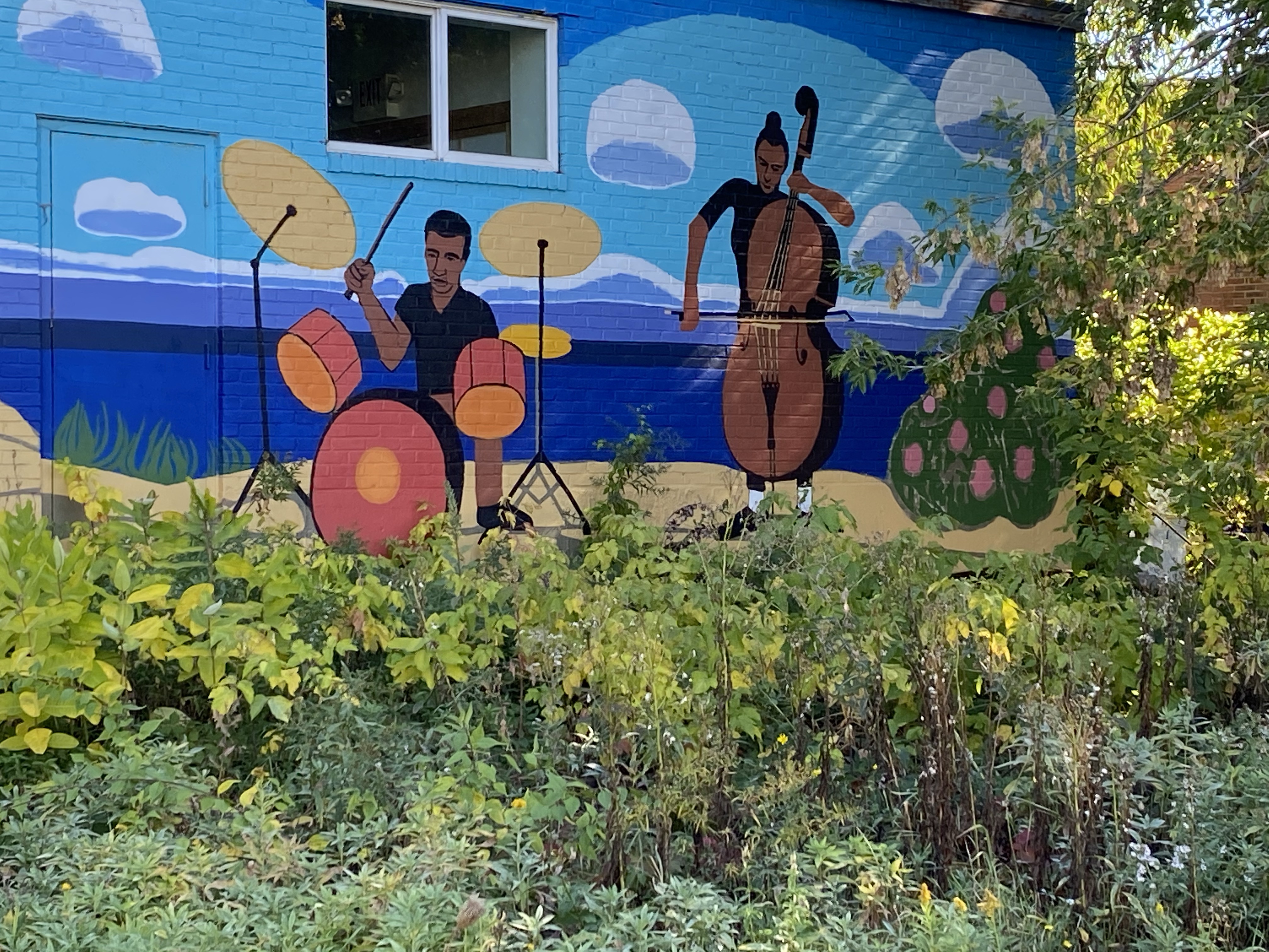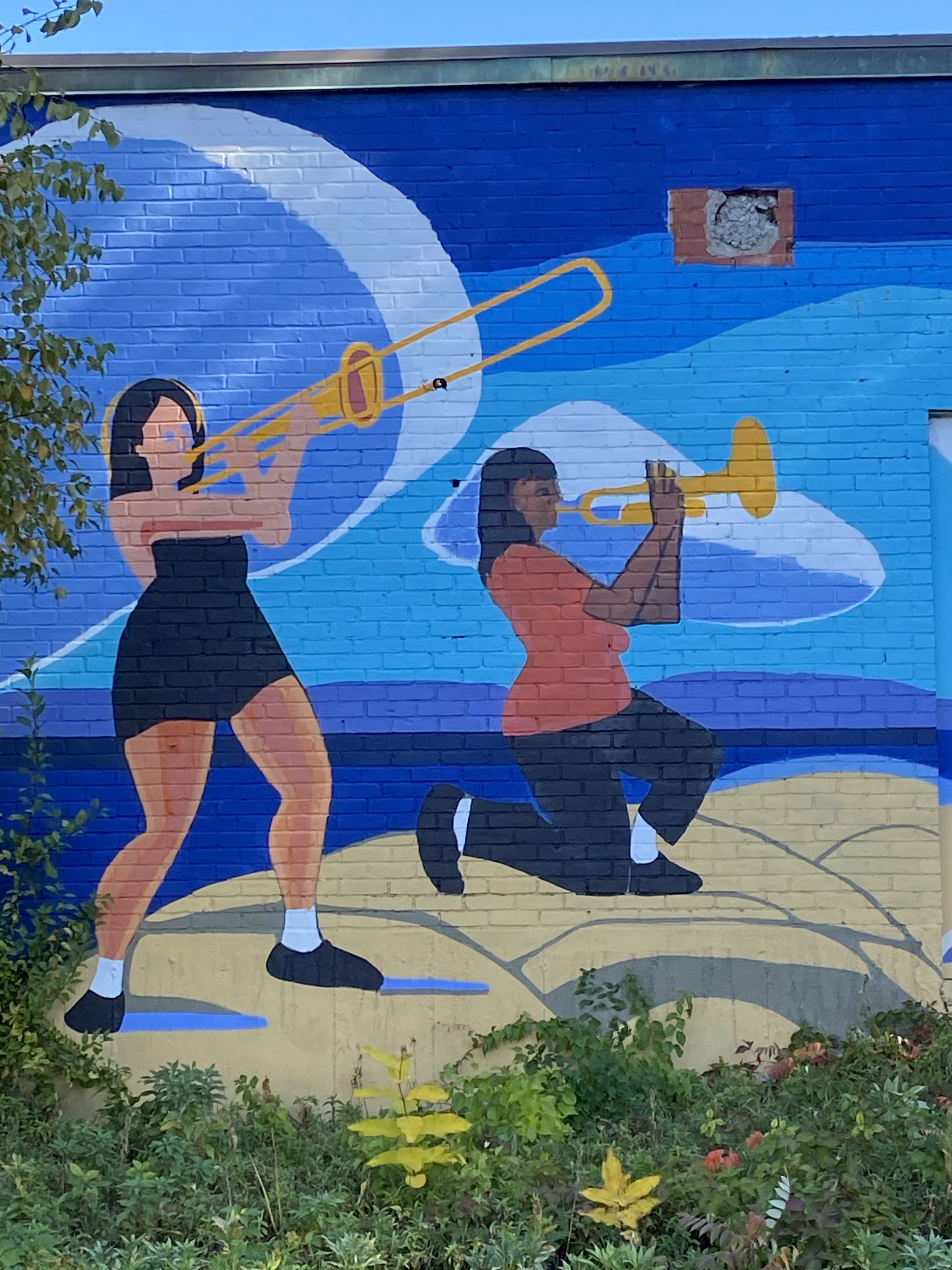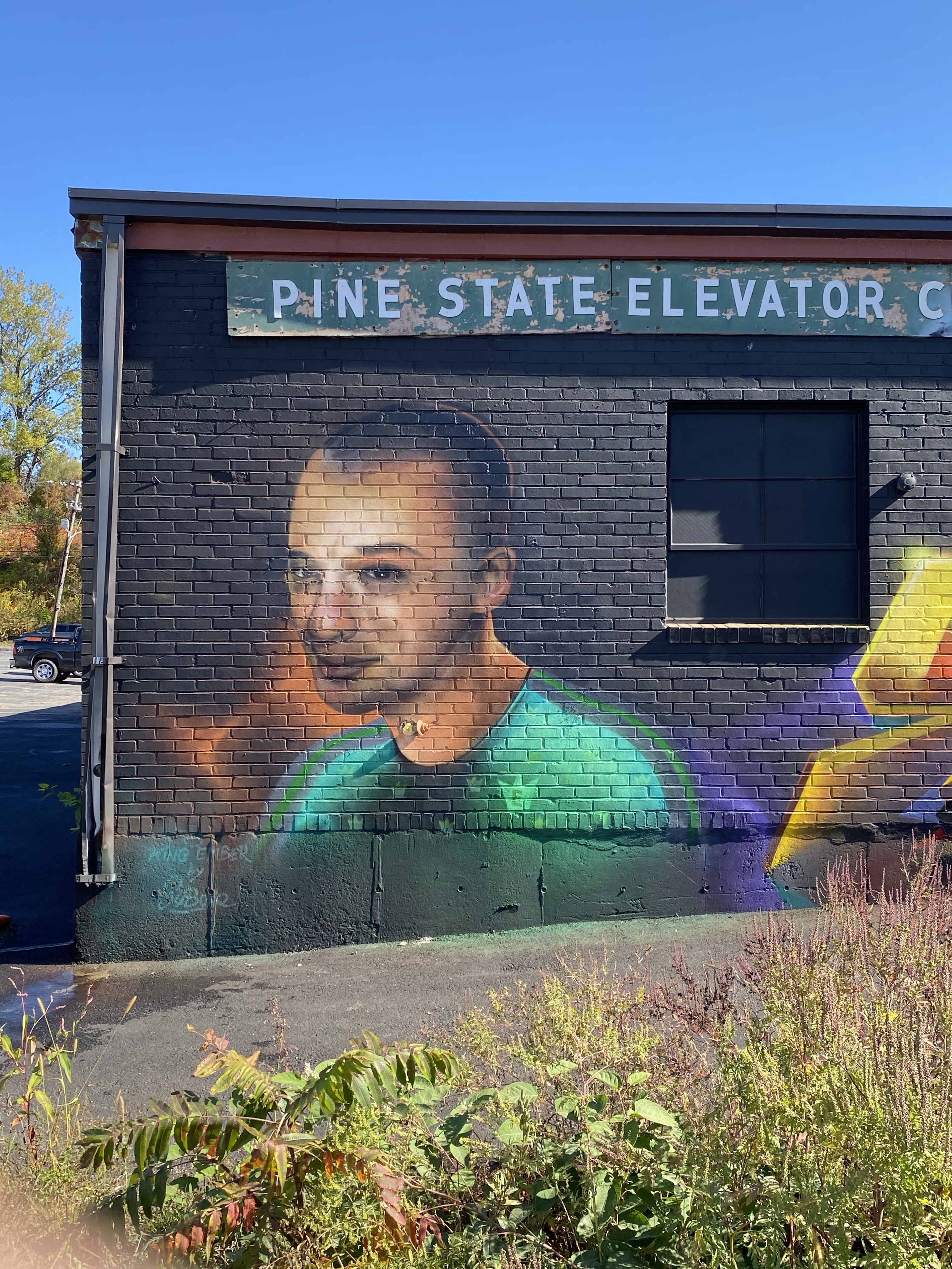 With this great start to our day – sunshine and donuts – we couldn’t wait for what else was ahead. As we approached UFF as our walk back, we came across several murals adorning buildings along the bike path. Beautiful works of art representing different styles and different artists from Portland area. Walking always leads to a different perspective. So happy we walked into these masterpieces.