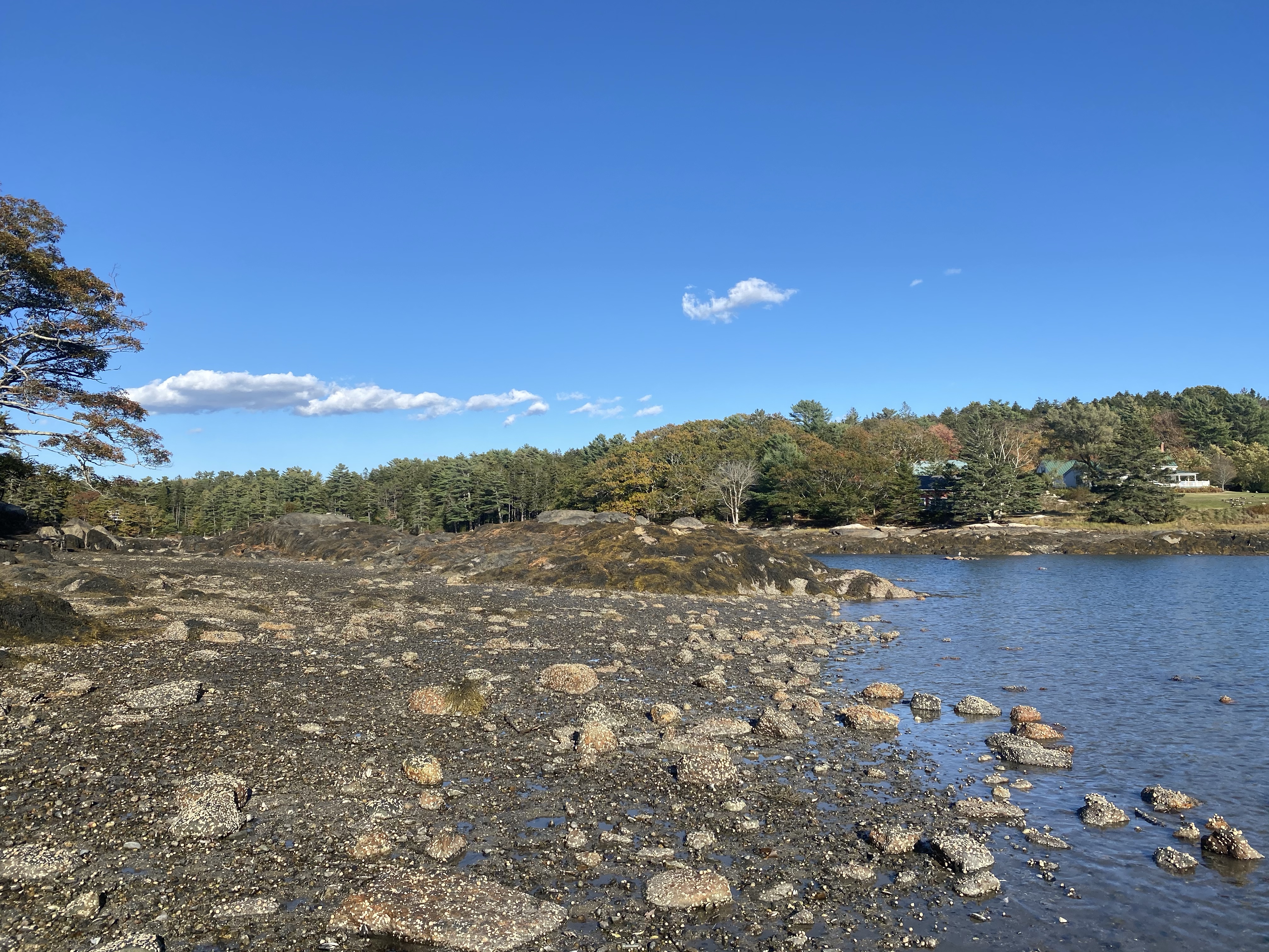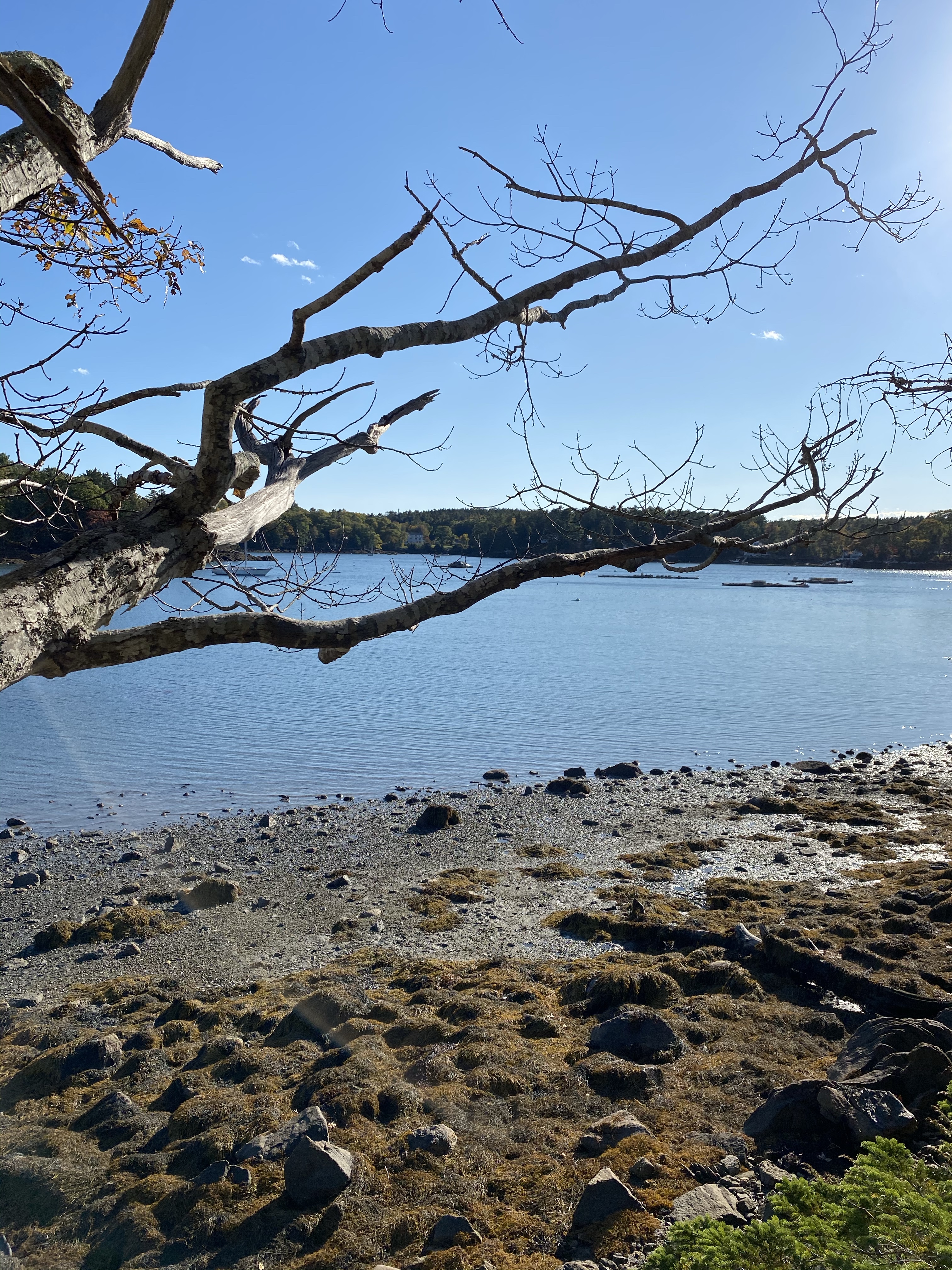 The well marked path led us through the woods to a cove filled with cold Maine water. We climbed down the embankment and across the slippery, spongy seaweed to taste the water’s temperature ourselves. Yup, cold! But so refreshing and clean.