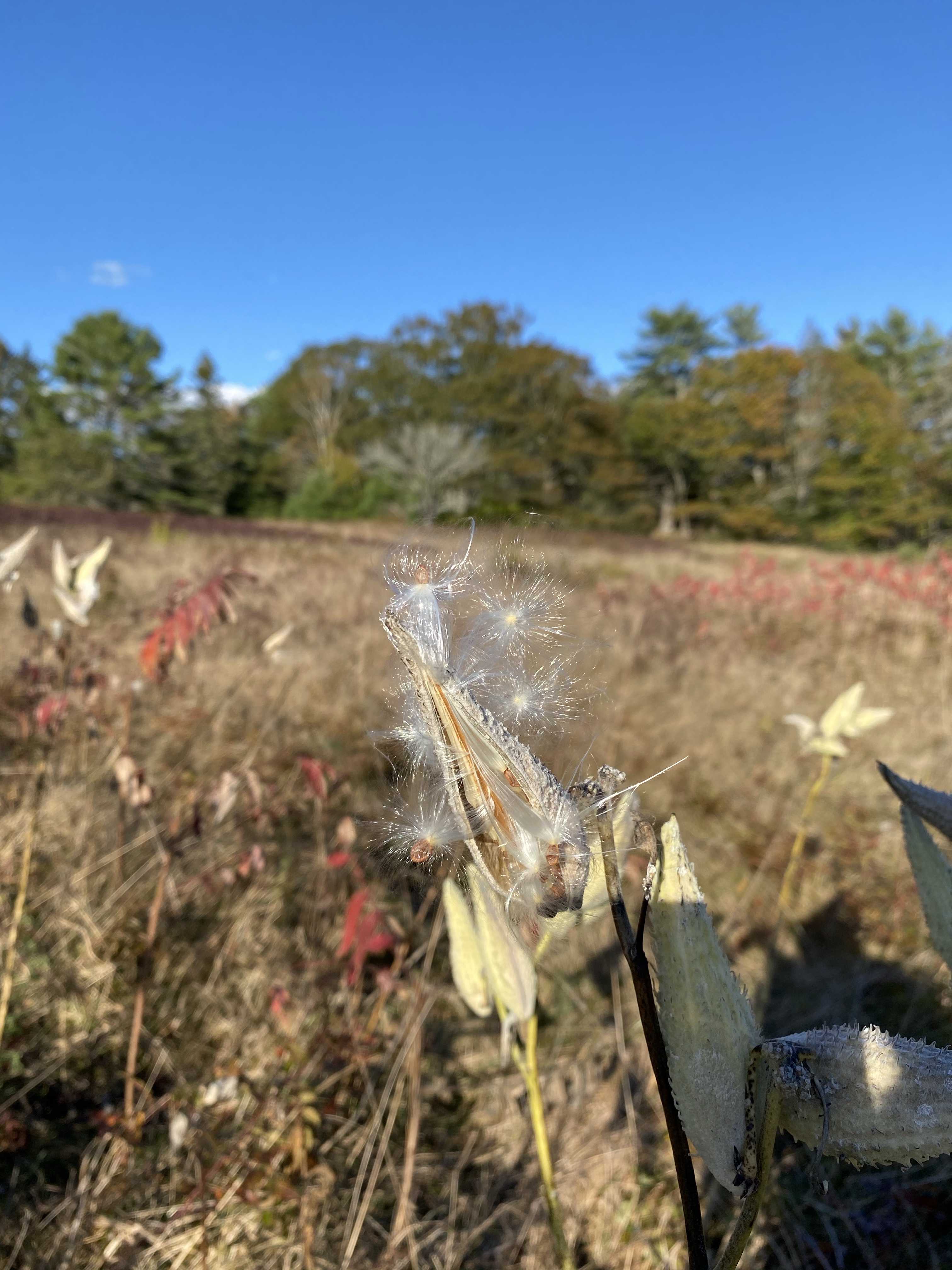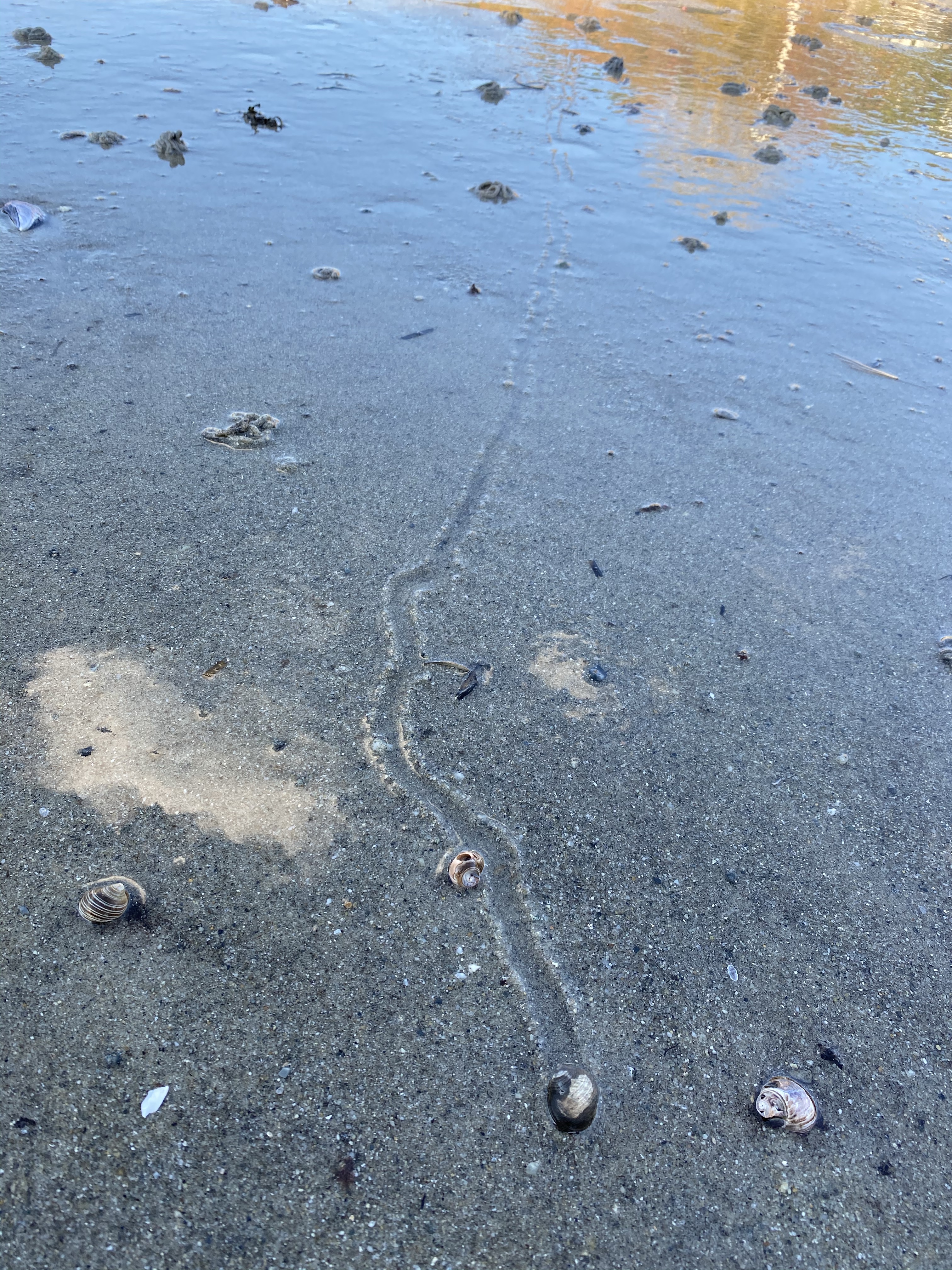 With a little time left after we finished our loop through the fields filled with milkweed pods bursting with seeds, we drove over to Hendrick’s Head Lighthouse. The tide was still out, so we were able to climb over more noodle like seaweed and up onto the rocks to see the lighthouse out on the point. The setting sun cast a golden glow along the water, a magical scene. After our climb down, we studied the sand on our walk back, searching for sea glass and sparkling rocks. We spotted snail trails and air bubbles were other creatures had dug themselves below the surface. Everything felt peaceful.