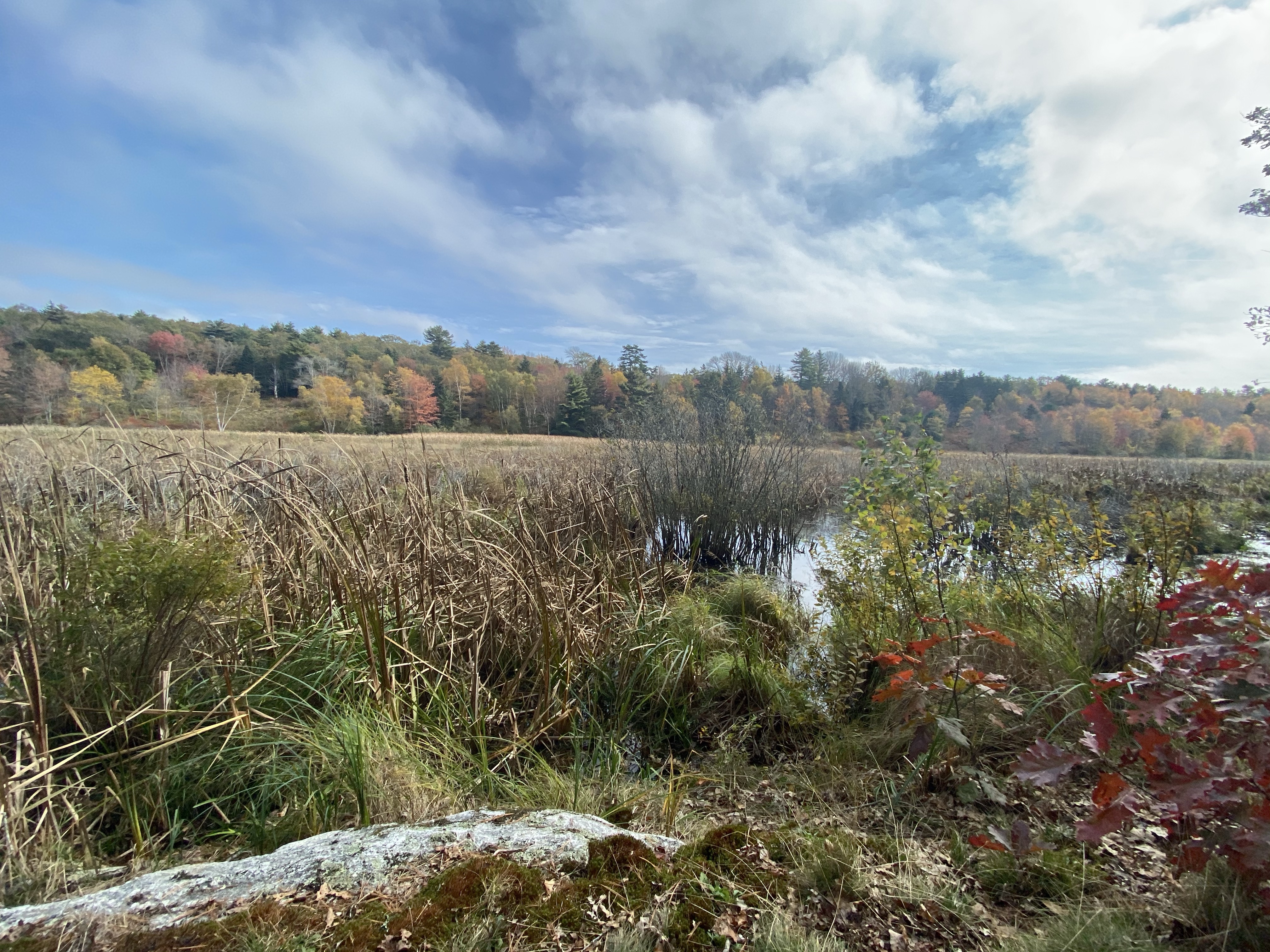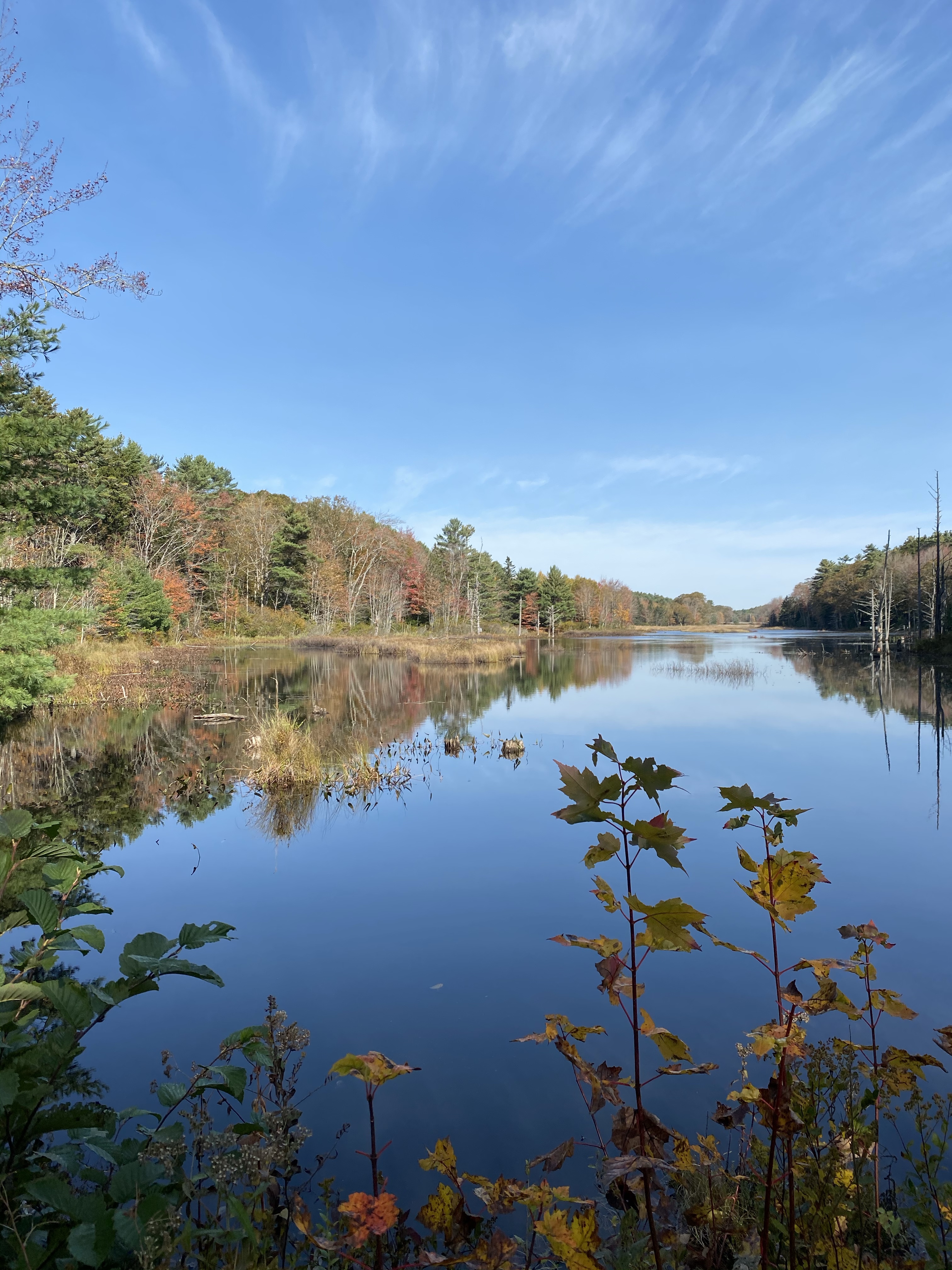 The next day, knowing we had a full day of sunshine once again but that more rain was coming, we were motivated to spend as much time outside as possible. We drove to the Lobster Cove Meadow Trailhead and headed out on our hike. Despite it being mid-October, the colors were still popping in the trees. The forest trail brought us out to the water and we found a hidden bench to sit on as we admired the view. A few frogs poking their heads above the surface kept us company as we soaked up the sunshine.