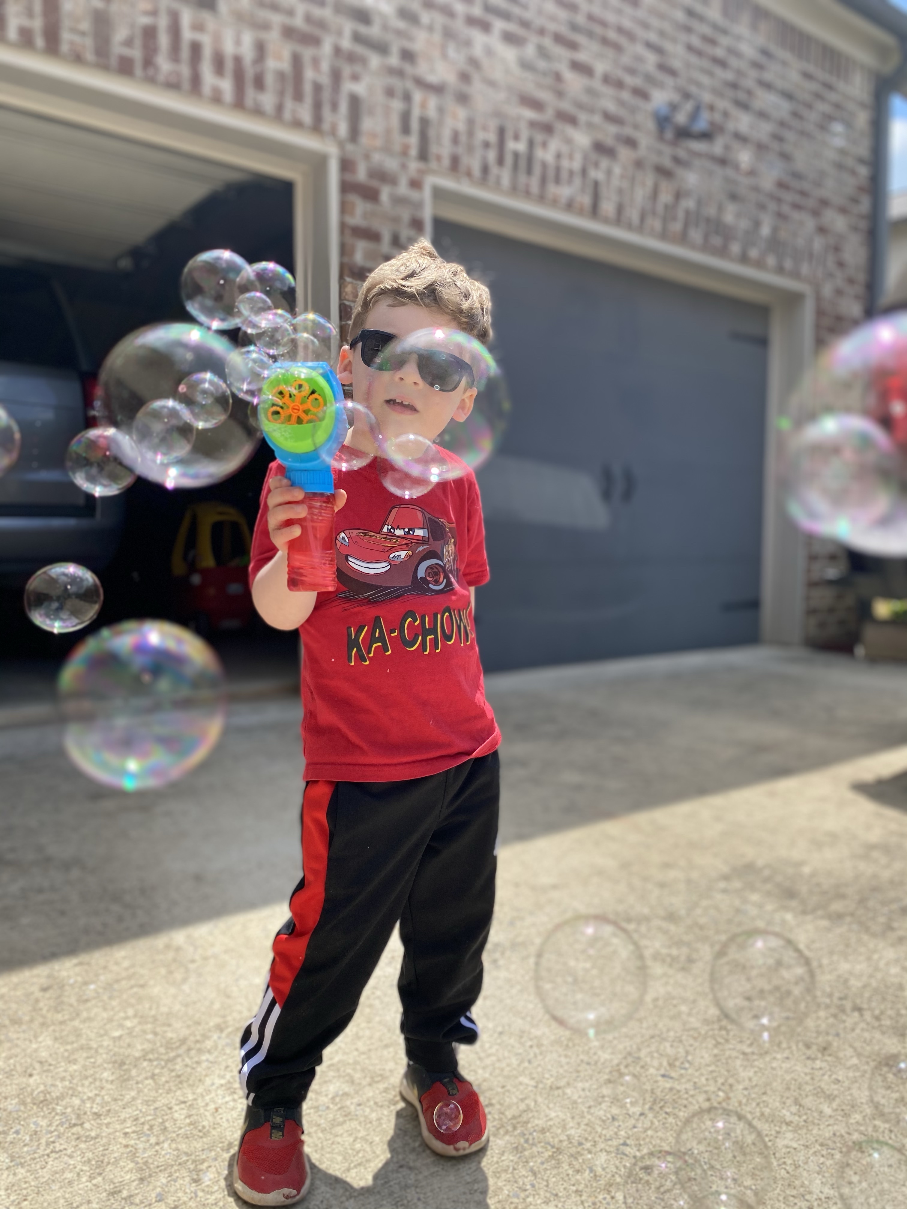 While he was shy at first, as most almost three year olds are, a few spins around the kitchen and tickles later we were best friends. He quickly took me by the hand and introduced me to all his toy cars and trucks.
