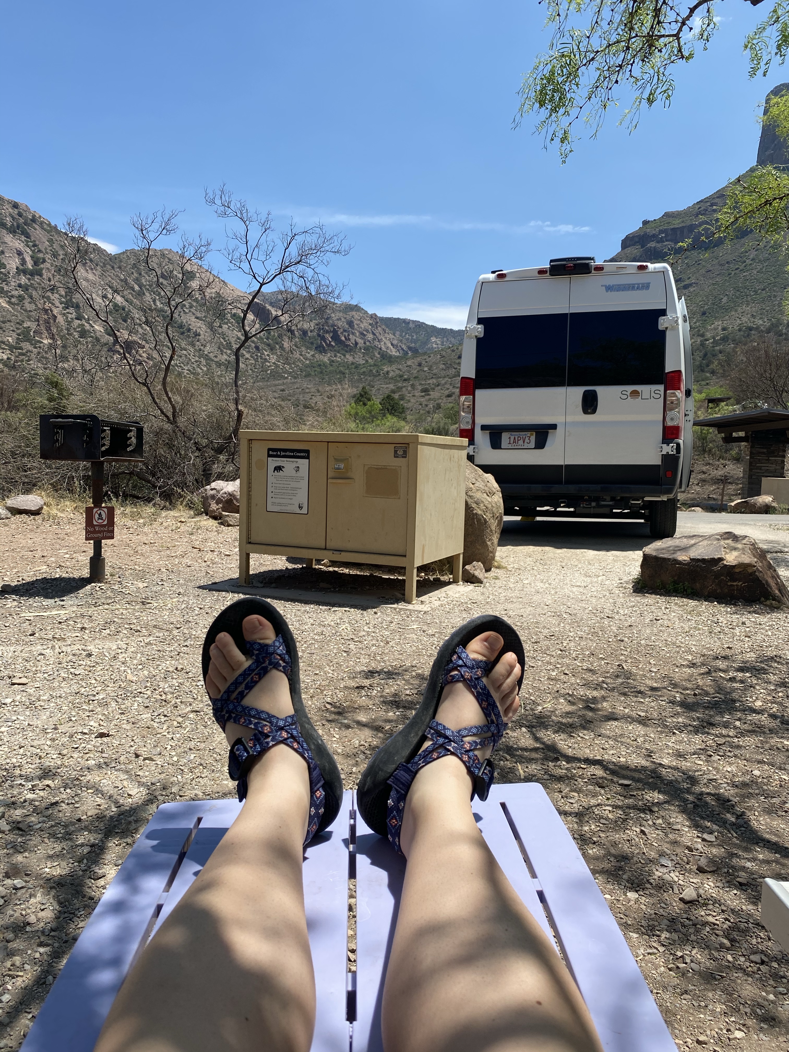 The following day I had planned a lazy morning before checking out of my campsite, but it never dropped below 80 the night before and I was eager to leave. So I packed up early and drove back to Chisos Basin. I had a campsite reserved there for the night, but couldn’t check in until 1:00PM. It didn’t matter though, it was in the 60s when I arrived with a gentle breeze. I pulled into a parking spot, zipped up my window shades, and laid down to get the rest I had missed the night before. Ahhh, much better!