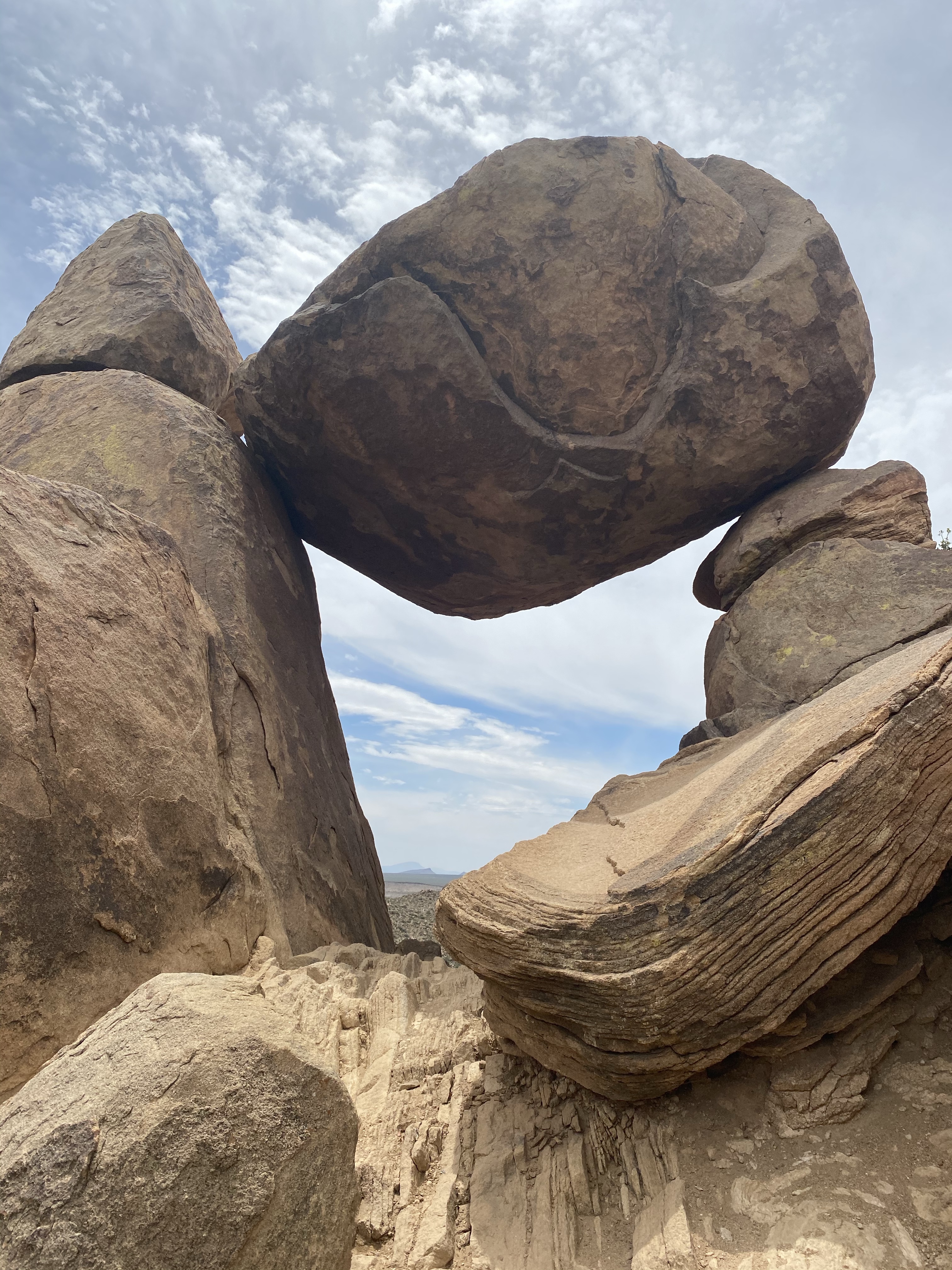 There, at the end of the trail, is a massive rock balanced between two other vertical rocks, creating a window framing the mountains beyond. I climbed up and sat on the side for a while, admiring the view, then hopped down and took my turn under the canopy. A beautiful scene that was hard to pull away from.