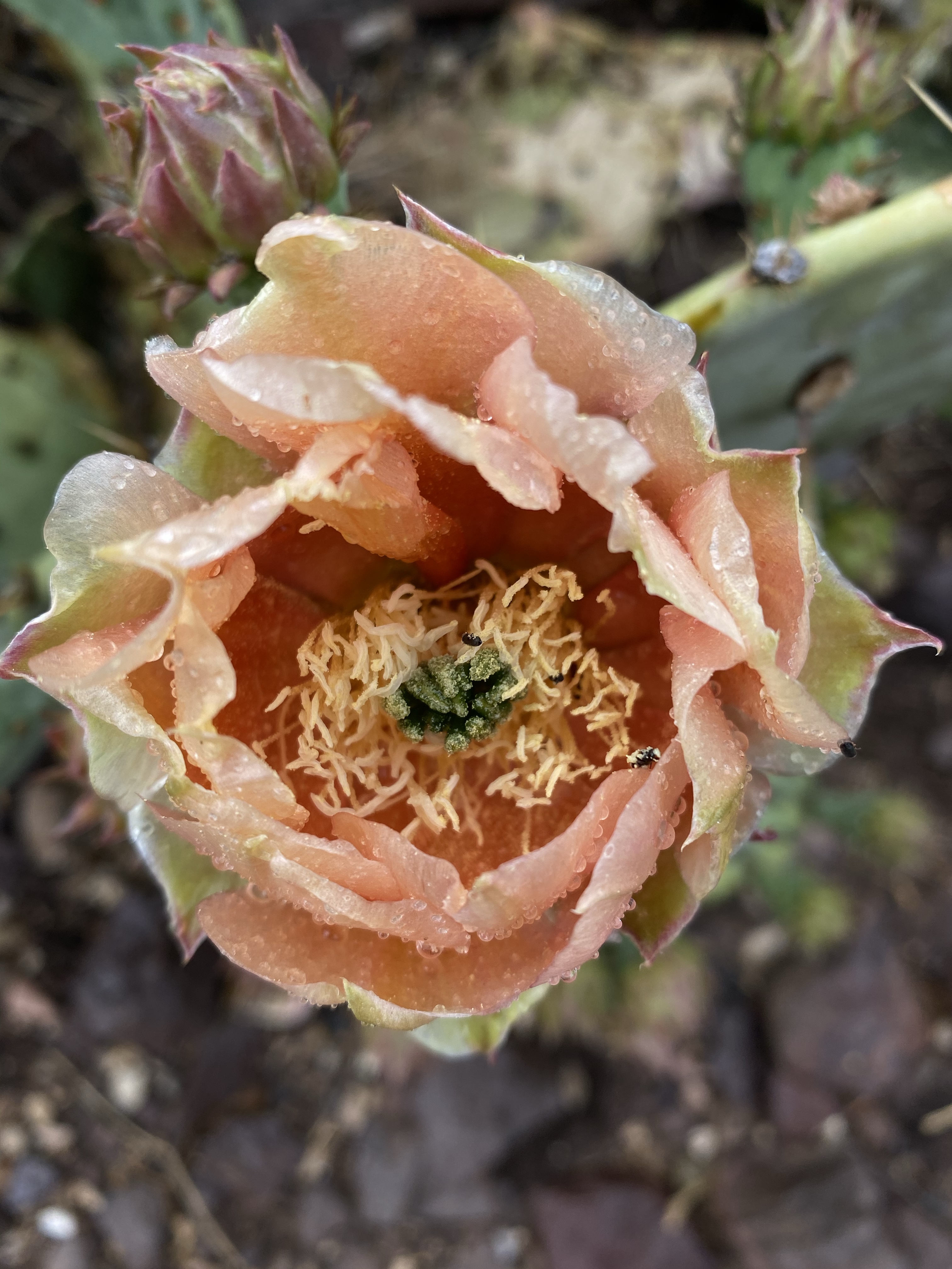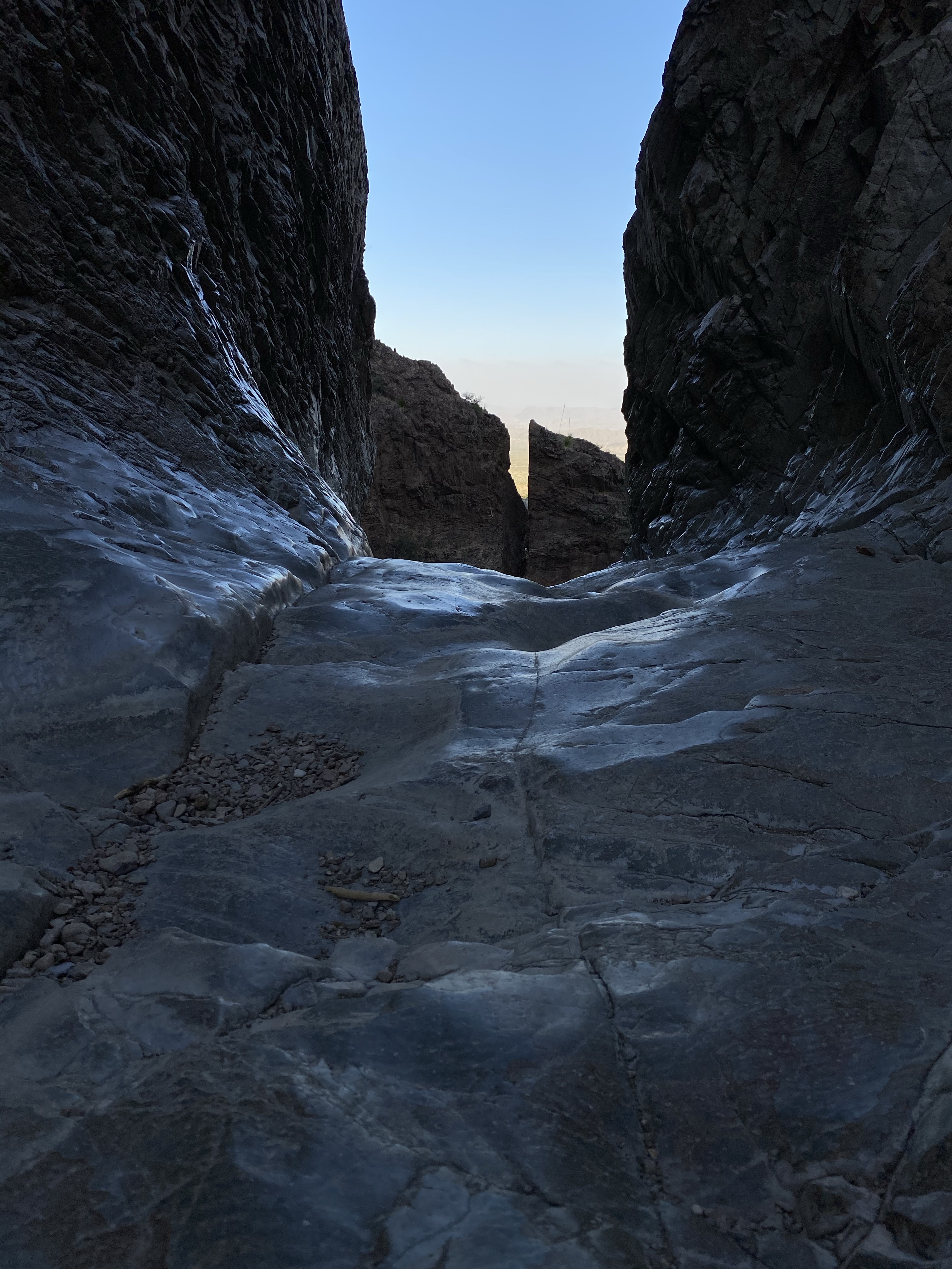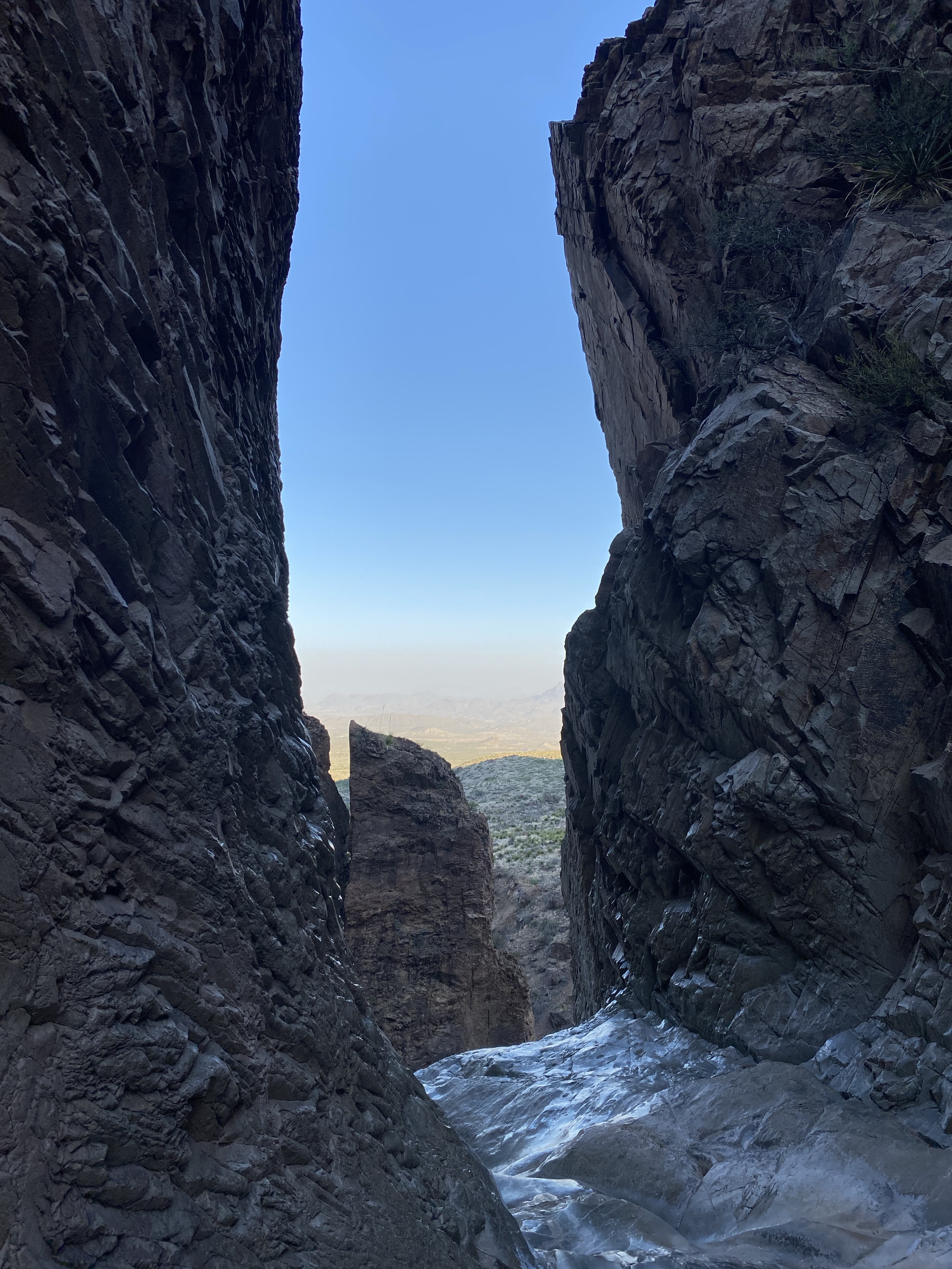 The trail ended at the “window”, a narrow canyon framing the land beyond. While dry now, you can see evidence of past gushing water as the stone bottom is dimpled, smooth, and shiny. I walked close to the edge, but stayed a good distance away because the drop off is vertical! Straight down to the valley below. It must be very beautiful to see the pour off when water is gushing down during the rainy season. Perhaps I’ll experience that another time!