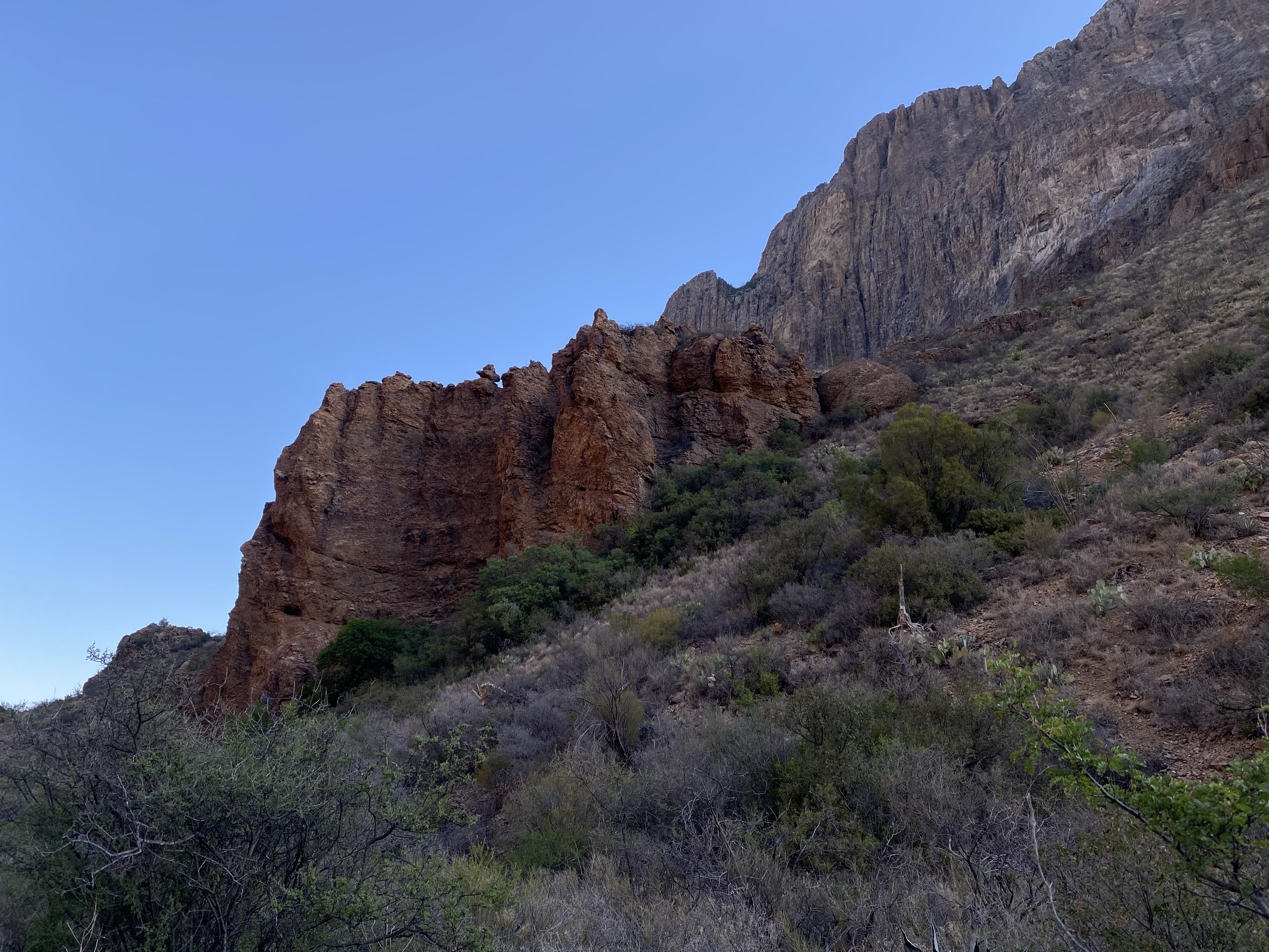 Different from the rest of Big Bend, the trail here traverses back and forth through Juniper pines, offering shade and protection from the sun. Each switchback offers a more spectacular view of the mountains and canyons beyond Lost Peak and Big Bend. I couldn’t help but stop and take pictures often, which made me wonder if I’d ever see the top.