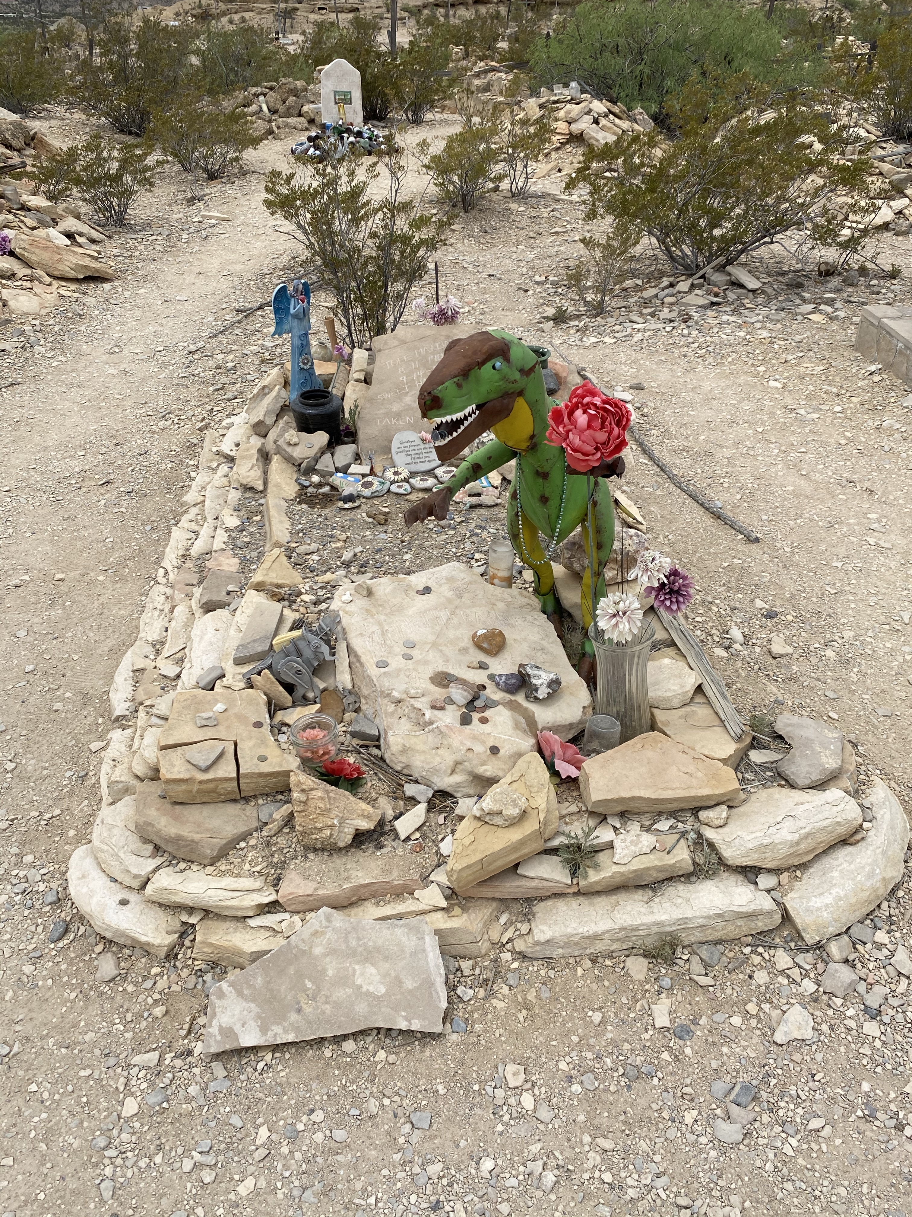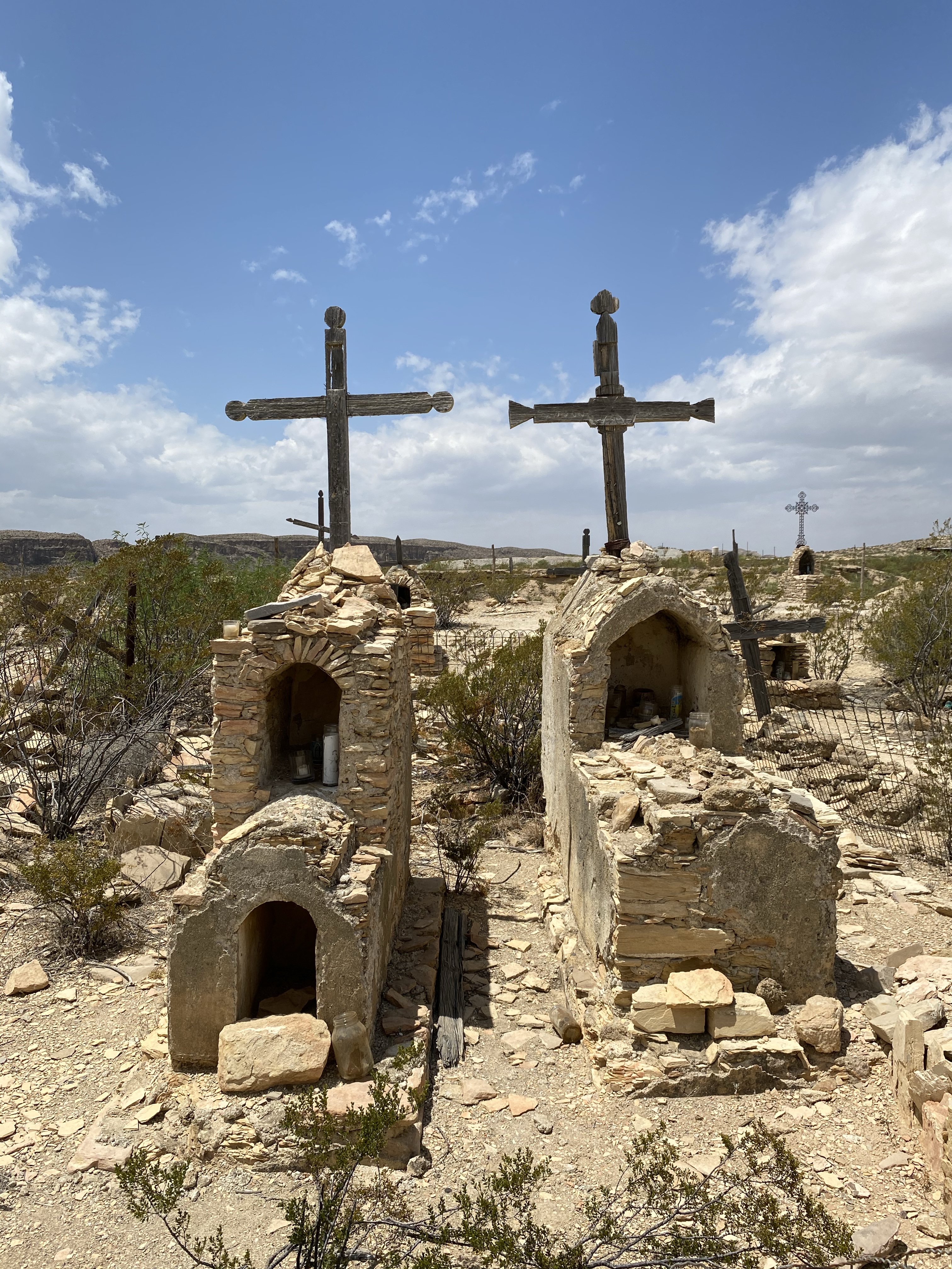 After leaving Big Bend, I headed toward Guadalupe Mountains and Carlsbad Caverns. On my way over, I stopped in Terlingua, a small ghost town outside of Big Bend. While there wasn’t much activity, there was a historic cemetery with ornate tombstones and alters. The cemetery was established when the area was booming due to mining. A Mexican-American found cinnabar, a mineral that creates mercury, here in 1902. It was in high demand during WWI. He became the first Hispanic person to make a mining claim and established a strong future for himself, his family, and the community. The cemetery continues to be the resting place of residents as they pass away. The Day of the Dead is celebrated here, when community members and relatives come to honor their ancestors. Graves exist from 1913 to 2021. I wandered around admiring the love that was displayed at each gravesite. I left a donation for the upkeep of the historic site and continued on down the road.