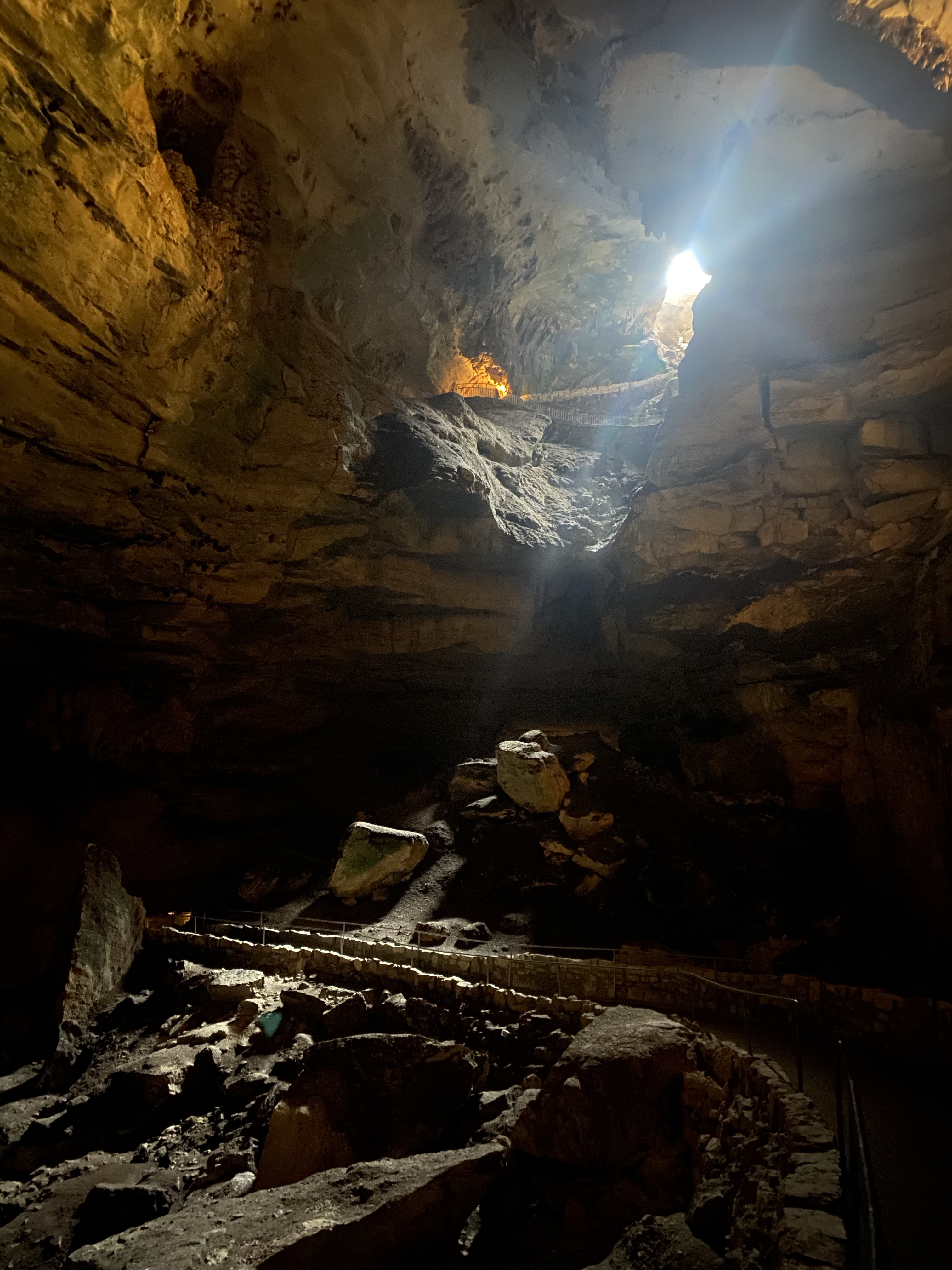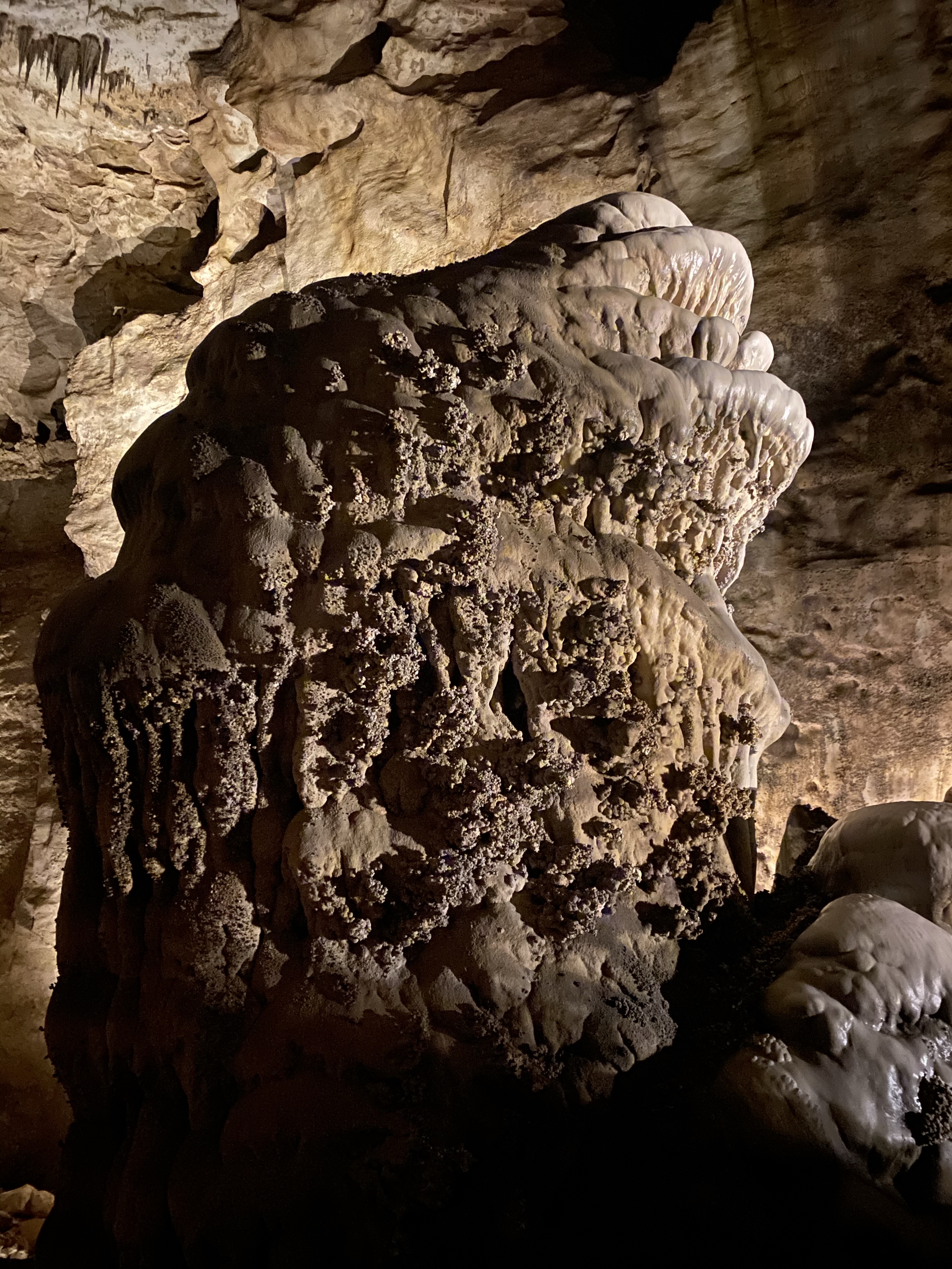 The switchbacks lead you down, down, down into the darkness where the magic awaits. With each step you descend farther from the surface until you are 750 feet below ground. While no natural light shines down here, carefully placed lamps light the sloping and damp floor. No light doesn’t mean no life though. Besides bats and swallows, ringtail cats, moths, and millipedes take shelter down here. And cave crickets, spiders, and beetles reside here permanently. Even cooler, scientists are discovering nano organisms that live in the deepest darkest parts of the cave that might help us understand life on other plants and be cures for cancer. Mother Nature is amazing!
