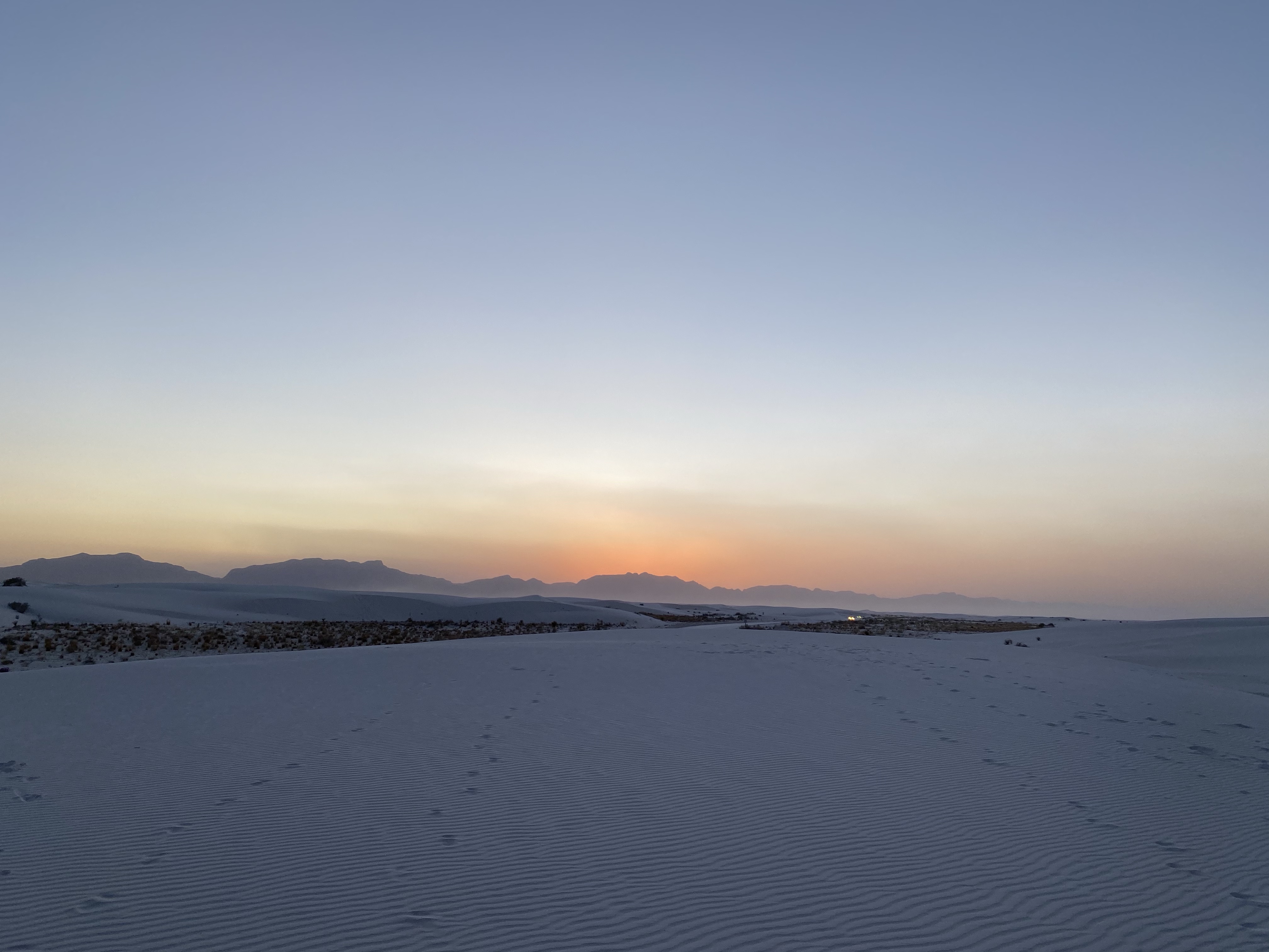 Then we sped off for White Sands, the most magical place in the middle of the desert. Out of nowhere, after miles of brown, dry ground with dusty shrubs, white dunes appear as if dropped from the heavens. We drove into the park, down the winding road, with the blazing sun sinking towards to the tops of the white hills. Life doesn’t get much better than that.