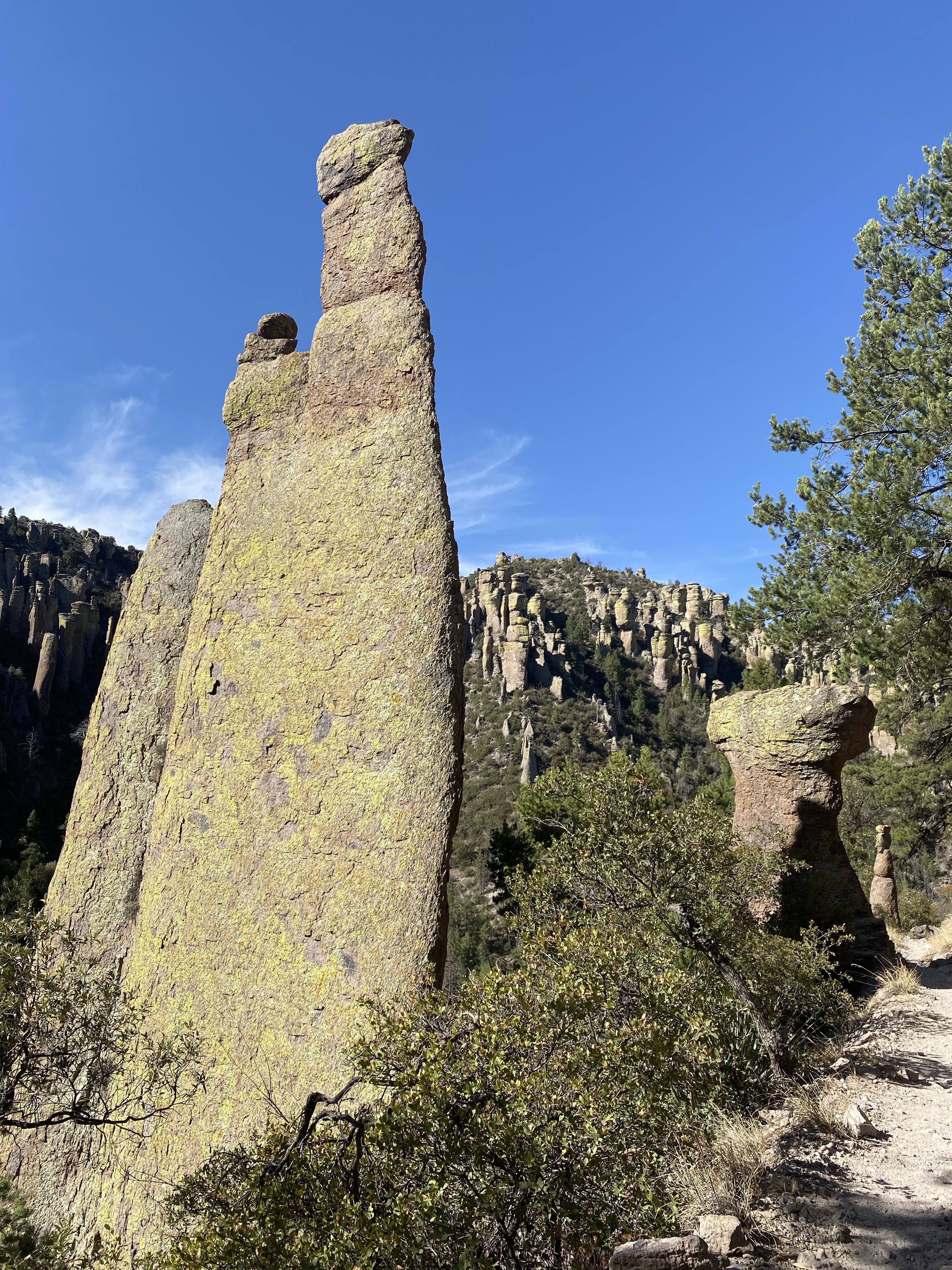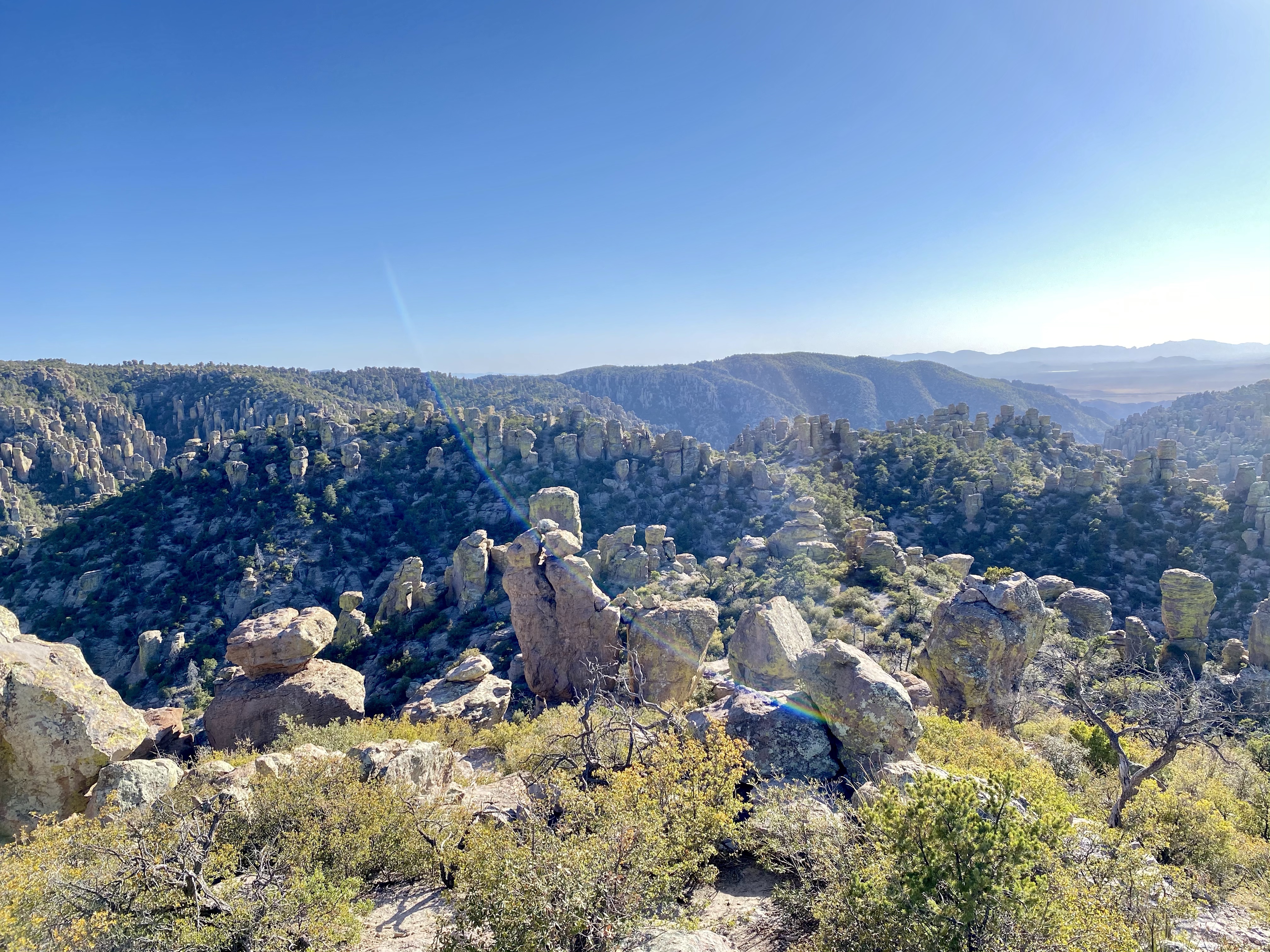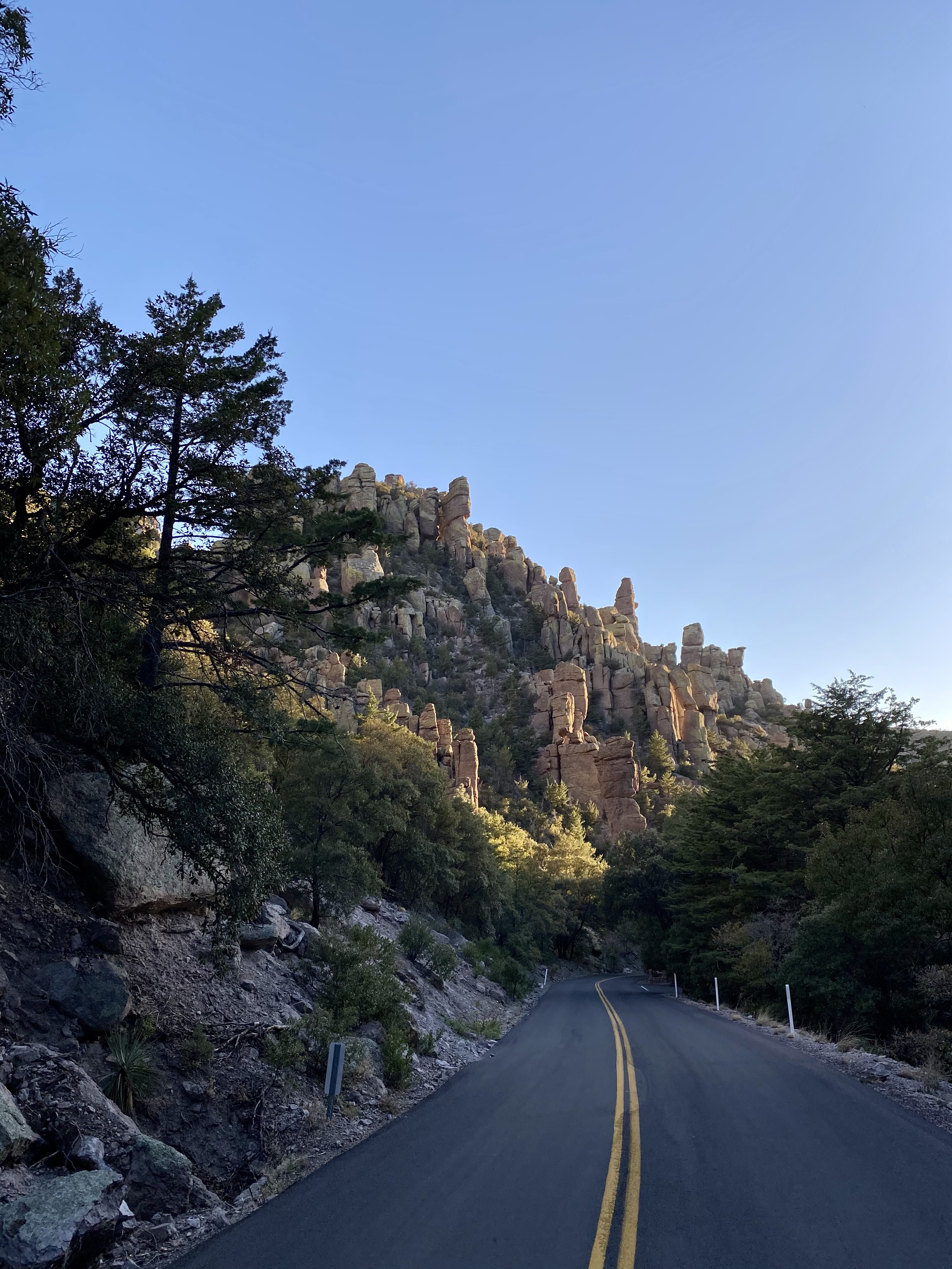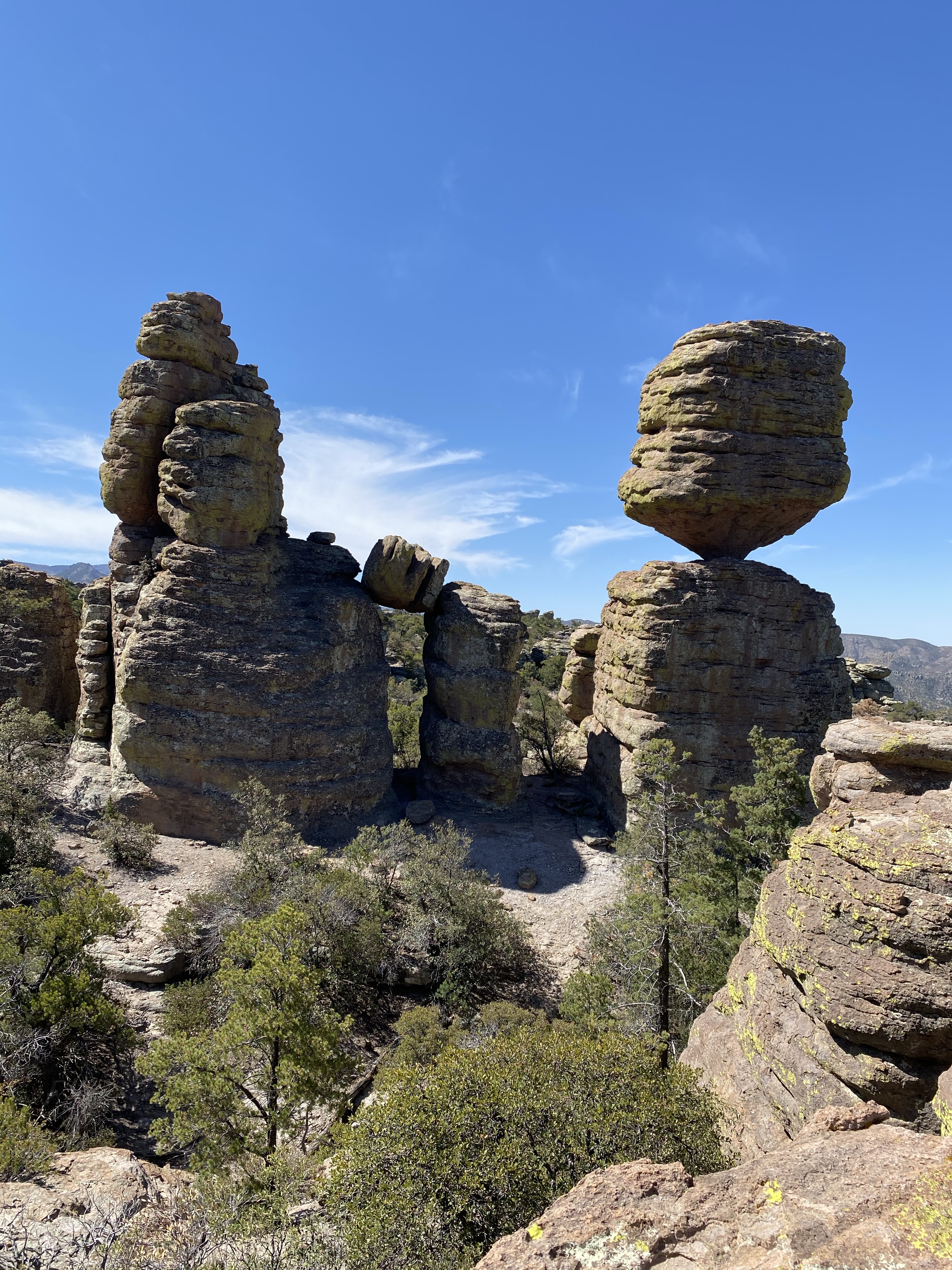 On my way to Saguaro, I made a pit stop at Chiricahua National Monument and I’m sure glad that I did. A little out of the way, the remote protected land is a gem in southern Arizona. A long drive through barren desert, passing by endless trains traveling straight across the horizon was rewarded with a mountain oasis rock garden.