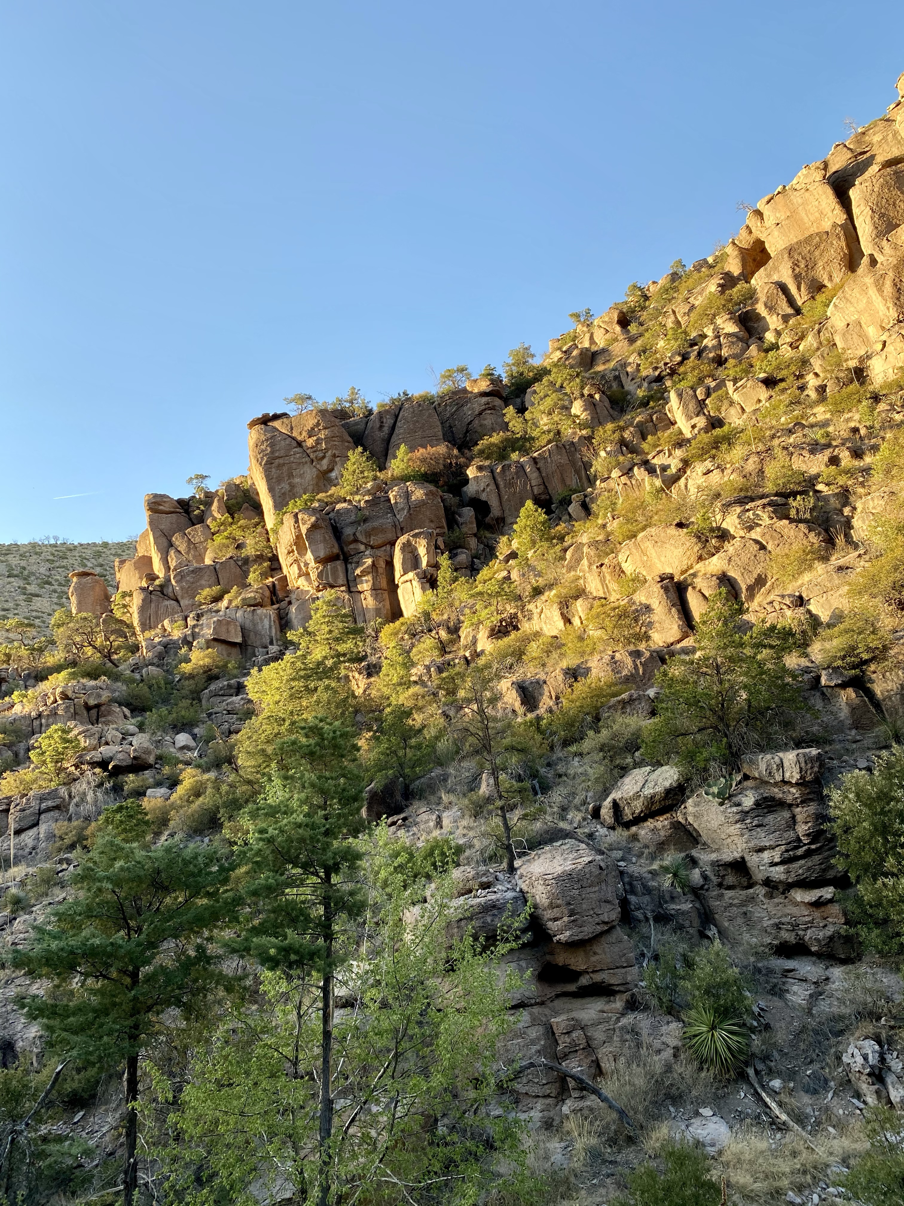 At the end of the scenic drive is the Maasai Point, which introduces you to the playground around you. Mountains are covered with burnt red rocks, jumbled together like a bunch of left behind lego pieces. They are mixed between pops of green from the pygmy forest – Alligator juniper, Arizona cypress, and Mexican pinyon. These hardy trees may be short but they are resilient, finding the tiniest bit of soil to latch onto and surviving on the slightest bit of rain.