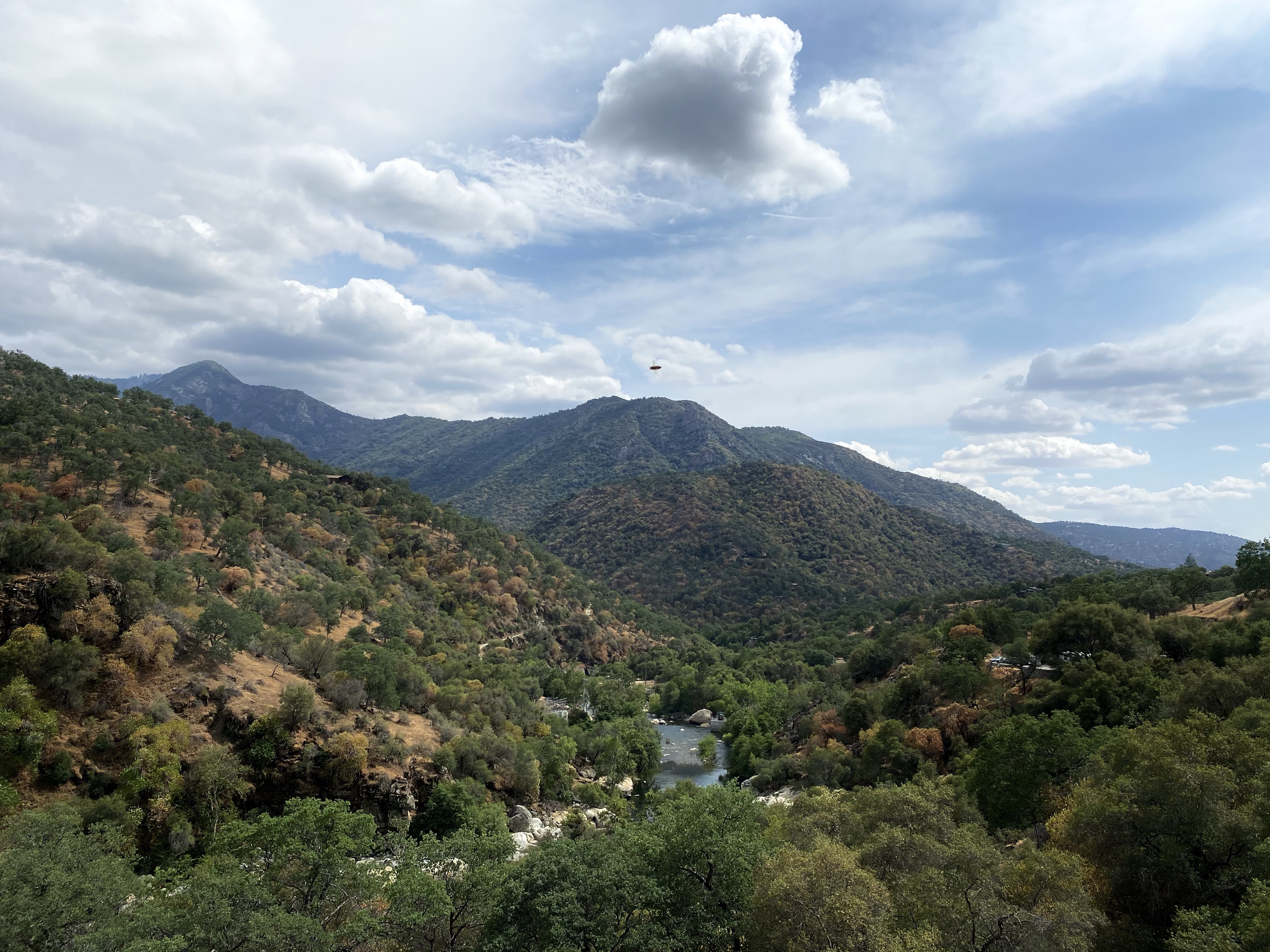 The drive here was easy, straight highways through orange groves. A welcome forest of green, sprinkled with orange orbs amongst the straw covered mountains. Red, pink, and white rose bushes broke up the sand and dusty brown as well. As I grew closer to Sequoia National Park, the road became narrow and winding through the village of a Three Rivers. Lots of people were out and about, enjoying a gorgeous Sunday. Shortly the road entered the park and glorious mountains rose up before me. I felt like I was home on the native land of the Western Mono.