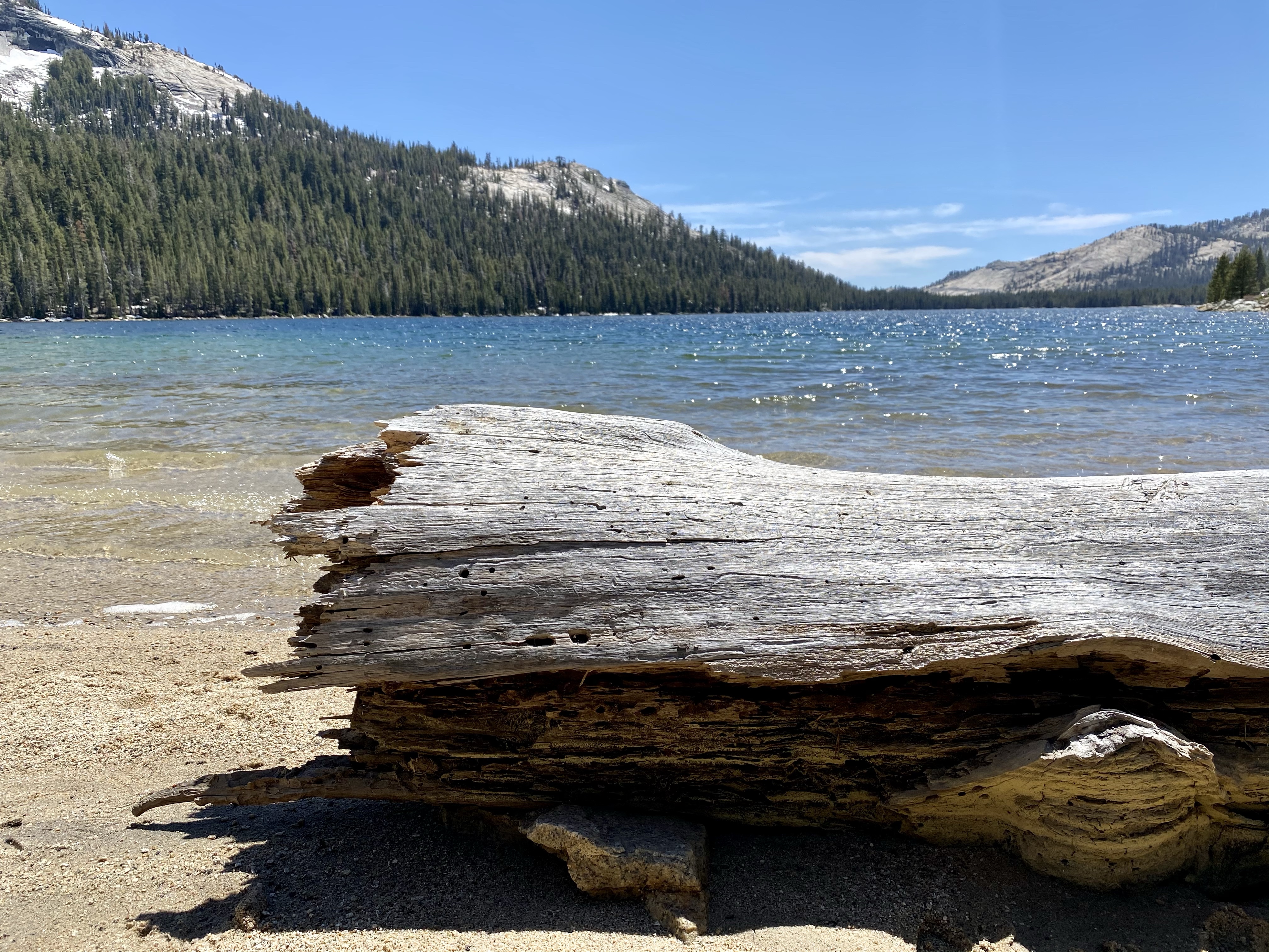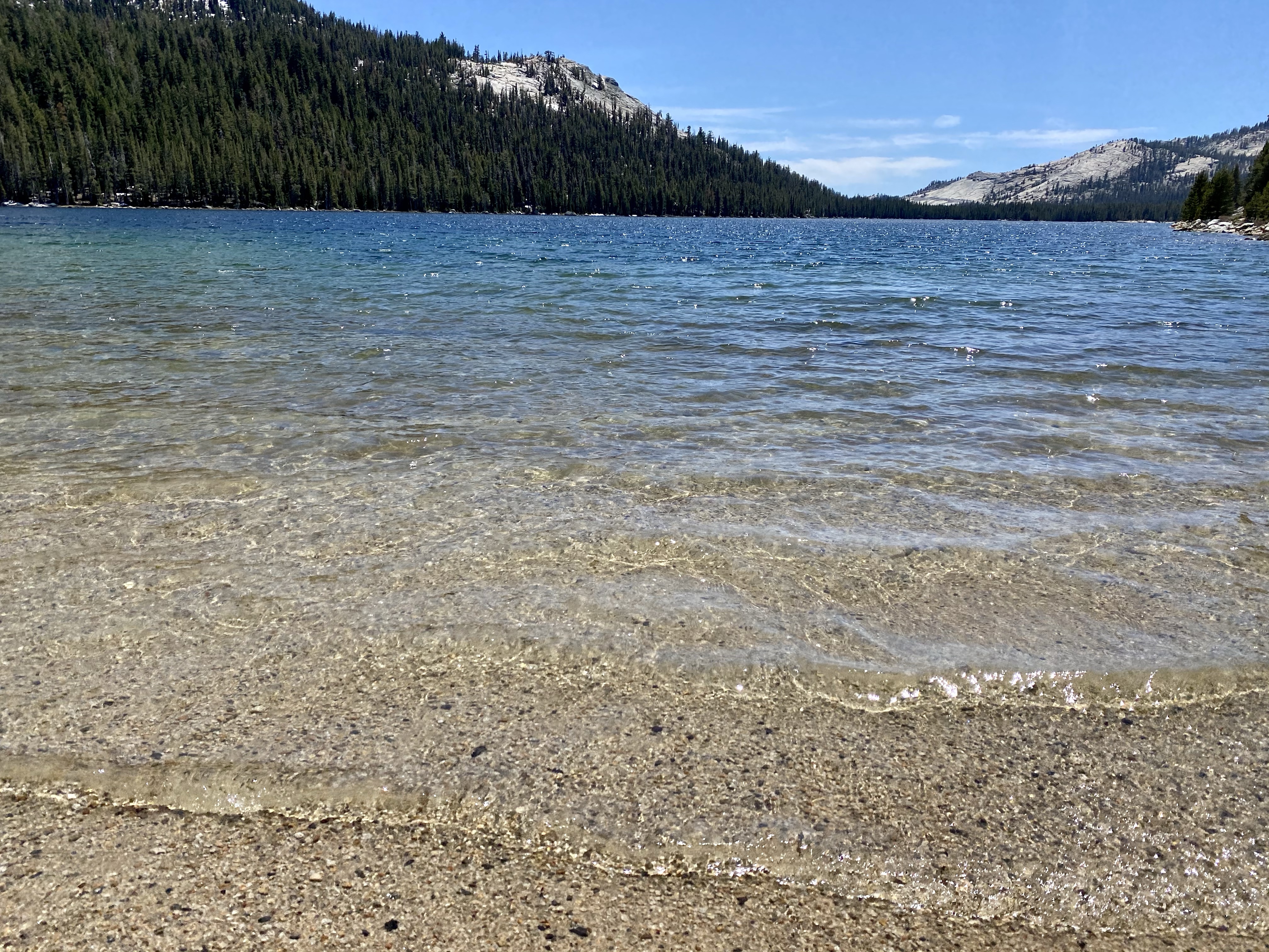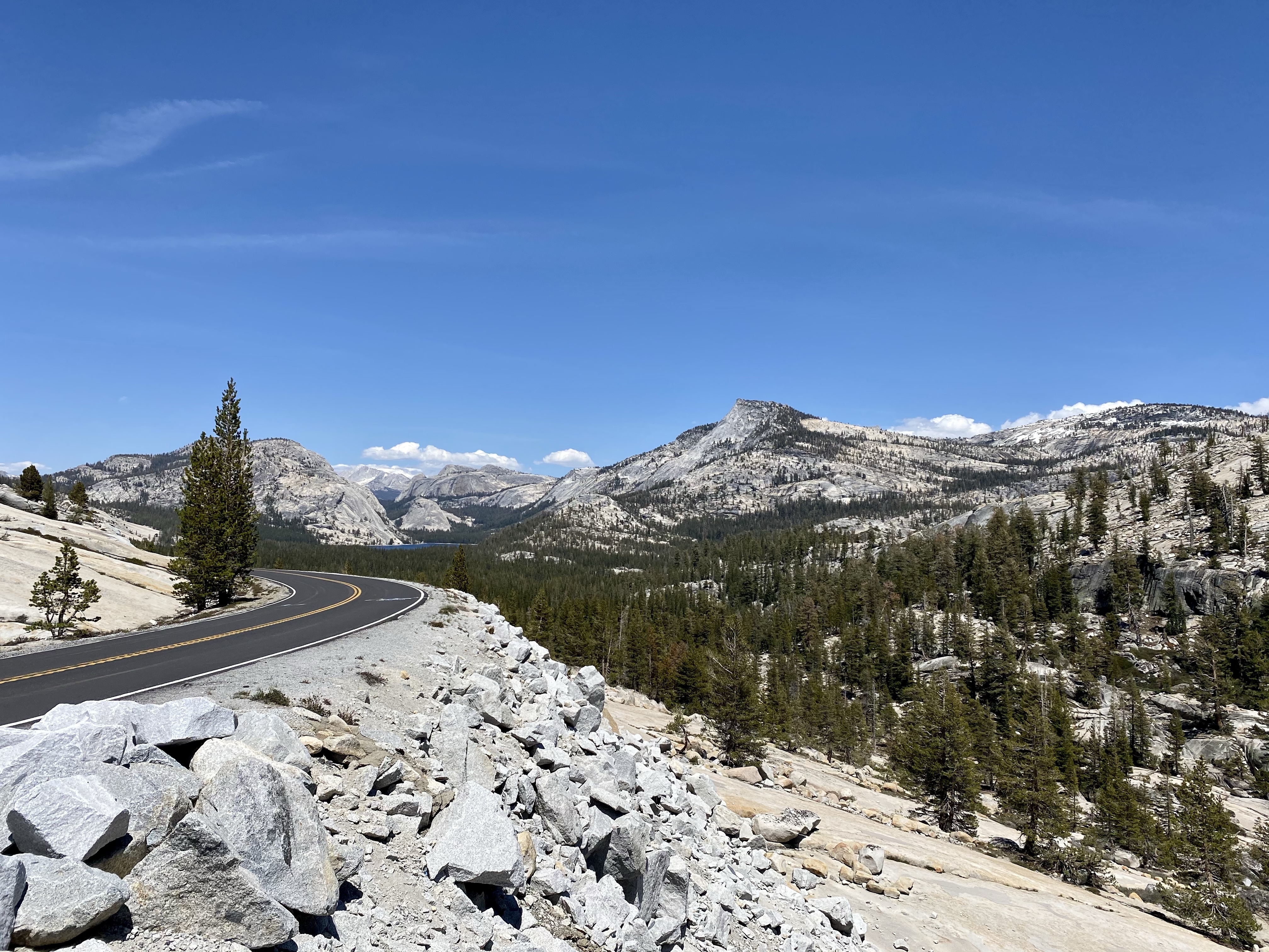Farther down Tioga Road I was rewarded with another view of Half Dome, a pleasant surprise. This time just a tiny bump in the distance. To the left though lay Tenaya Lake, a sapphire blue gem among the mountains. I could barely make it out from my stop, so I headed down the road to enjoy it from it’s shore.
