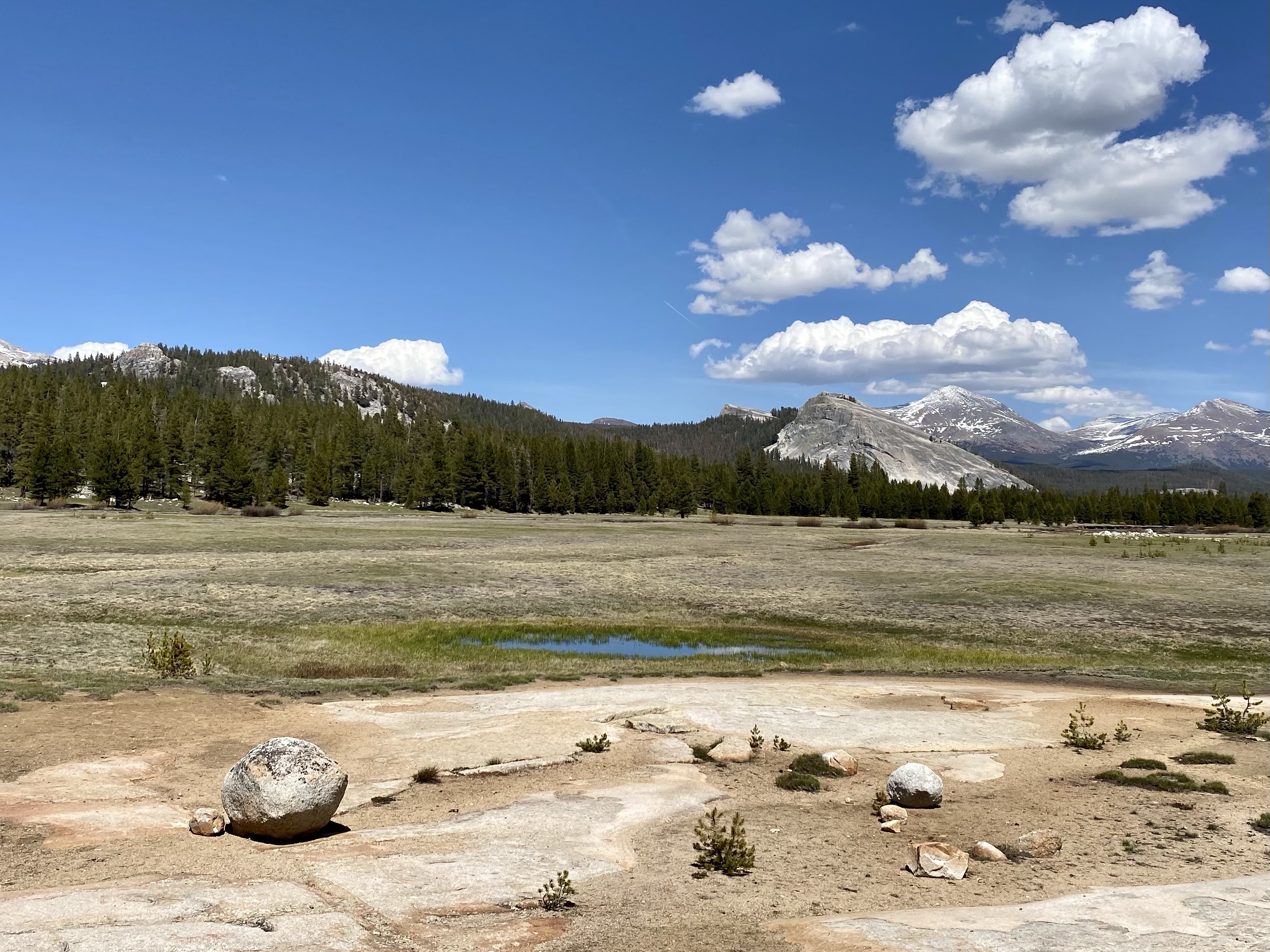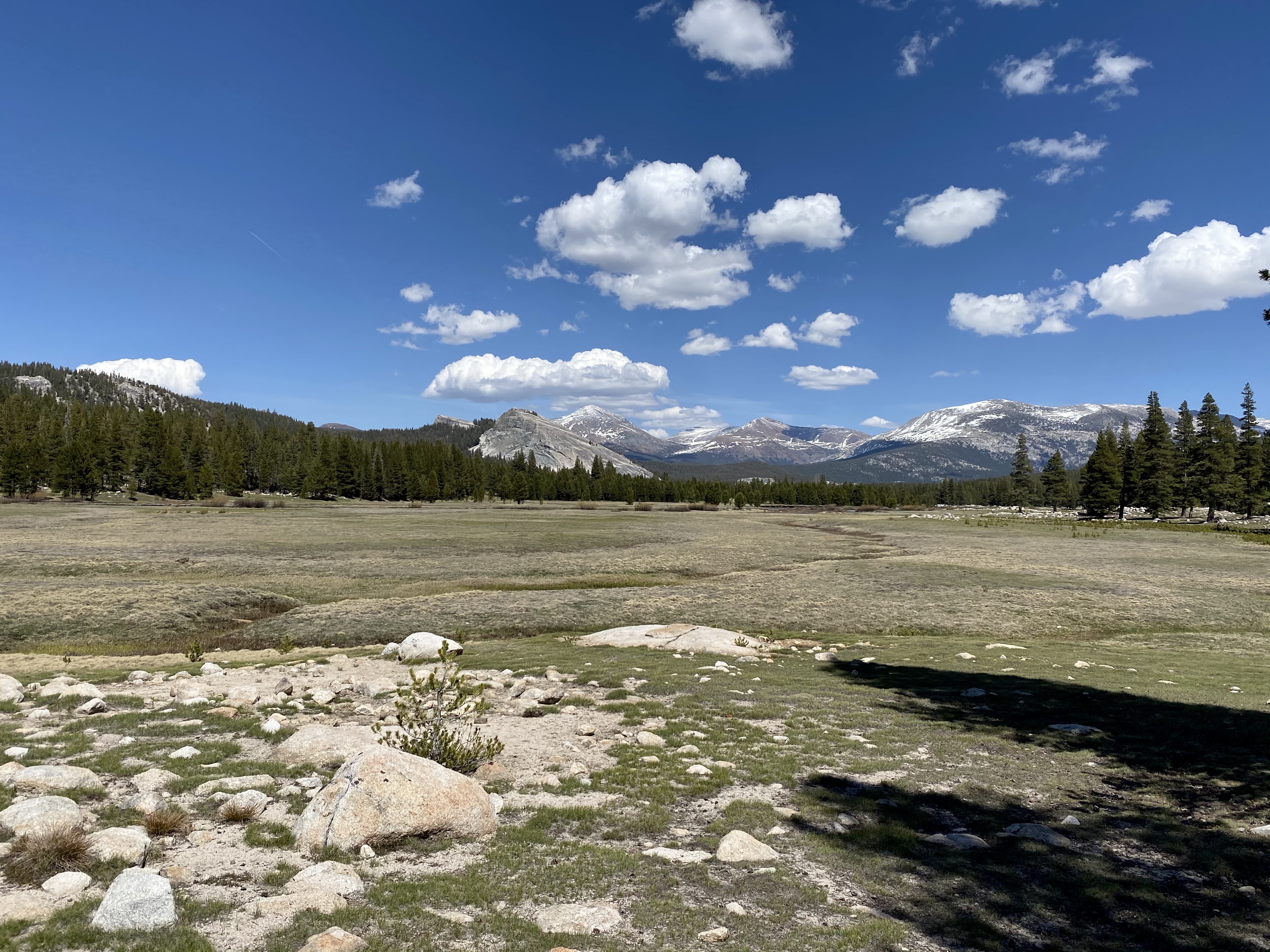 As my journey across Tioga Rd continued, I entered alpine meadow. Green grasses spread across the valley, a fragile ecosystem providing much needed resources. Tuolomne Meadows stretched out as far as you could see, only stopping in the distance to accommodate the mountains rising skyward.