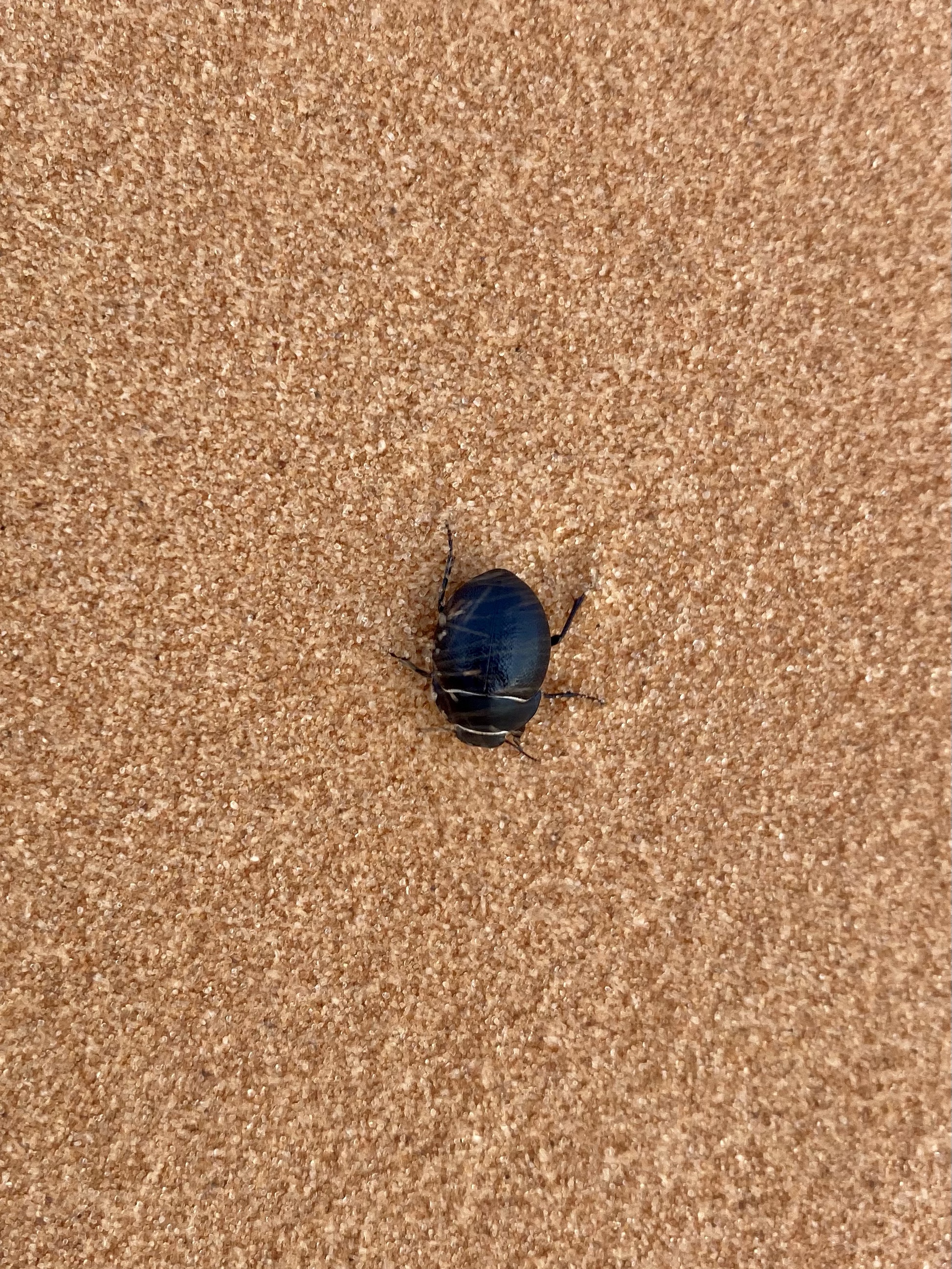As we climb up on the dune ridge, the wind quickly escalated and whipped sand around. Each time a strong gust came, grains pelted our bare legs and arms, stinging like pins and needles. I attempted to use the sled as a shield, but it was little help. Soon we had sand everywhere – hair, ears, backpacks, even a few crunchy grains in our teeth. Crystal and Max ran down the dune to find shelter in the valley, but there was little comfort there either. I decided I wanted to climb up anyways, so I left my bag with them and headed up the steep embankment. I told myself I was getting a good whole body exfoliation service. Haha! A tiny black beetle, obvious among the pink dunes, also struggled to make it to his spot. Sand sailed over him and he slowly inched forward. What an inspiring creature!