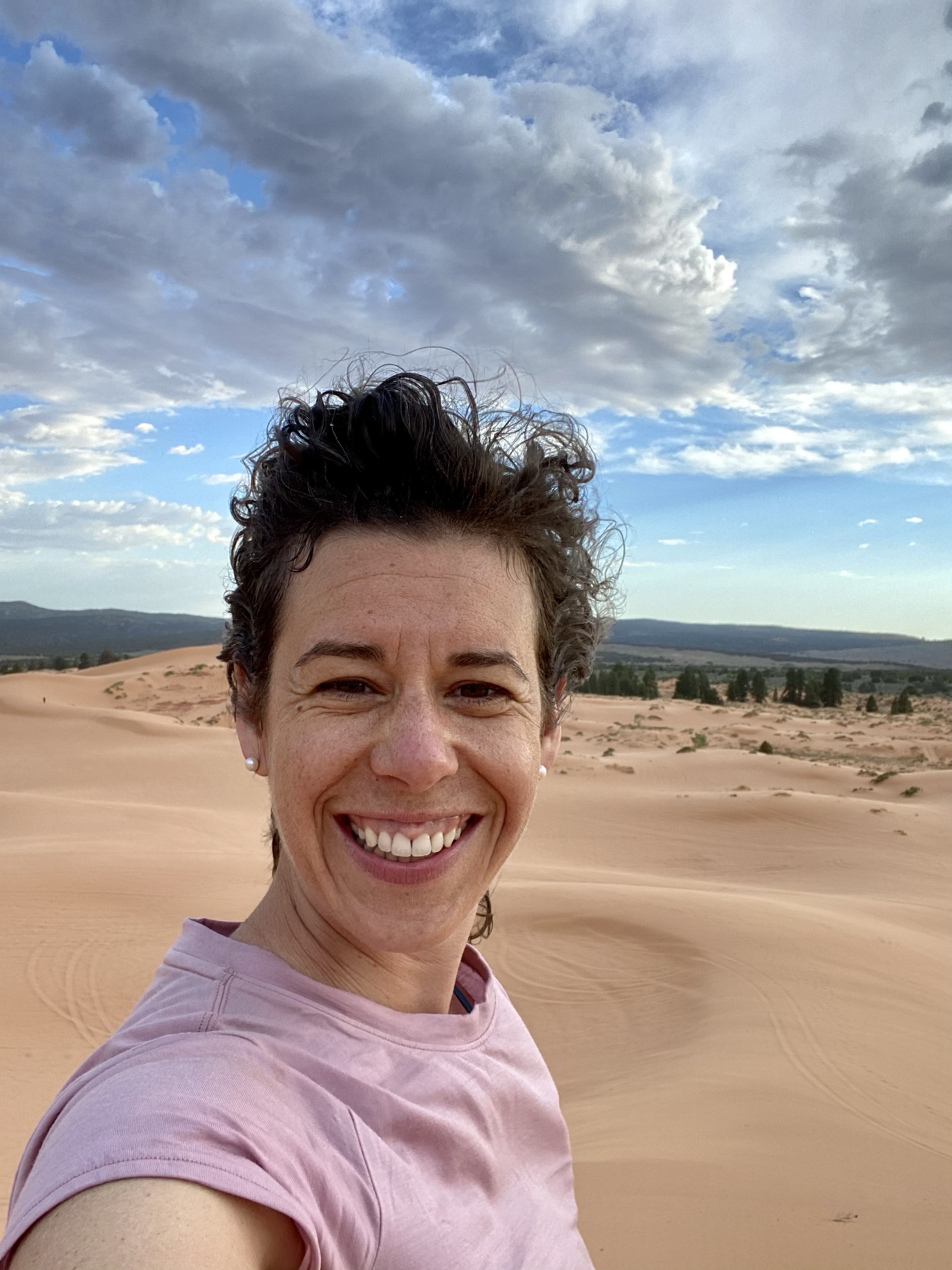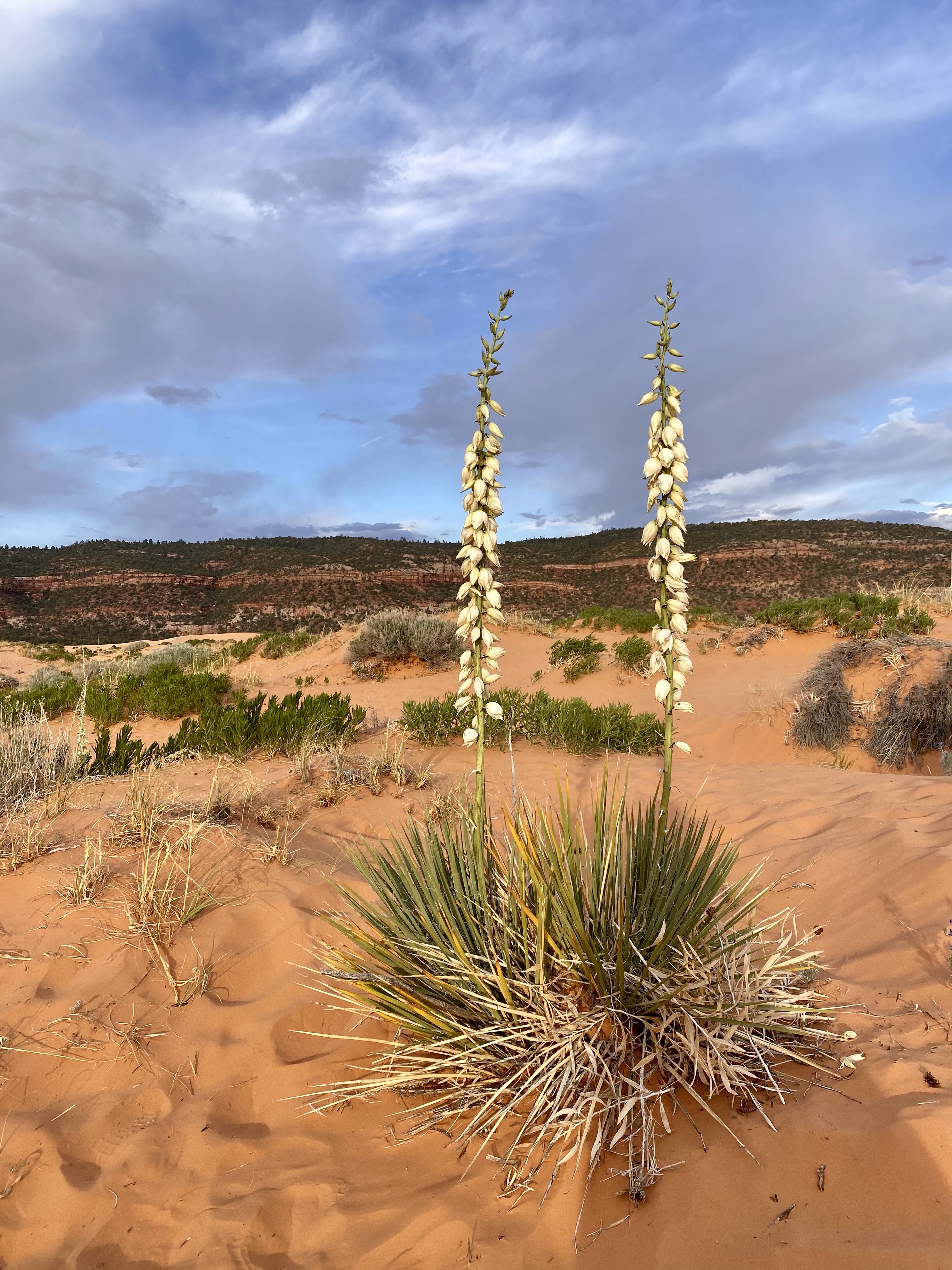 After enjoying the uniqueness of the museum, and the coolness of the caves, we emerged again and eventually found our way to our campsite outside Coral Pink Sand Dunes State Park, our last stop for the day! We rested at the campsite, ate dinner and relaxed, until the heat disapaited. Then we climbed in Crystal’s truck for our evening adventure on the dunes. I made sure to pack the sled for more sledding fun!