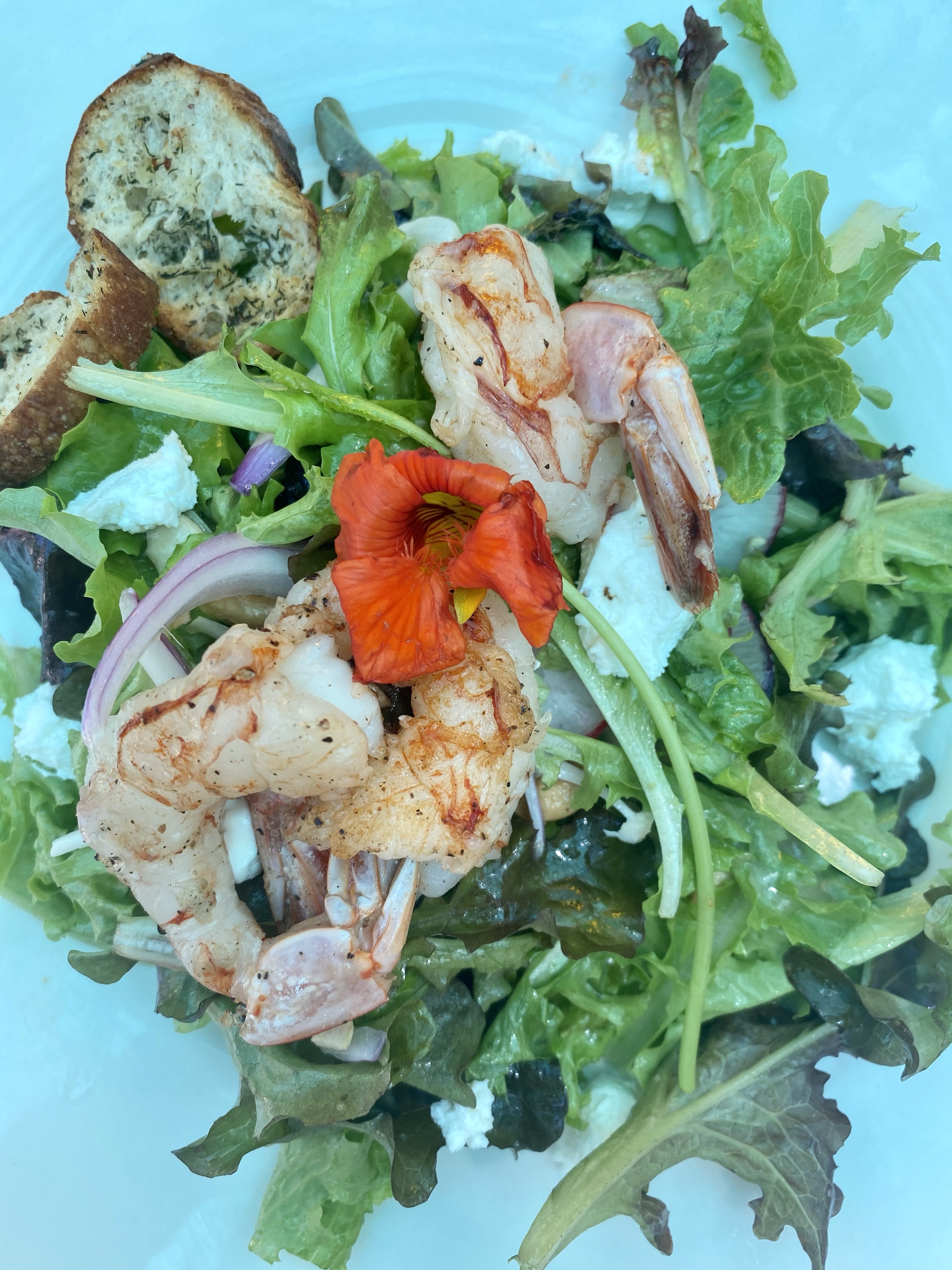 Other than a pick up order from Chipotle mid-trip, I haven’t eaten out in nearly two months! Dandelion Cafe was the perfect place to treat myself. I had a patio table in the corner all the myself, great for people watching and privacy. Assorted olives for an appetizer, salad special with shrimp for my main, and a delicious house cocktail for a splurge. Yum!