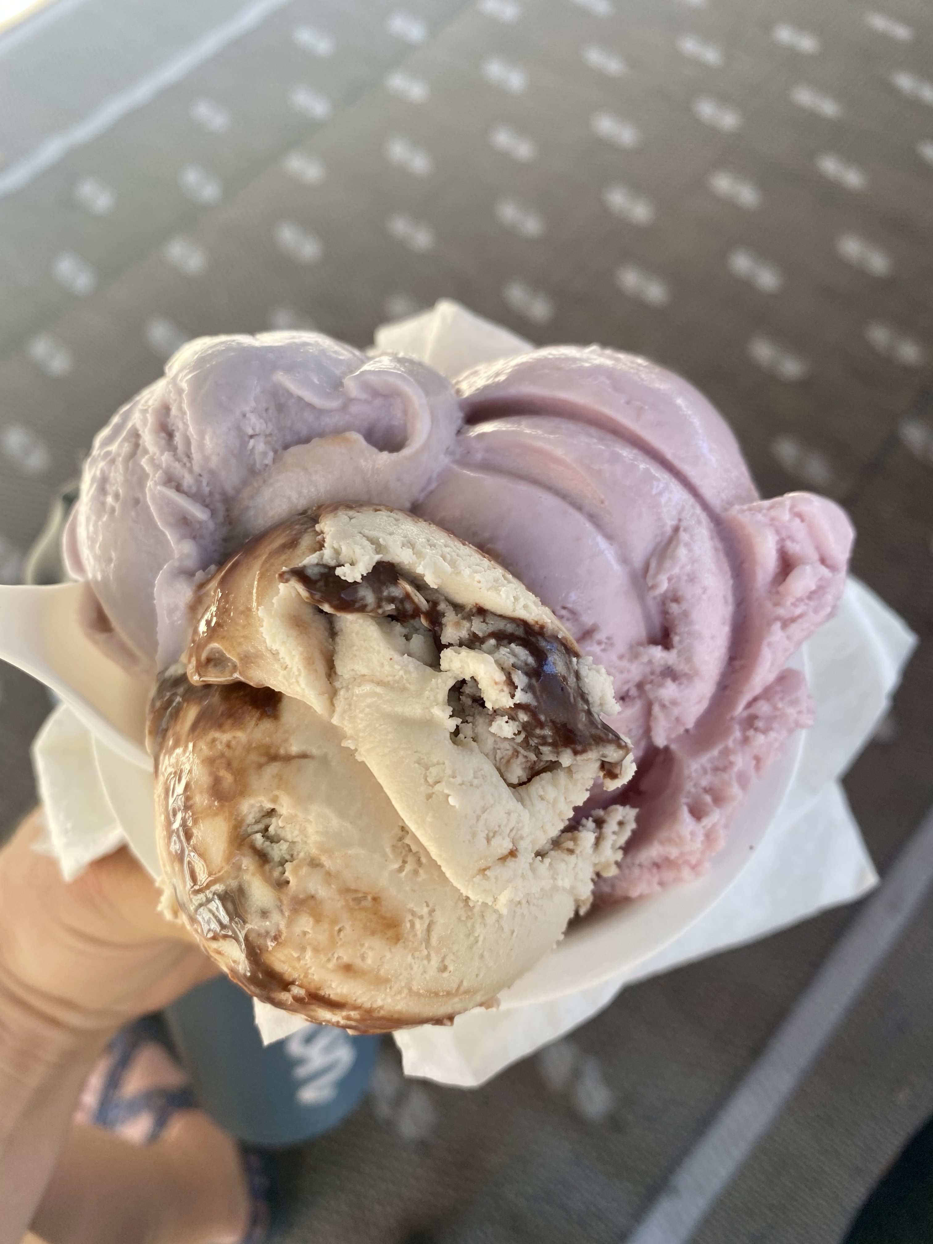 After, I went to Cream Bean Berry for ice cream. Homemade and full of delicious flavors, I couldn’t pass it up. In case you don’t know, I LOVE ice cream and am bit of an “ice cream snob.” I’m chipset about where I patron, usually only homemade places. I know, I’m spoiled. This spot didn’t disappoint. A triple scoop let me enjoy three flavors – honey lavender, strawberry rhubarb, and vegan peanut butter fudge. Delicious!