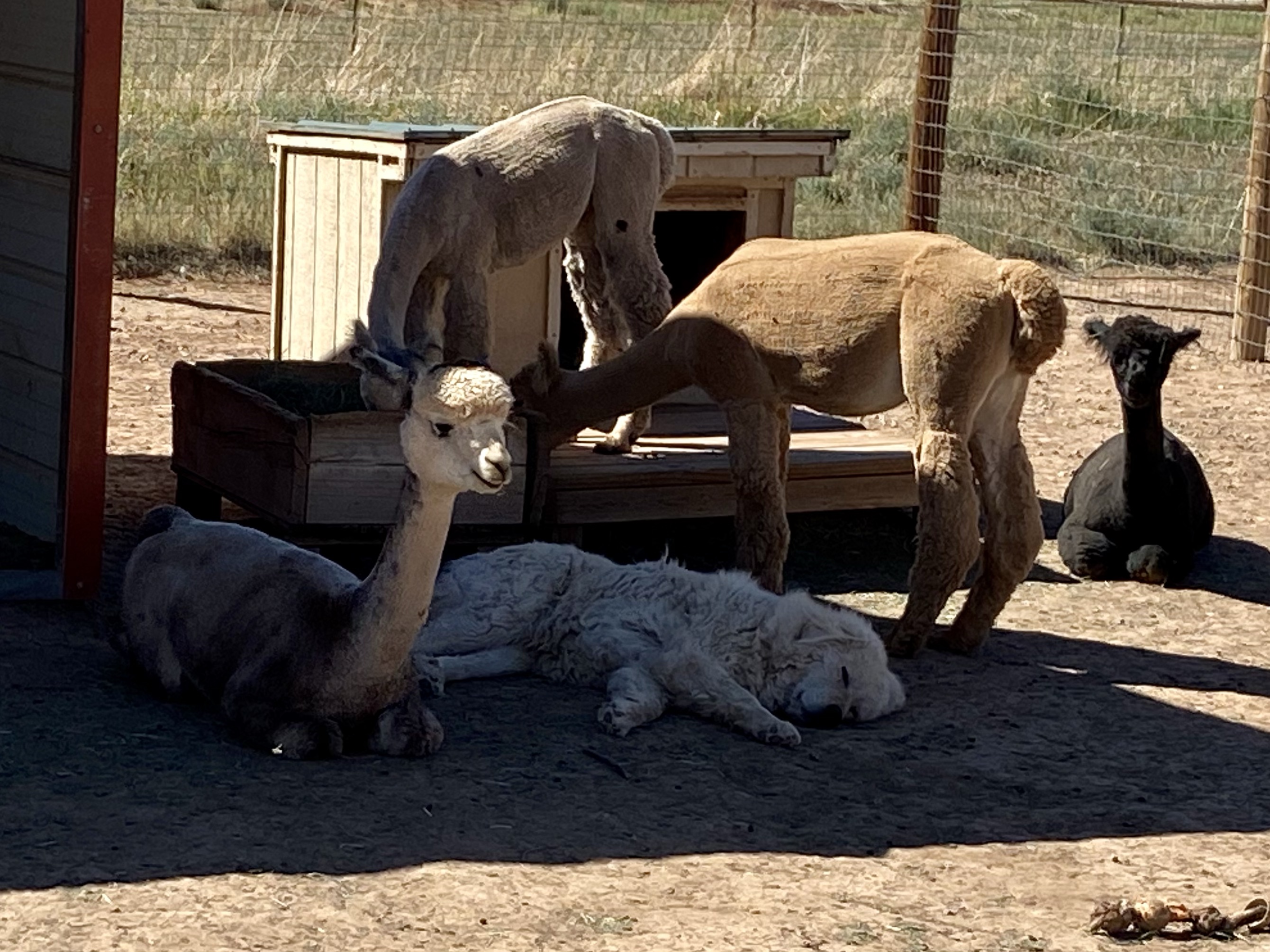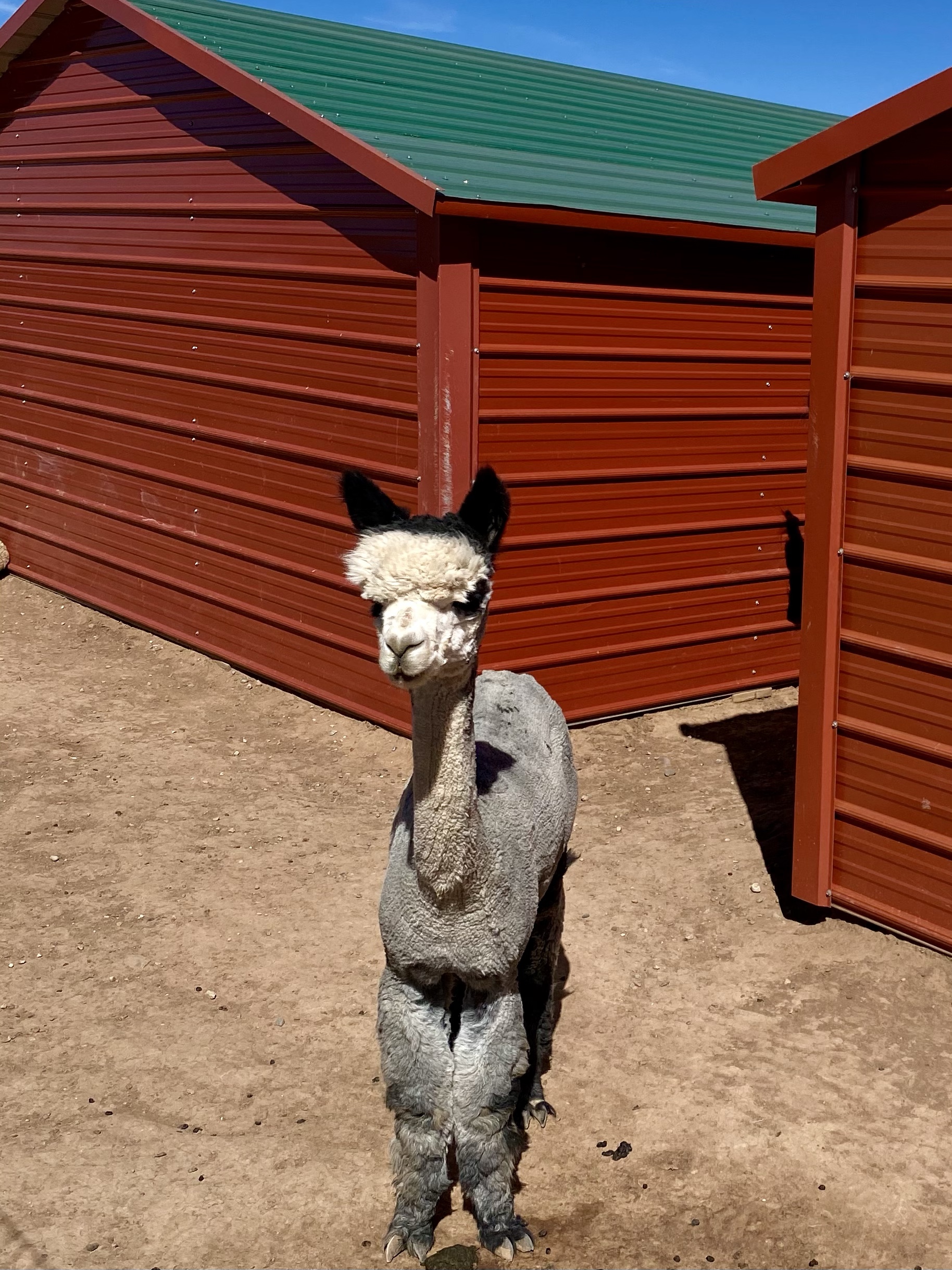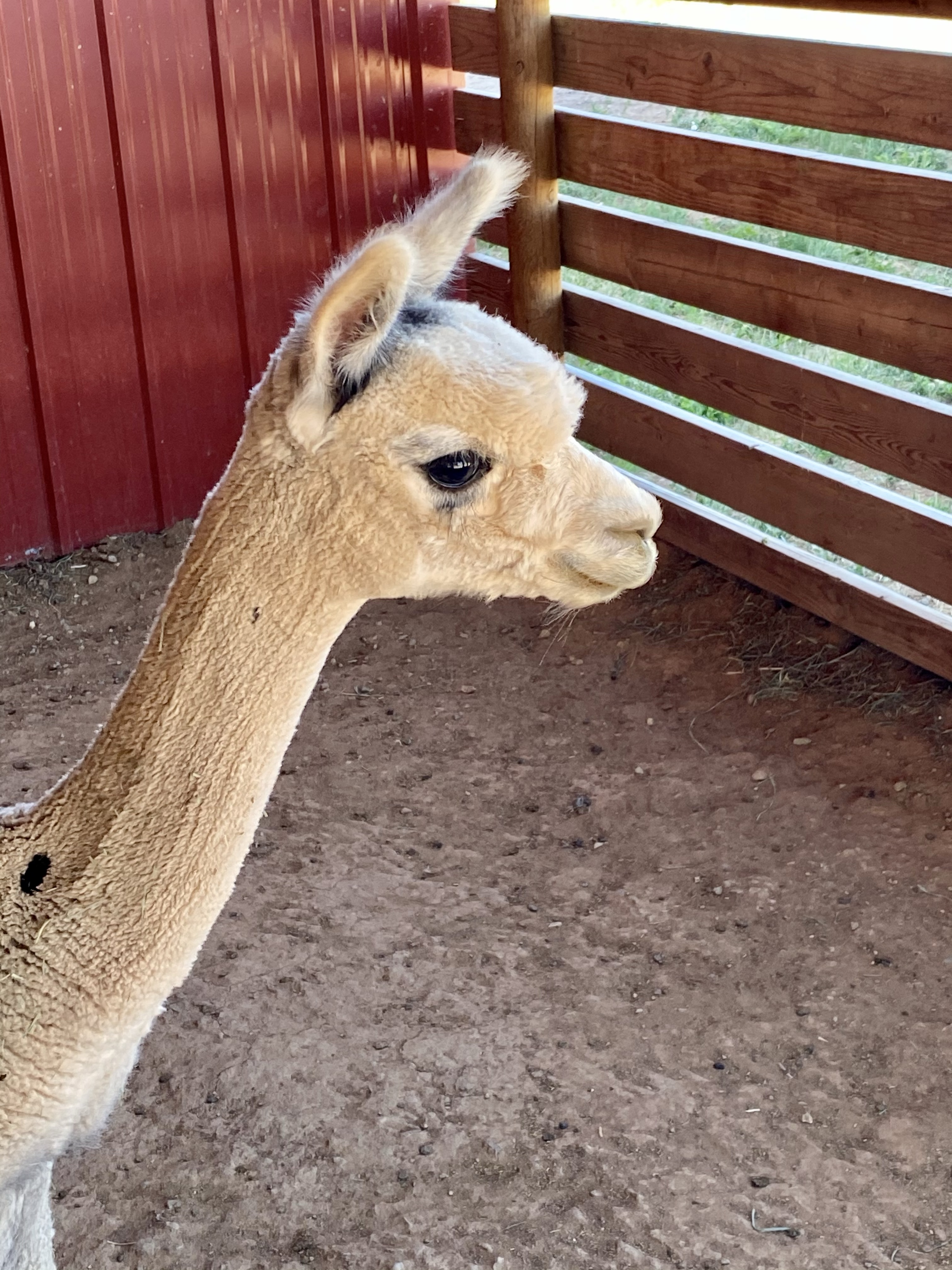 Pleasant Journey Alpacas is outside of Durango on a quiet farm. There Sue gave us a tour of the alpacas and taught us all about how to care for them. I learned that people also show alpacas, like they show dogs or horses! The alpacas are judged in their fleece quality as well as their body shape. PJA has many award winning alpacas! Another interesting thing is that there are 16 different fleece colors for alpacas. Who knew? Alpacas also can lay down on their legs, the front two folding under in a V and the back folding like a Z. It doesn’t look comfortable, but apparently it is for them! Finally, I learned how to tell the difference between llamas and alpacas. Llamas are much larger, but they also have banana shaped ears while alpacas have straight ears! Now I will never be confused.
