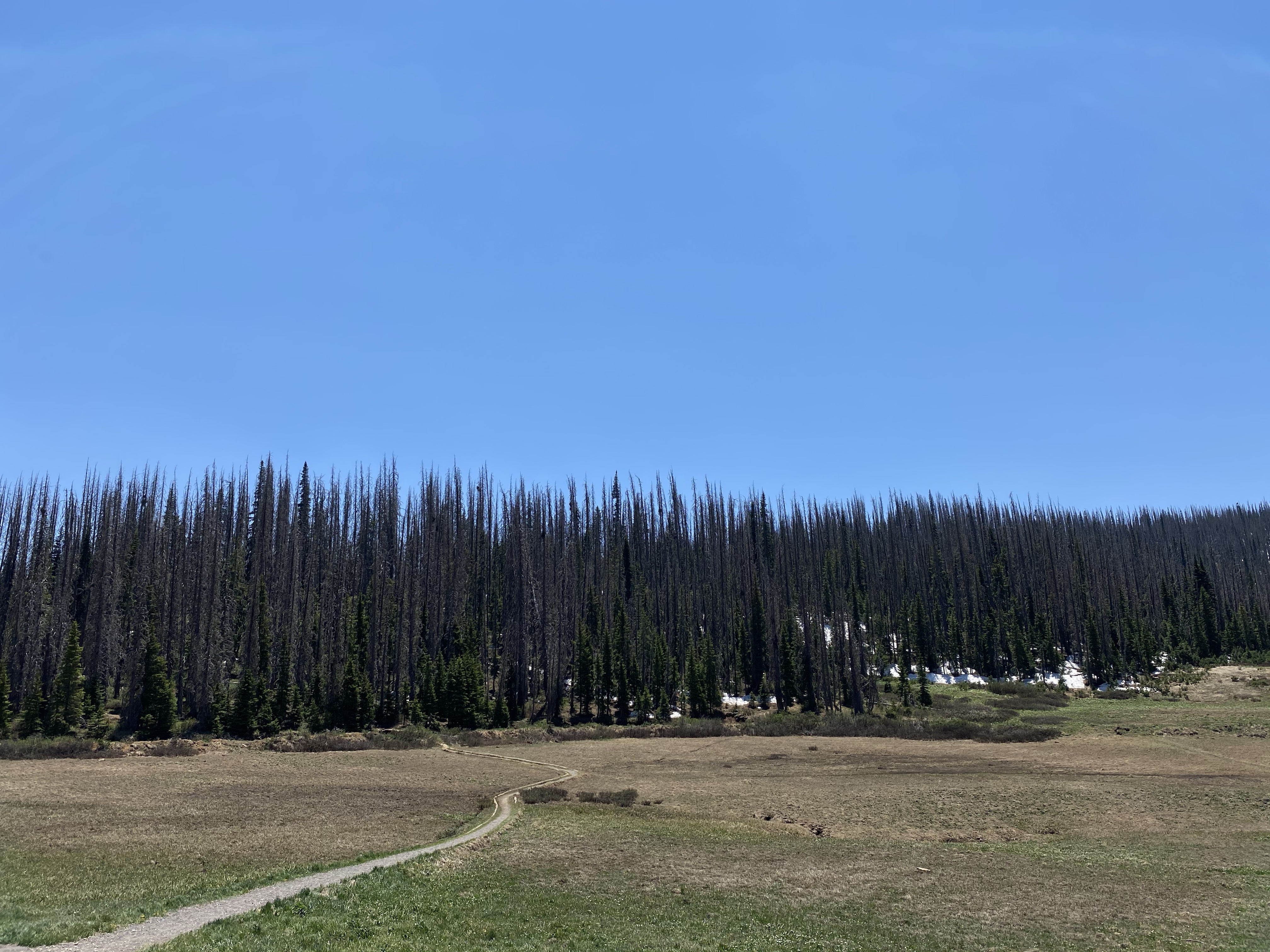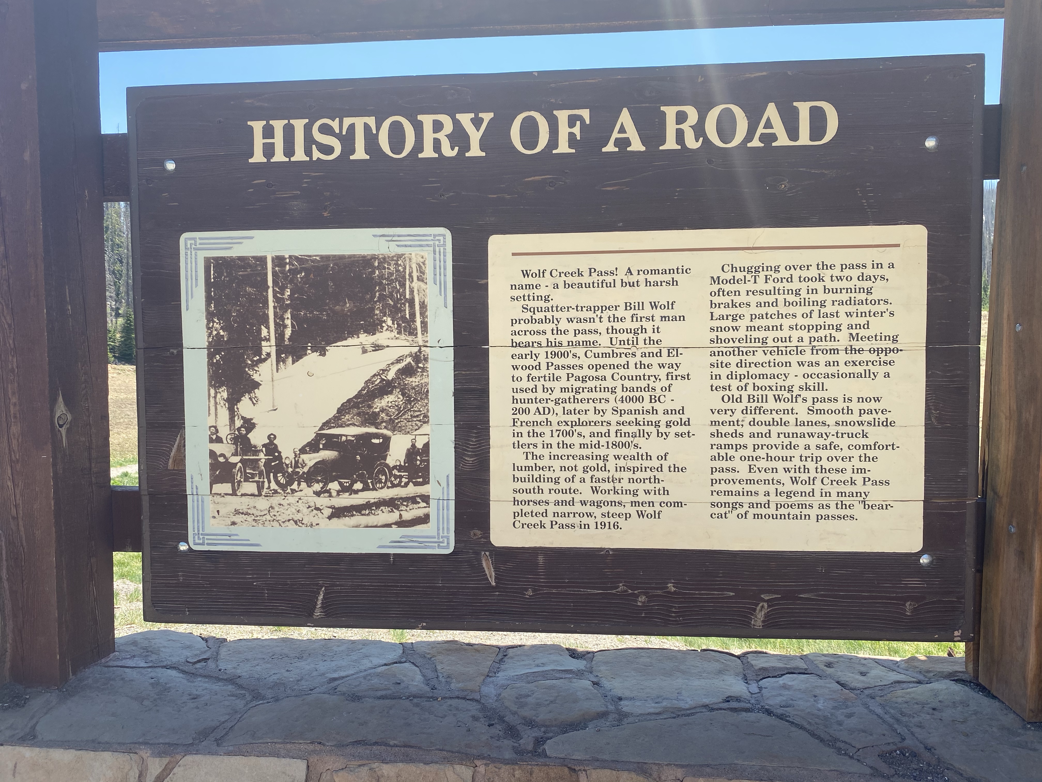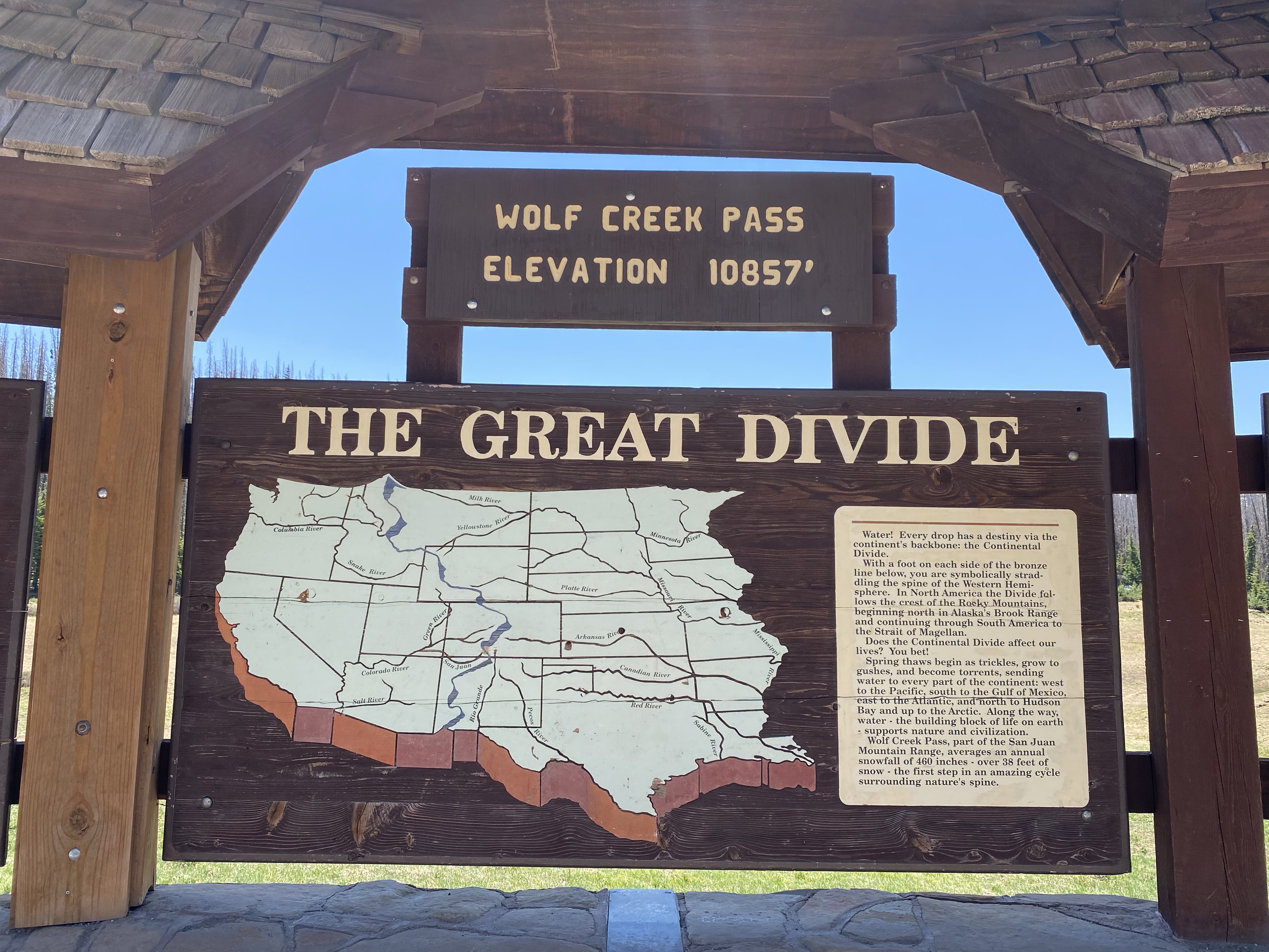 Along the scenic road I climbed into the mountains and crossed the Continental Divide at Wolf Creek Pass. 10,857 feet high! Snow still graced the ground in the woods. After a quick pit stop, I continued on to Great Sand Dunes, the next great adventure.