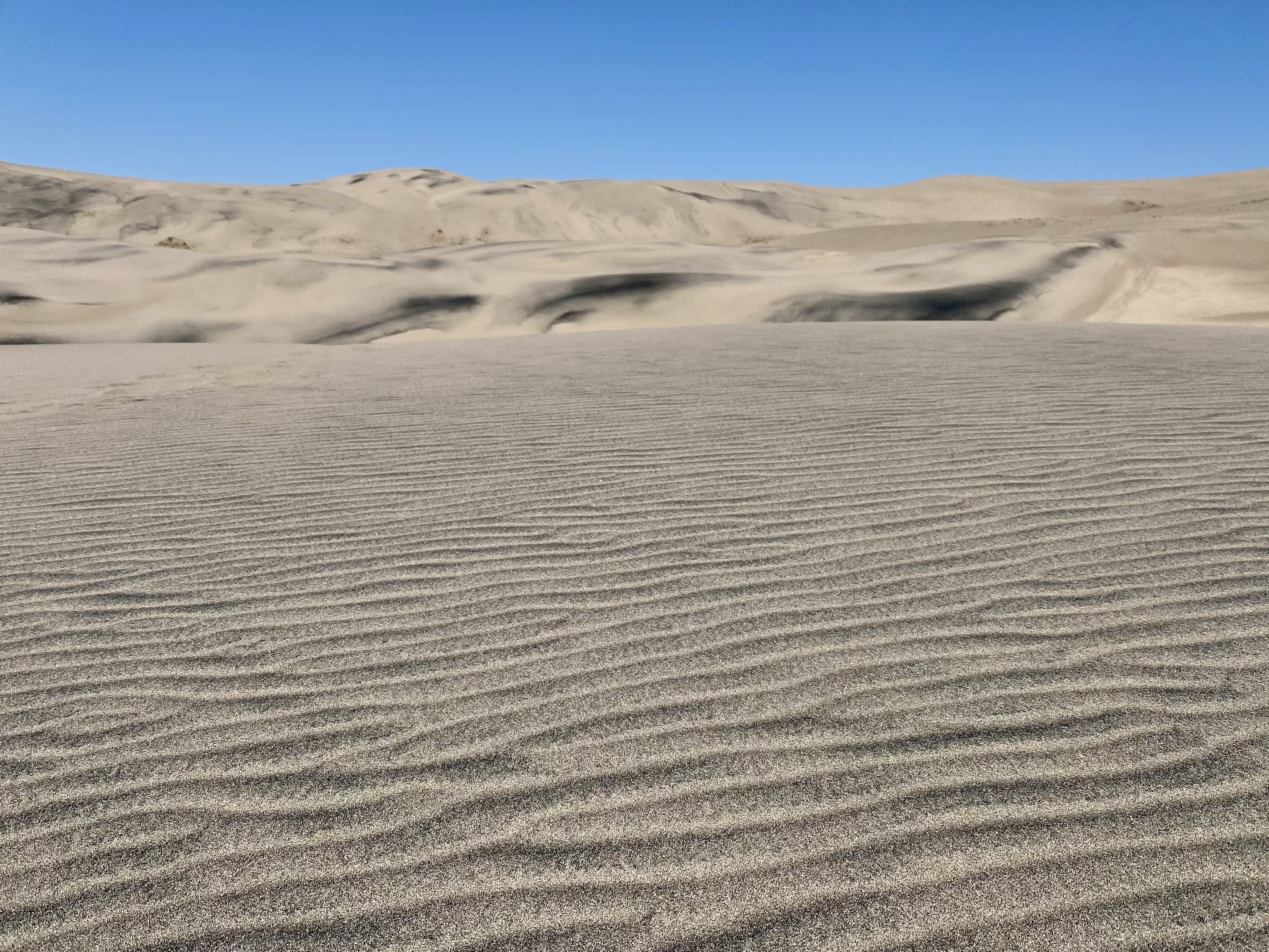 When I arrived at Great Sand Dunes National Park on a Monday afternoon, it was hot and busy! I knew I wasn’t going to do any hiking, so I waited in line at the visitors center. Gosh, just standing there I was sweating! Enjoying this place would mean early mornings and lazy afternoons. After I chatted with the park ranger and bought my gifts, I headed to my camping site in the park and didn’t move again for the rest of the evening! Luckily, I could stay parked here during my stay, everything was accessible right from the campground.