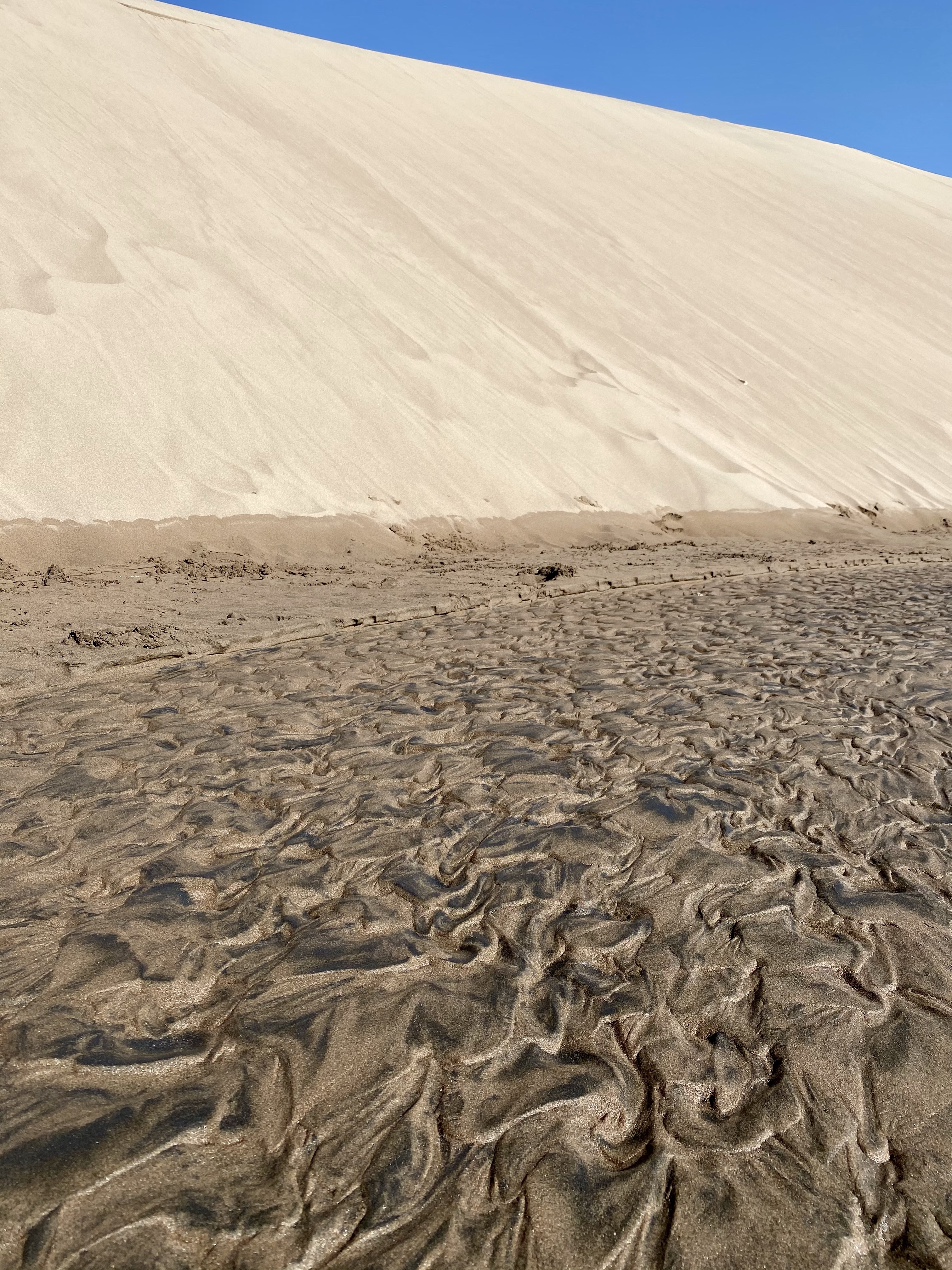 Eventually I was all alone at the summit, and I wandered around a bit, taking photos at different angles. The sand creating attractive shapes and structures. Then, it was times to slide.