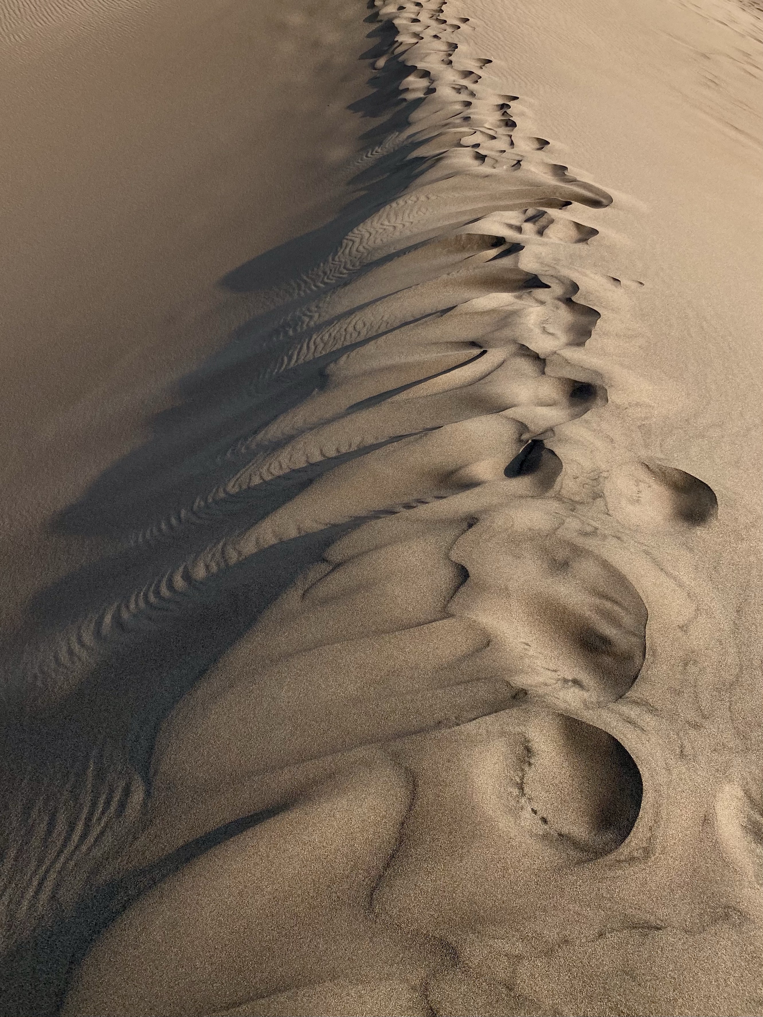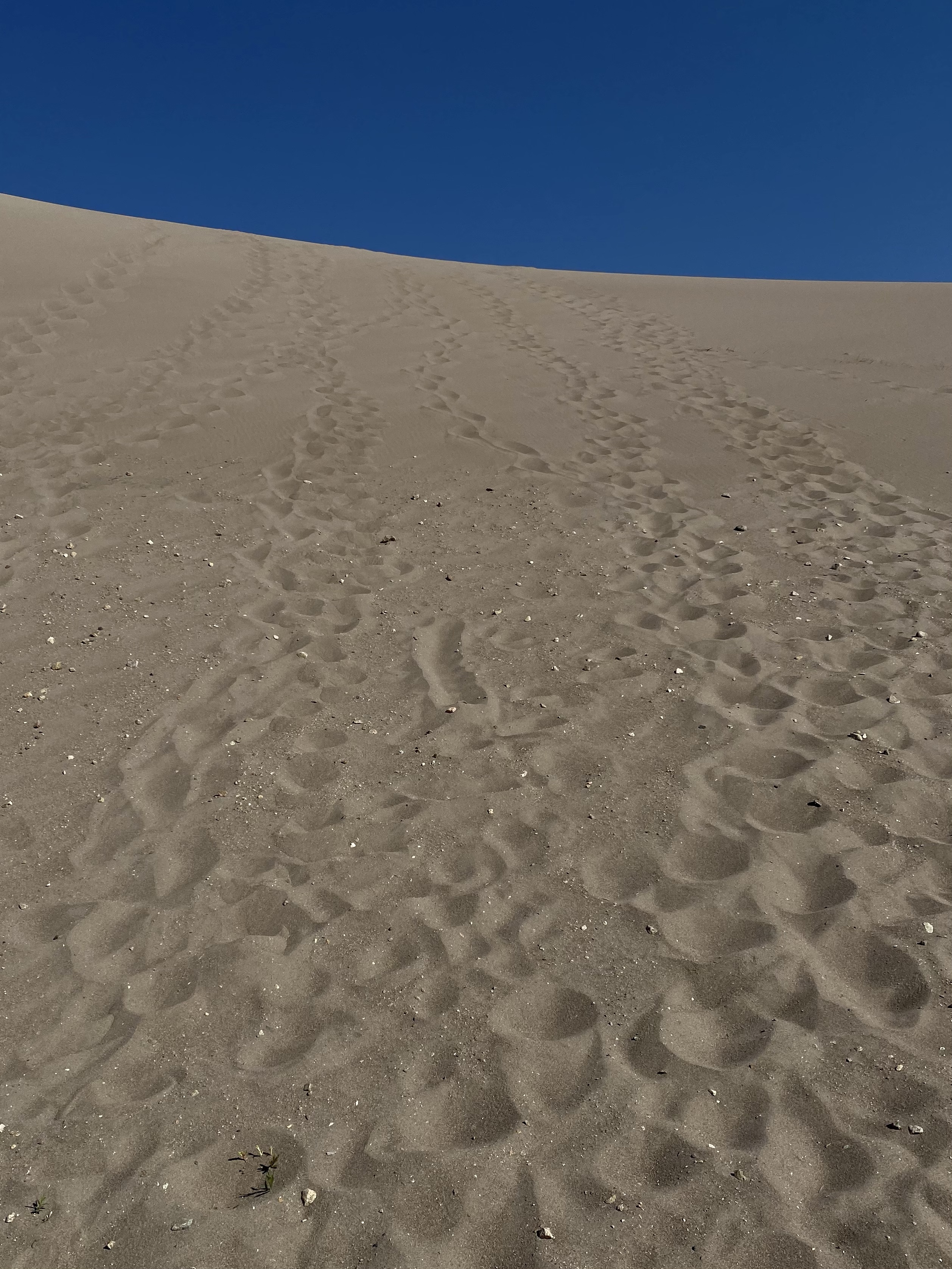 Well, the ridges and tops are harder, but not hard. And as soon as you conquer one baby dune, another one lies ahead. Or even better, sometimes a dip and then a rise. The dunes undulated for miles in every direction, a surprise awaits at each summit.