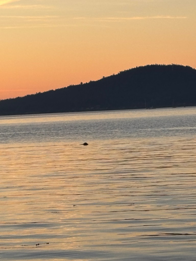 That later evening I sat on the patio, watching the most spectacular sunset. A few seals swam around, poking their heads up every now and then to see what was going on. A large heron flew in and startled me with its squawk! It was a pretty lovely evening.