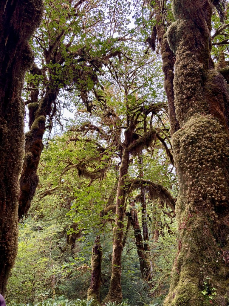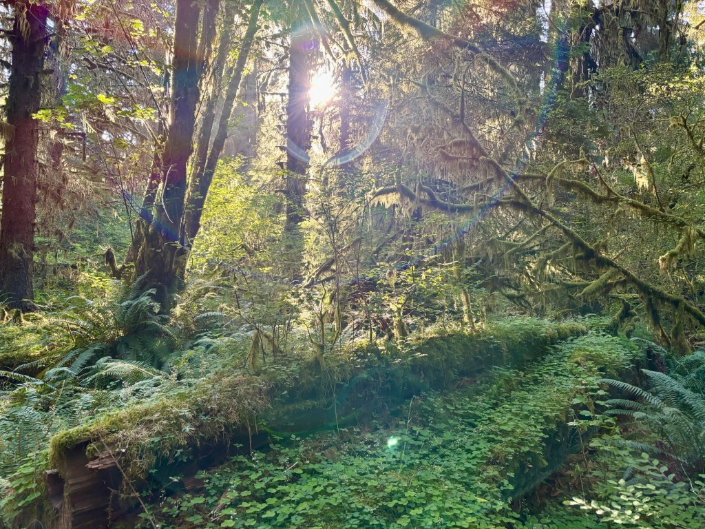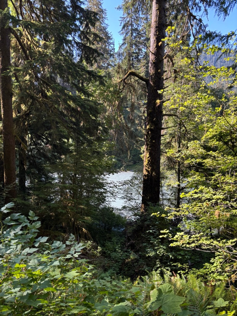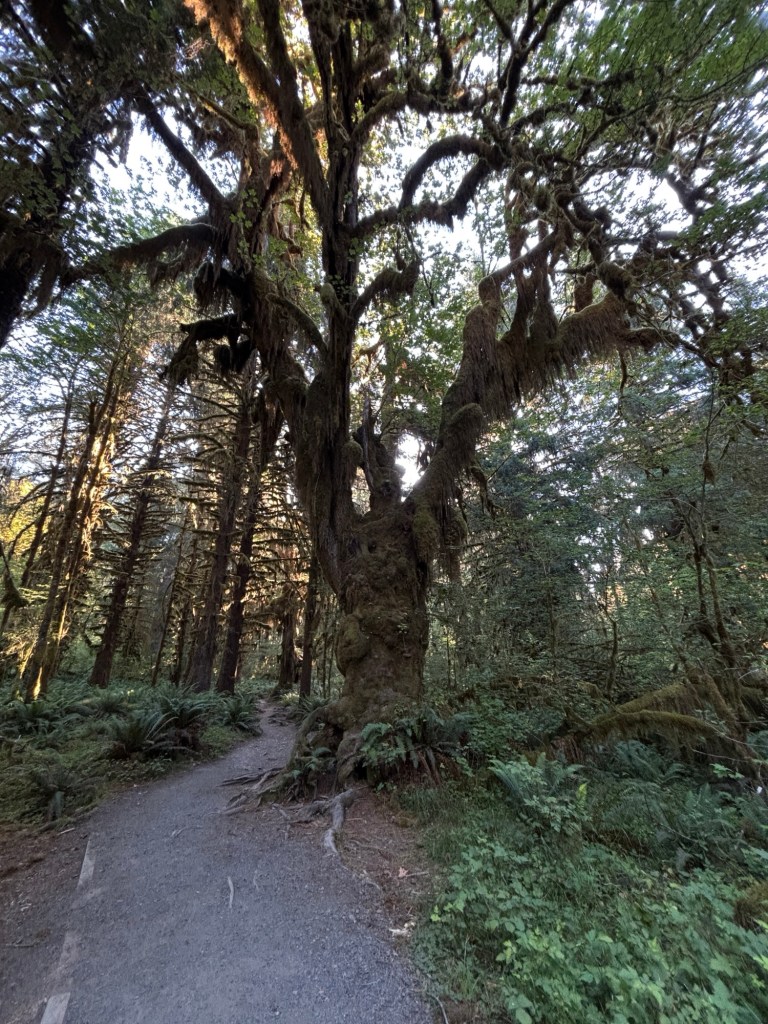 Similar to Sol Duc, tall trees rose around us, stretching for the sunlight. Moss hung from their branches like ribbons cascading down. It danced in the breeze and gentle light glimmering through the canopy.
