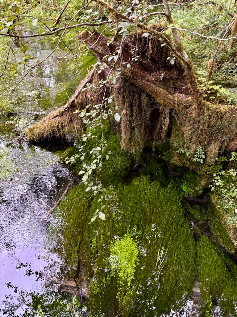 The nature trail was lovely and we were able to access the river. We saw rows of hemlocks growing up from nurse logs. We saw a giant root ball, heart like, giving life to a grove of tree on top. Former life inspiring new life.