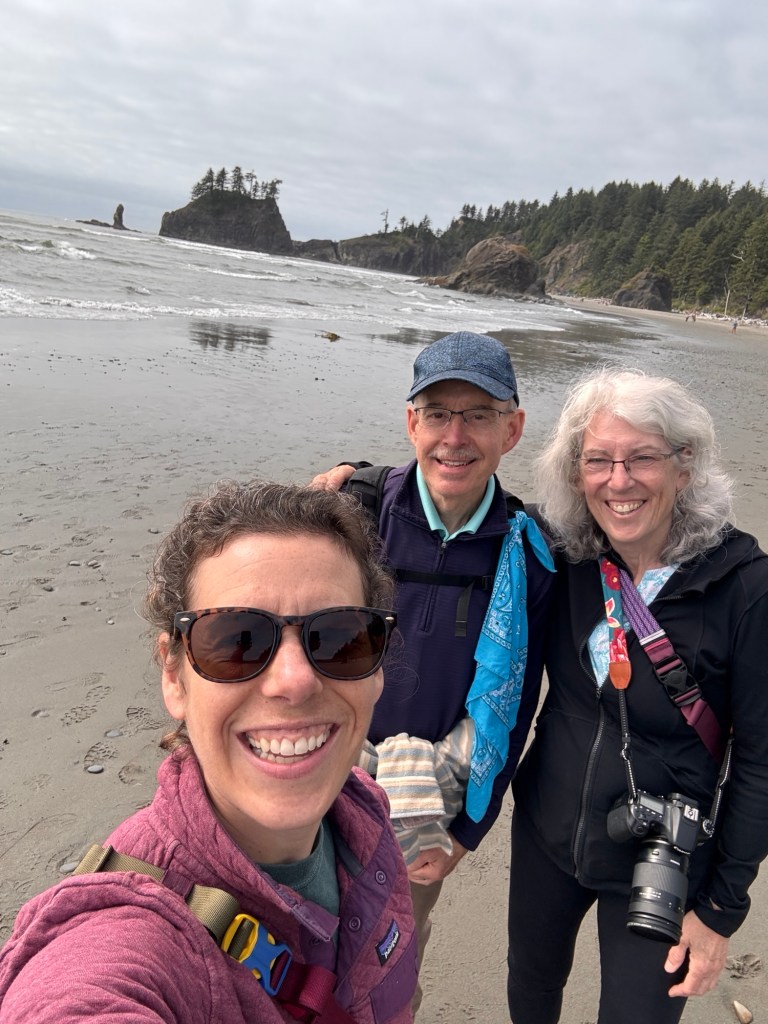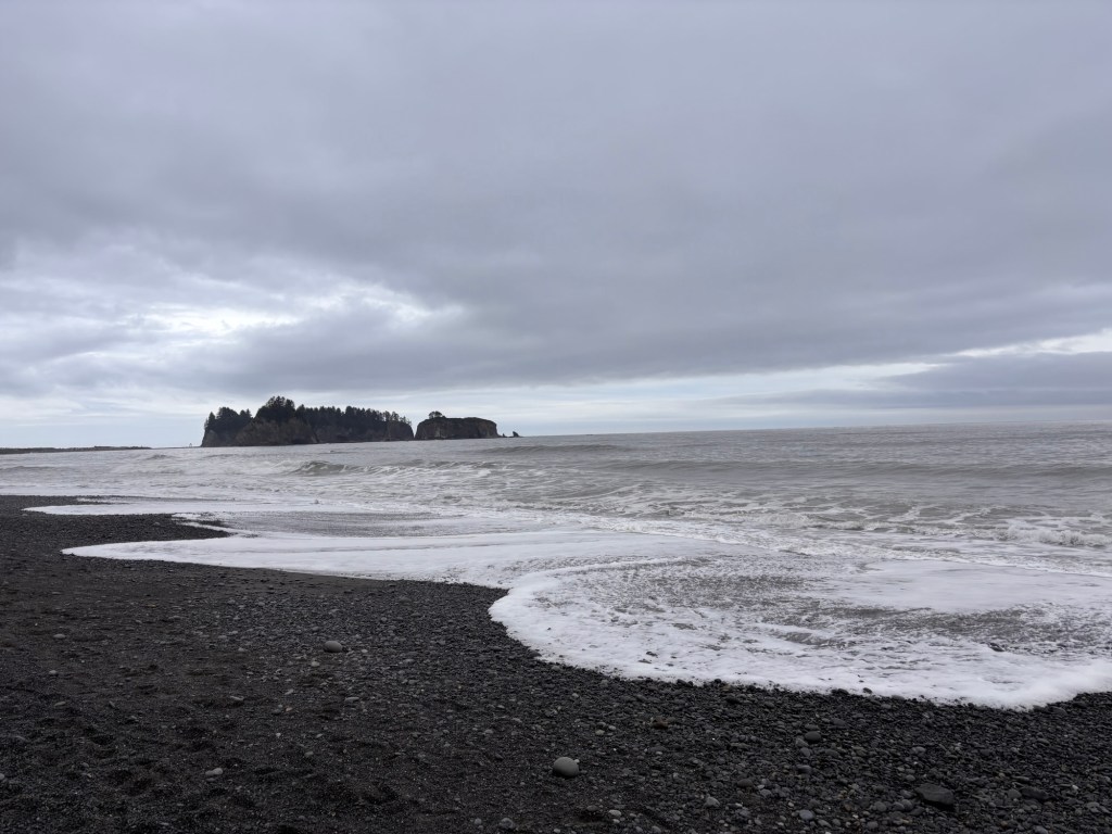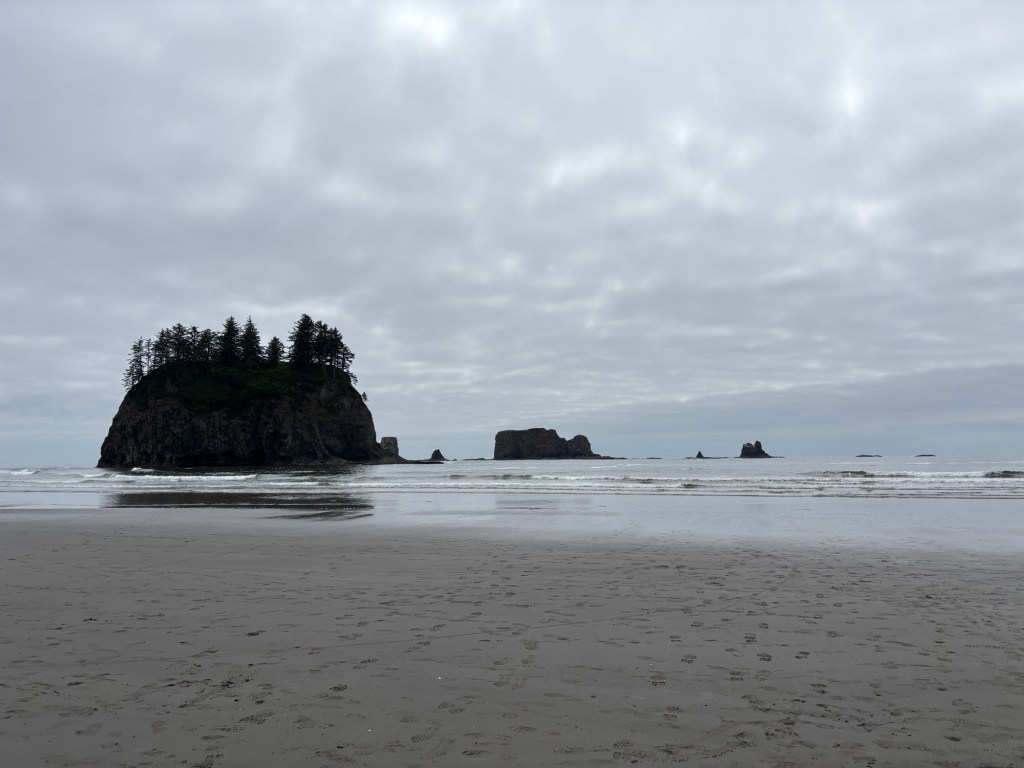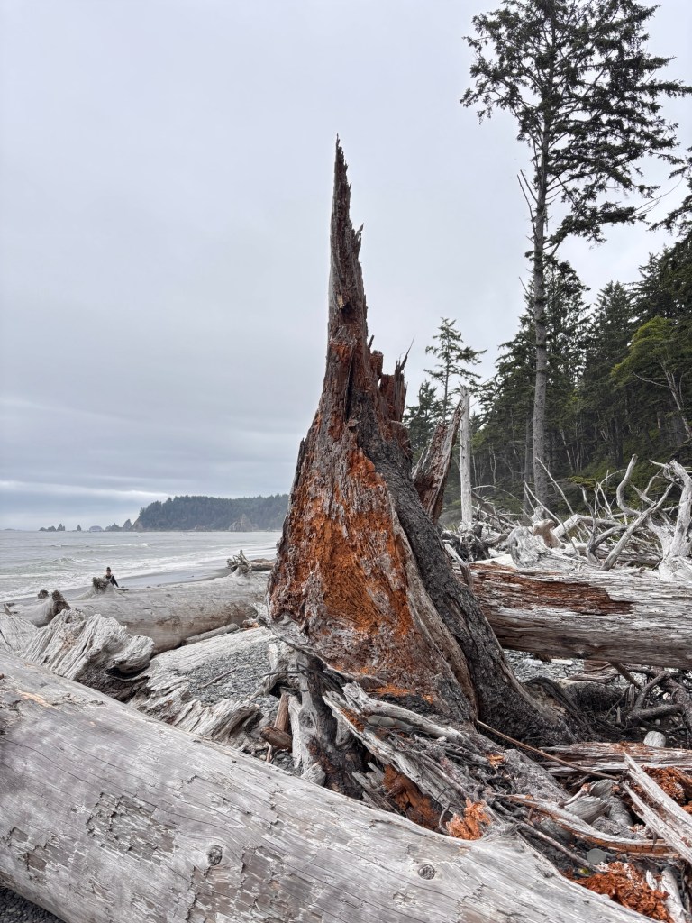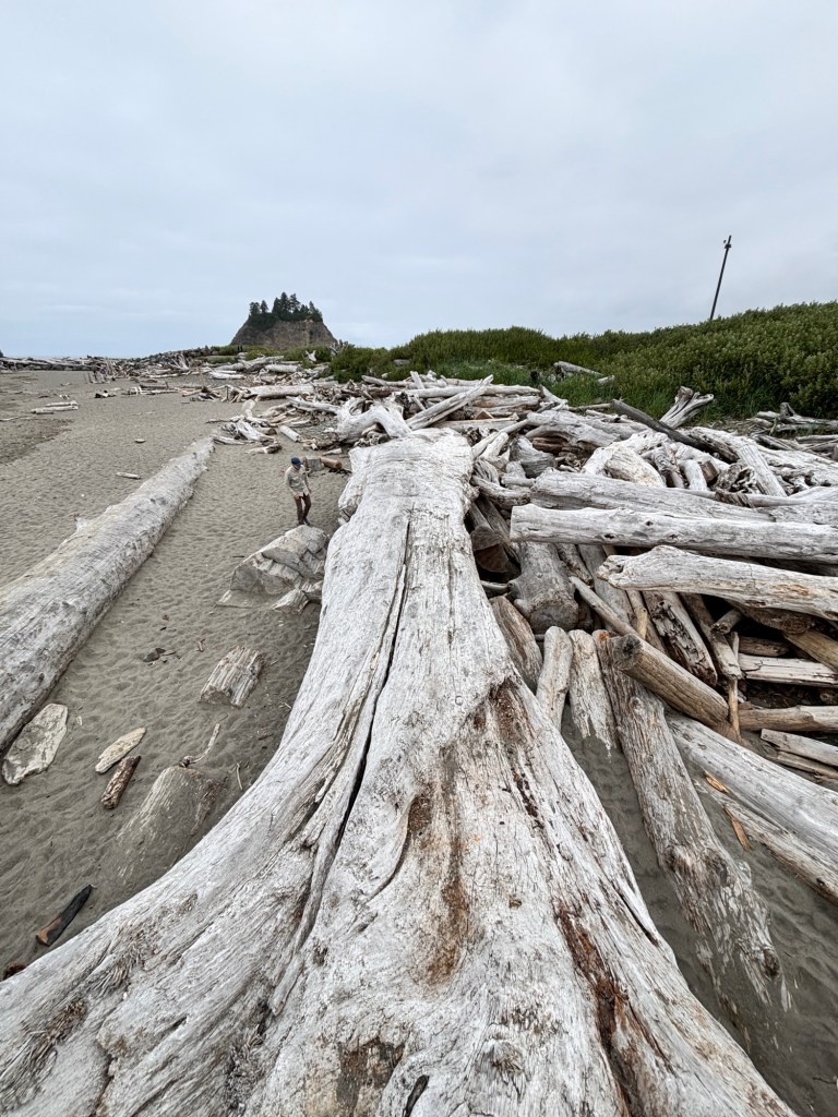 Our second beach day we headed to Rialto Beach, farther north. We started at the Ranger Station and walked the Slough Trail through the forest. It wasn’t too exciting, expect for spotting some moving brush as something large ambled through the forest. We never saw the creature, but something was there! Elk perhaps?