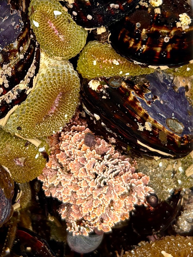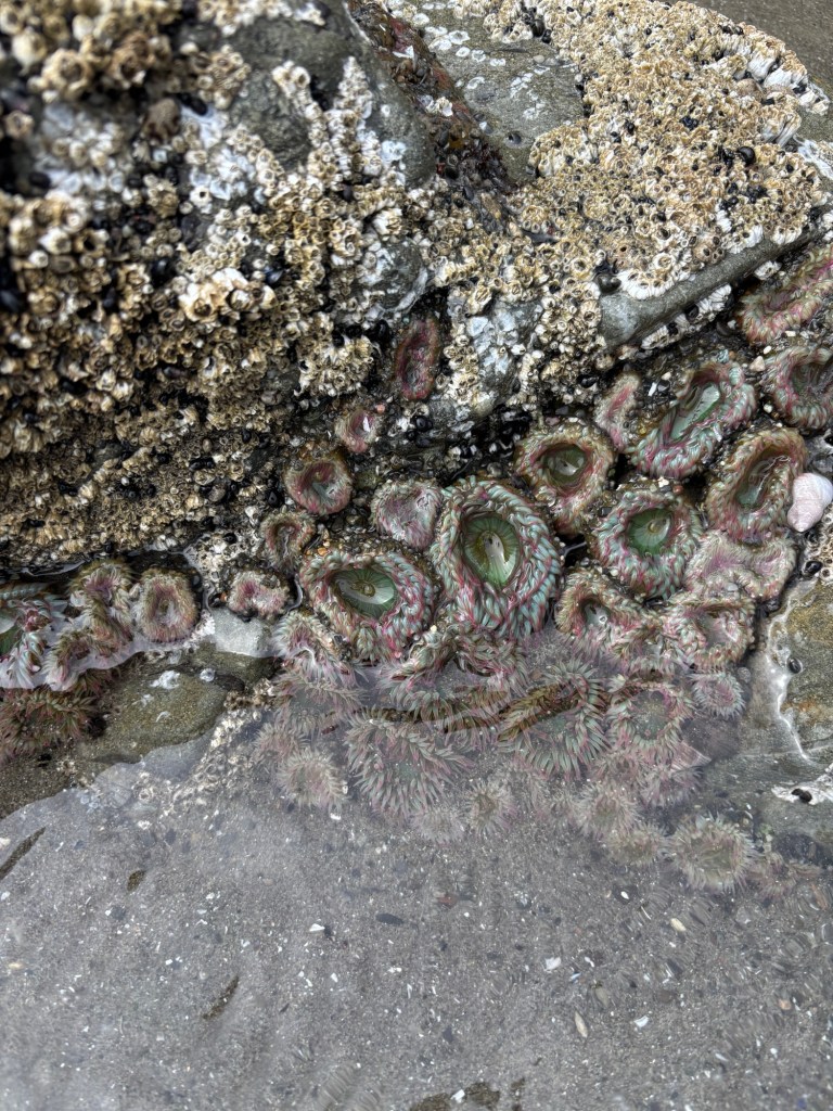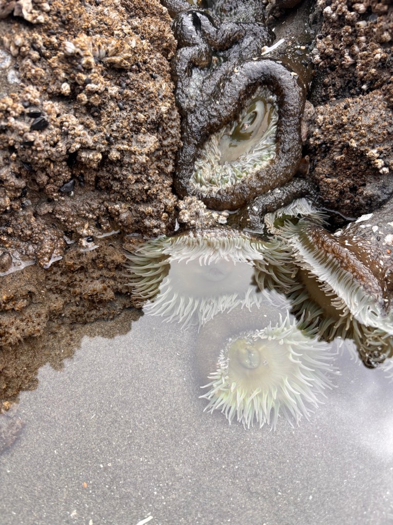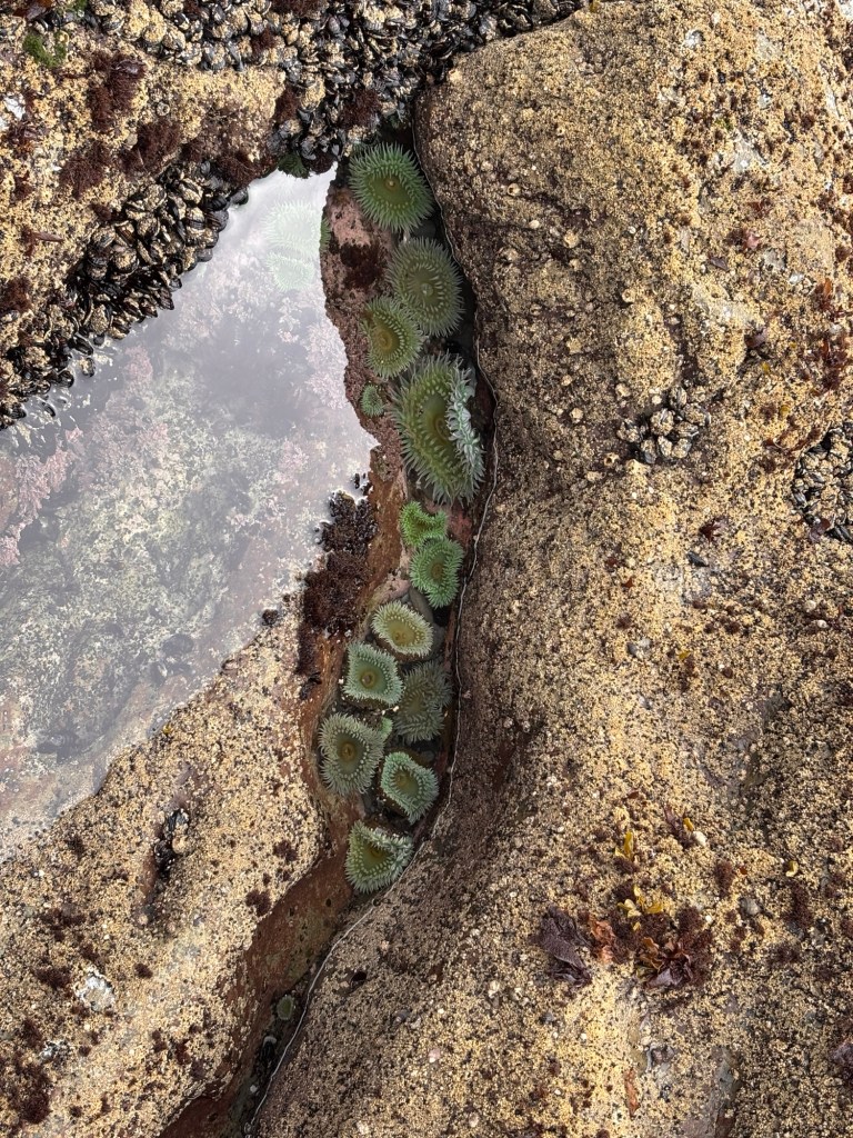 Searching in the tide pools was probably my favorite. I found maroon and orange starfish, mint green sea anemones aplenty, multitudes of barnacles and muscles. The life abounding in these little pools was bountiful. We wading in the wading and hopped around the rocks. Definitely an inner child healing kind of a day.