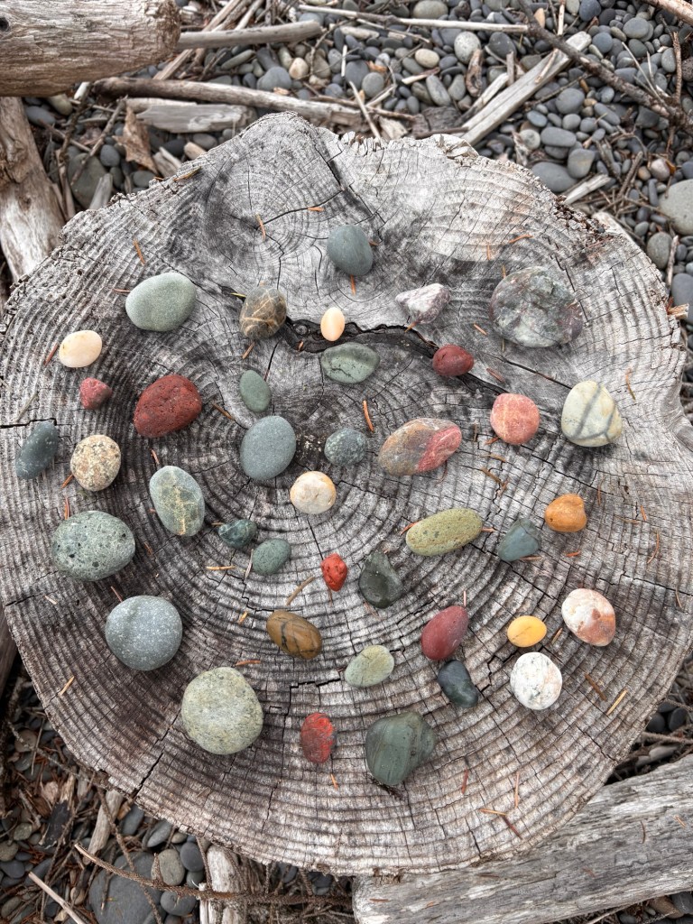 When it was time to go, we grabbed our packs filled with lunch and layers, and started a slow walk towards Hole-in-the-Wall. Part of the reason it was a slow walk is because there were so many rocks to admire! A rainbow of green, purple, red. I hardly made it a few steps before spotting another treasure. I had a heavy bag before we had even gone a mile. Totally worth it. We stopped midway for lunch, protected in a grove of driftwood. I took time to sort my rock stash, leaving behind some for the next collector to enjoy.