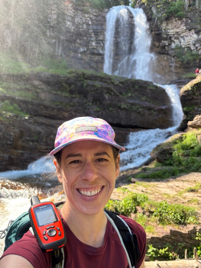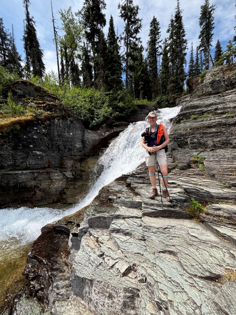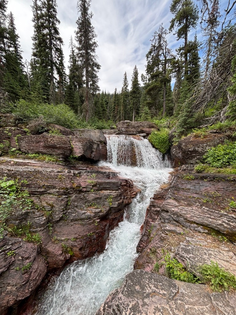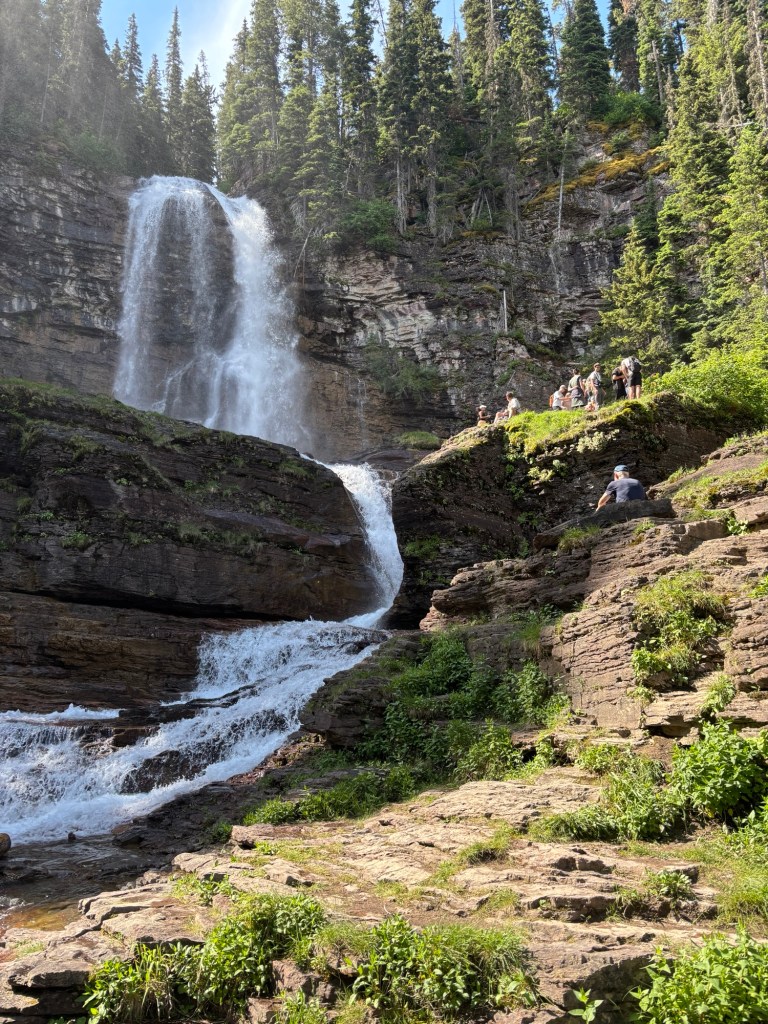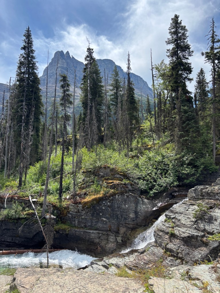 Our final destination on the hike was Virginia Falls and it did not disappoint. A tall tower of water plummeted over a cliff edge and misted us with a welcome cool bath. The roar was immense and rhythmic. While I enjoyed being right there at the falls, being down below on a rock in the middle of the river, sitting and looking up at the cascade was even better. I had the spot all to myself for a while and it was just lovely.