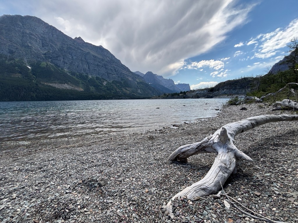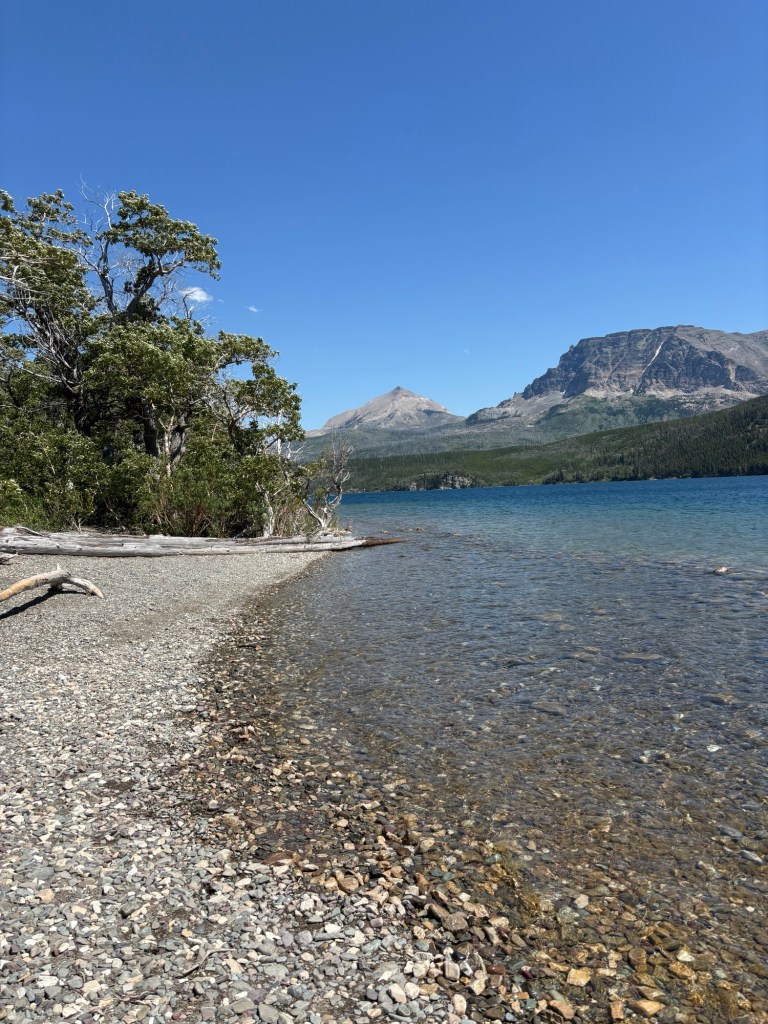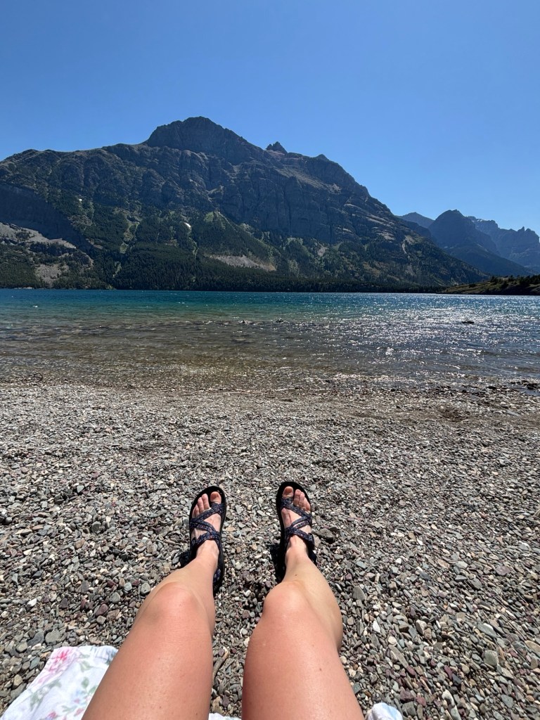 Hearts full and heads happy, we continued out. I walked the extra mile back to get the van, narrowly made it out of my parking spot, and drove back to pick up my parents at the trailhead. After dropping them off at their bikes, I opted for a quiet afternoon alone and found a secluded spot on St. Mary’s Lake to relax. A little sun bathing, a very quick and chilly dips in the water, and some rock hunting was a perfect end to the day.